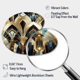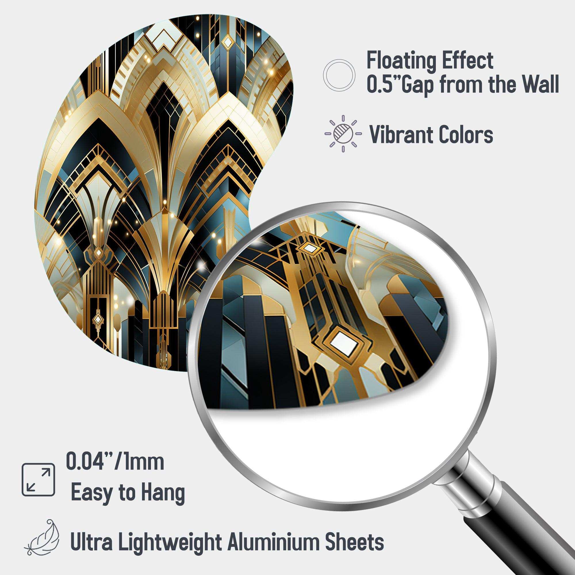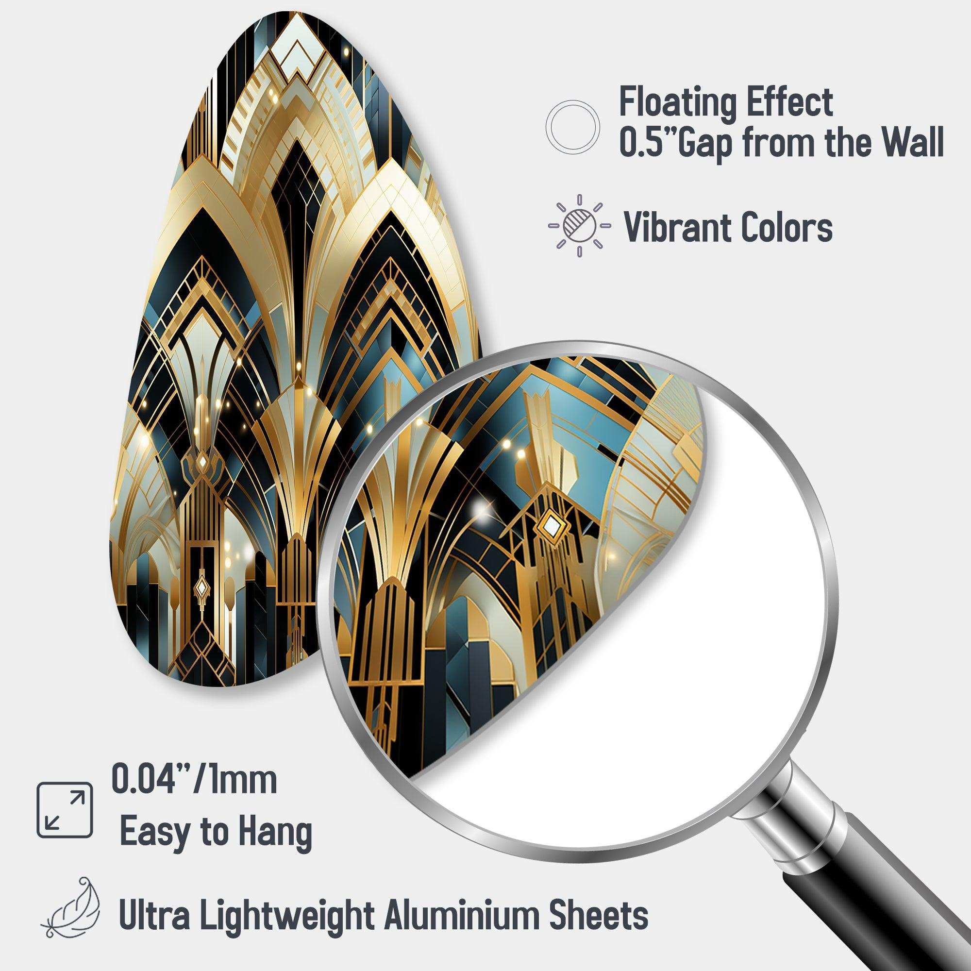 1970S Blue And Gold Damask Art Deco - Asymmetric Metal Wall Art