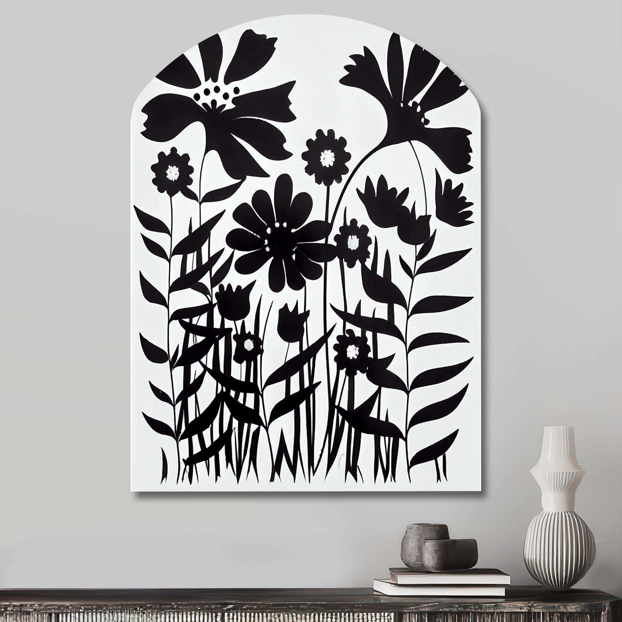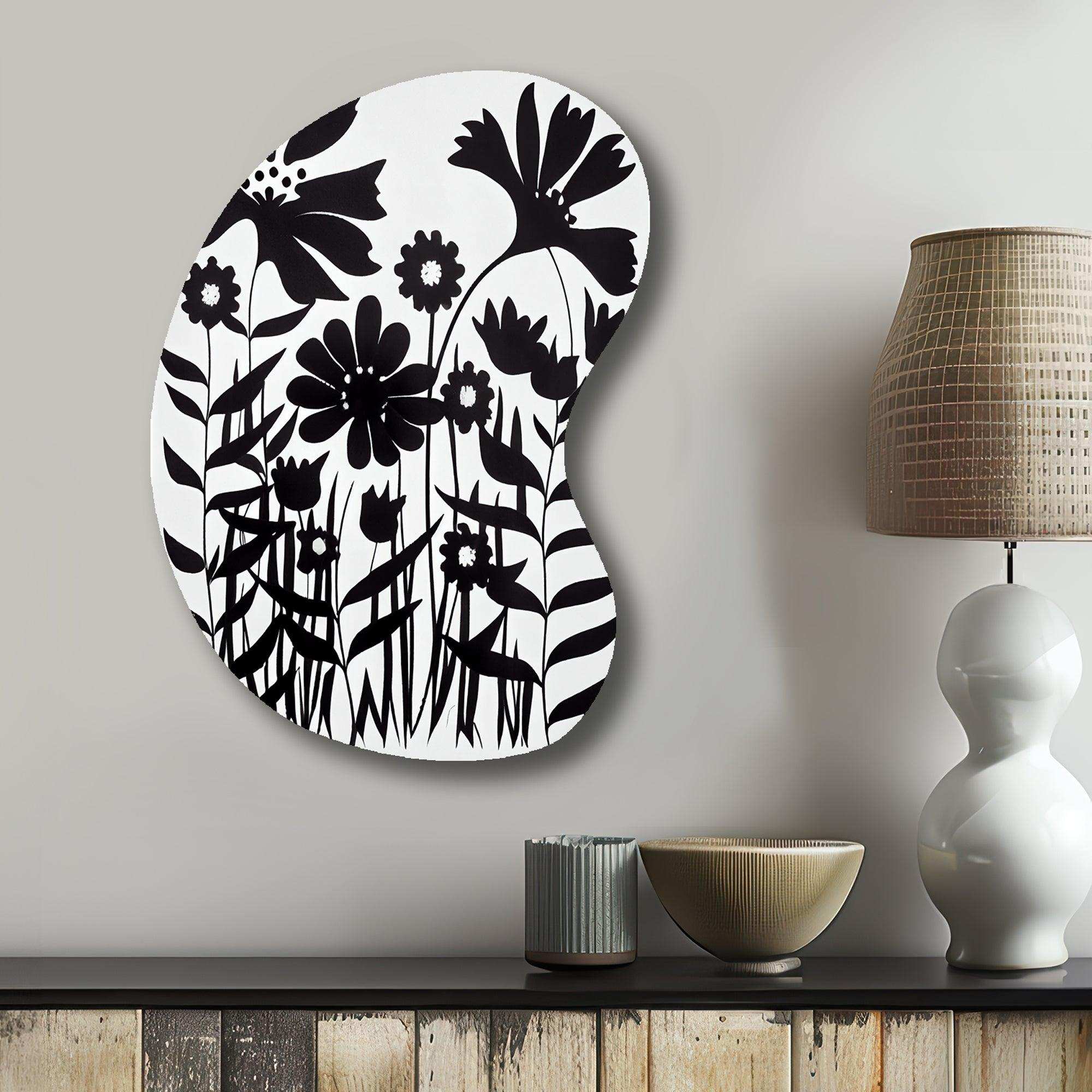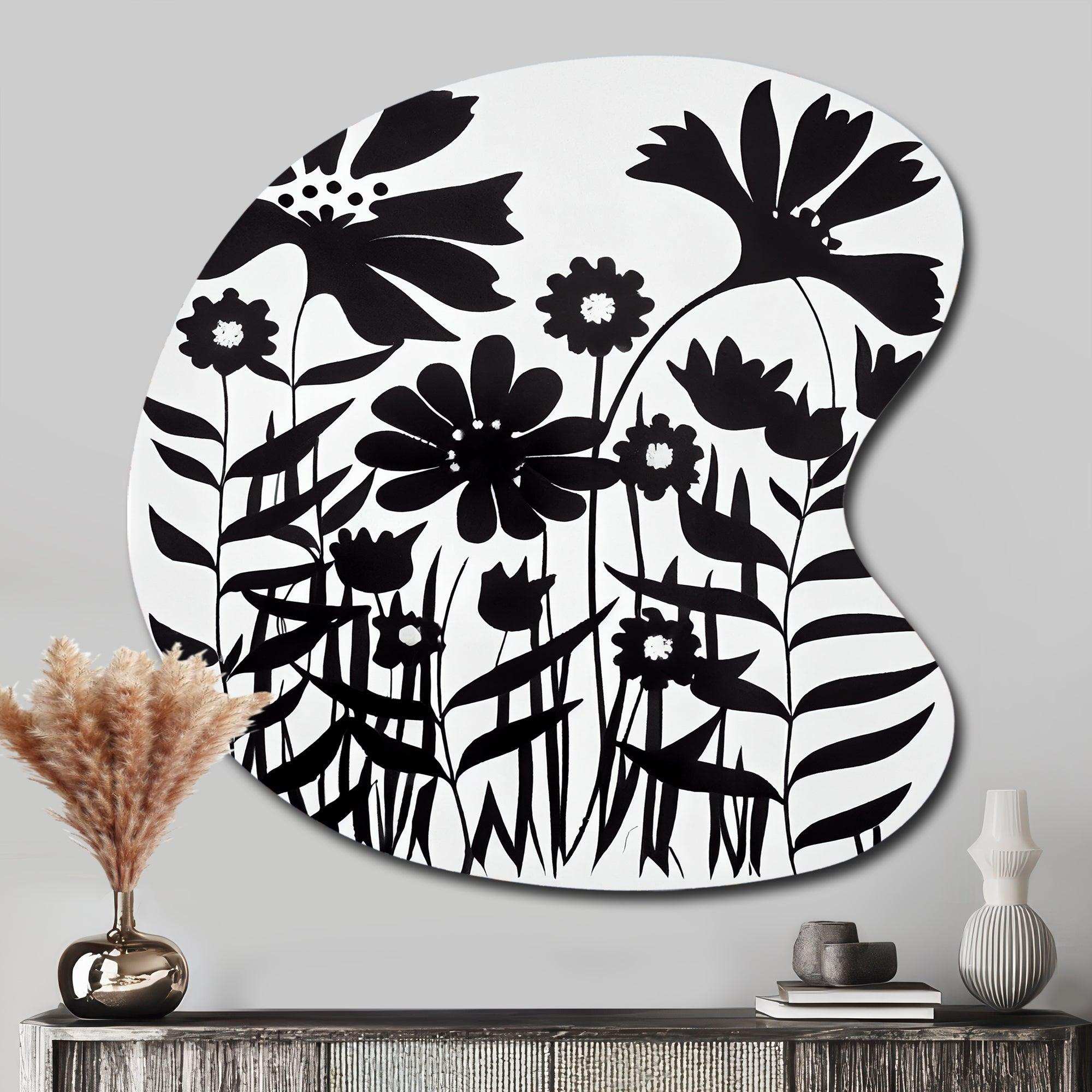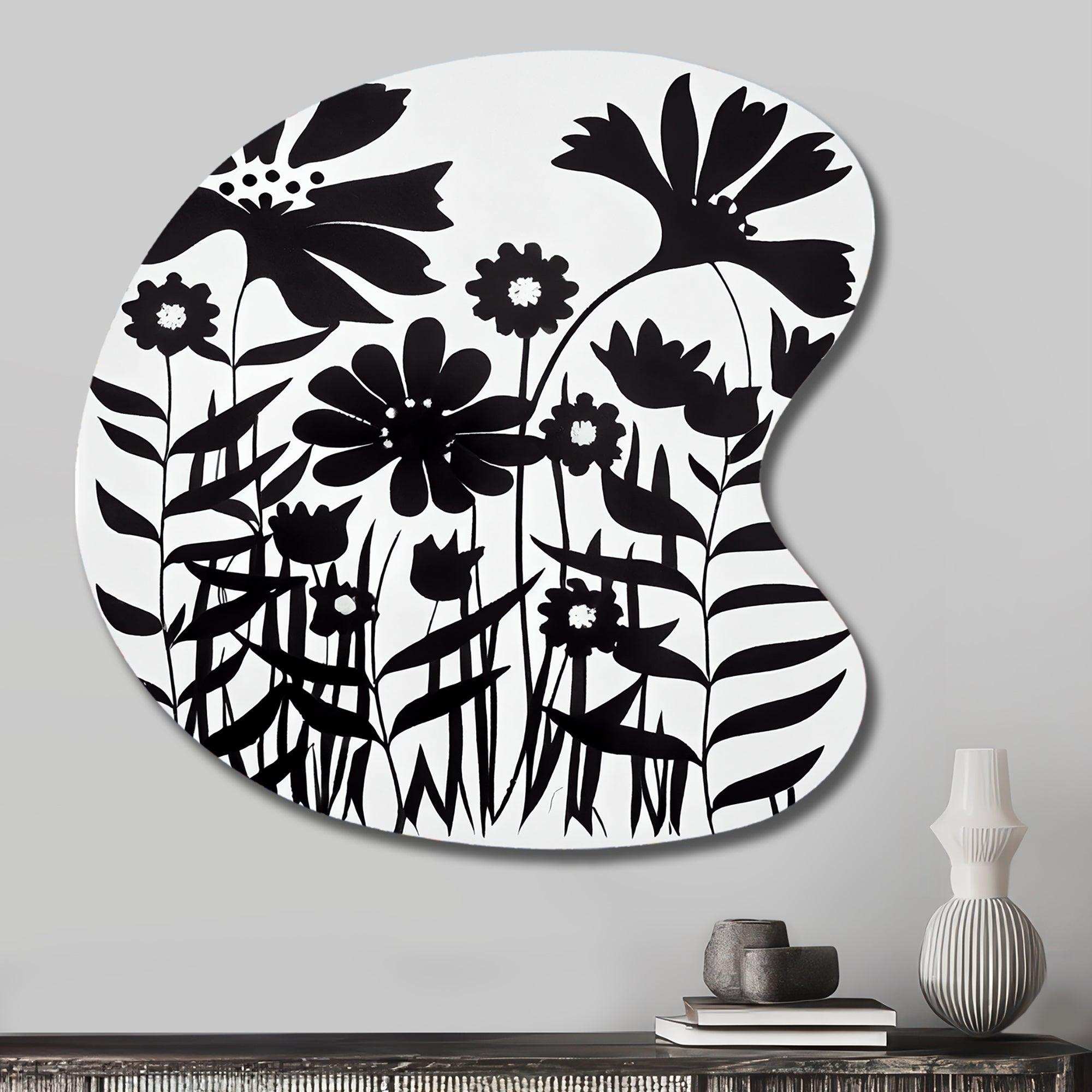 Black And White Graphic Flowers V - Asymmetric Metal Wall Art