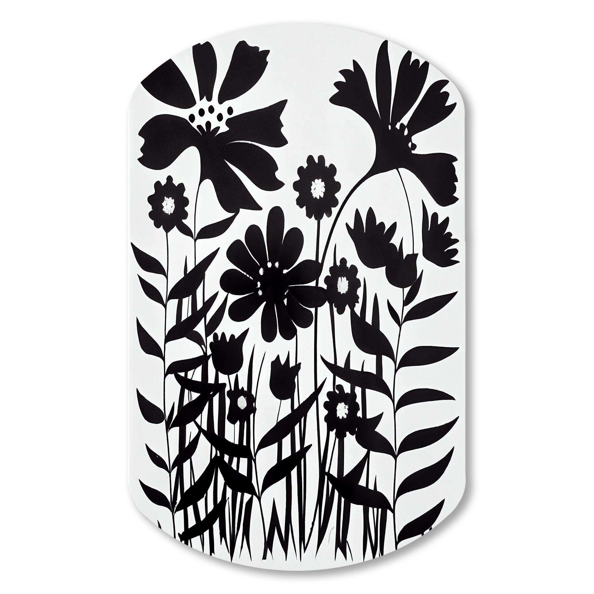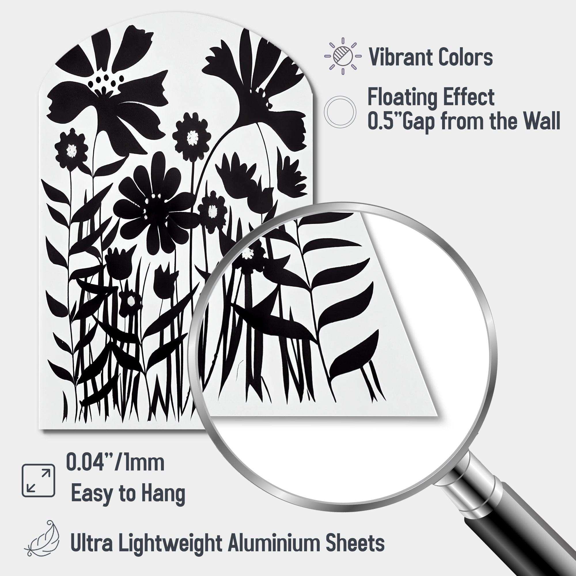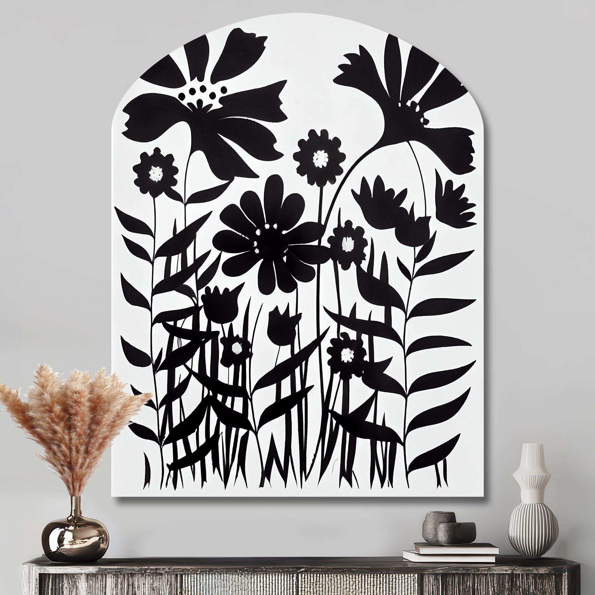 Black And White Graphic Flowers V - Asymmetric Metal Wall Art