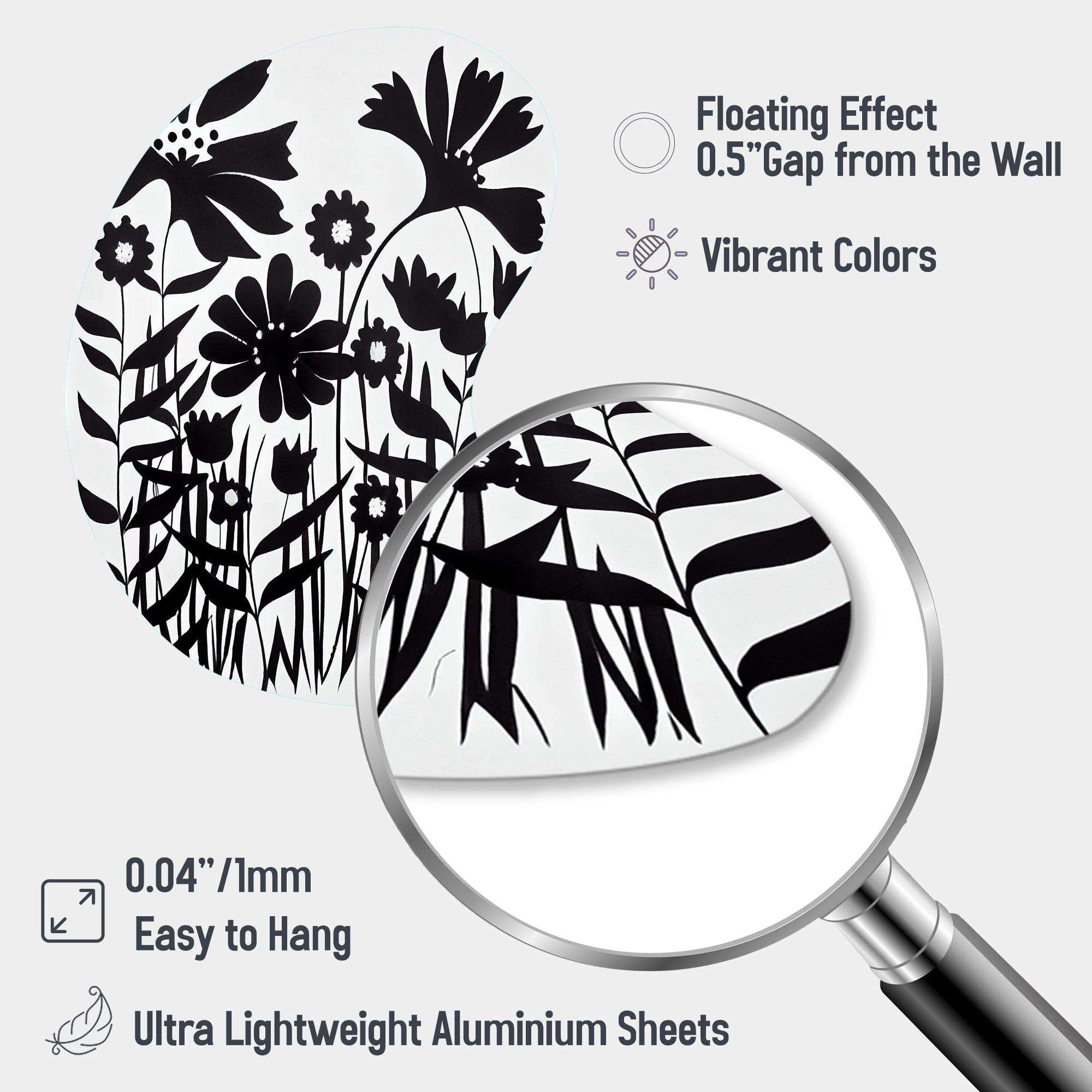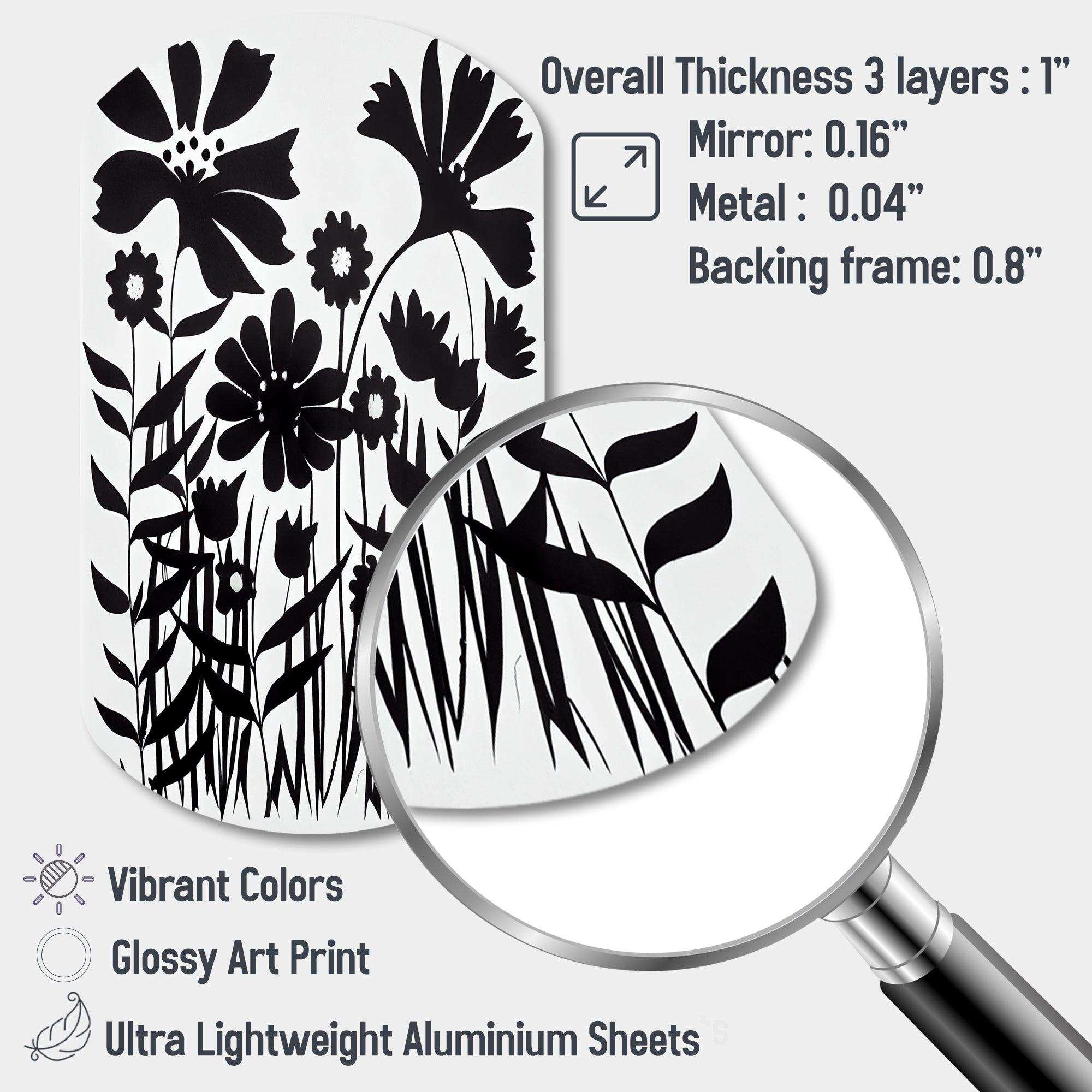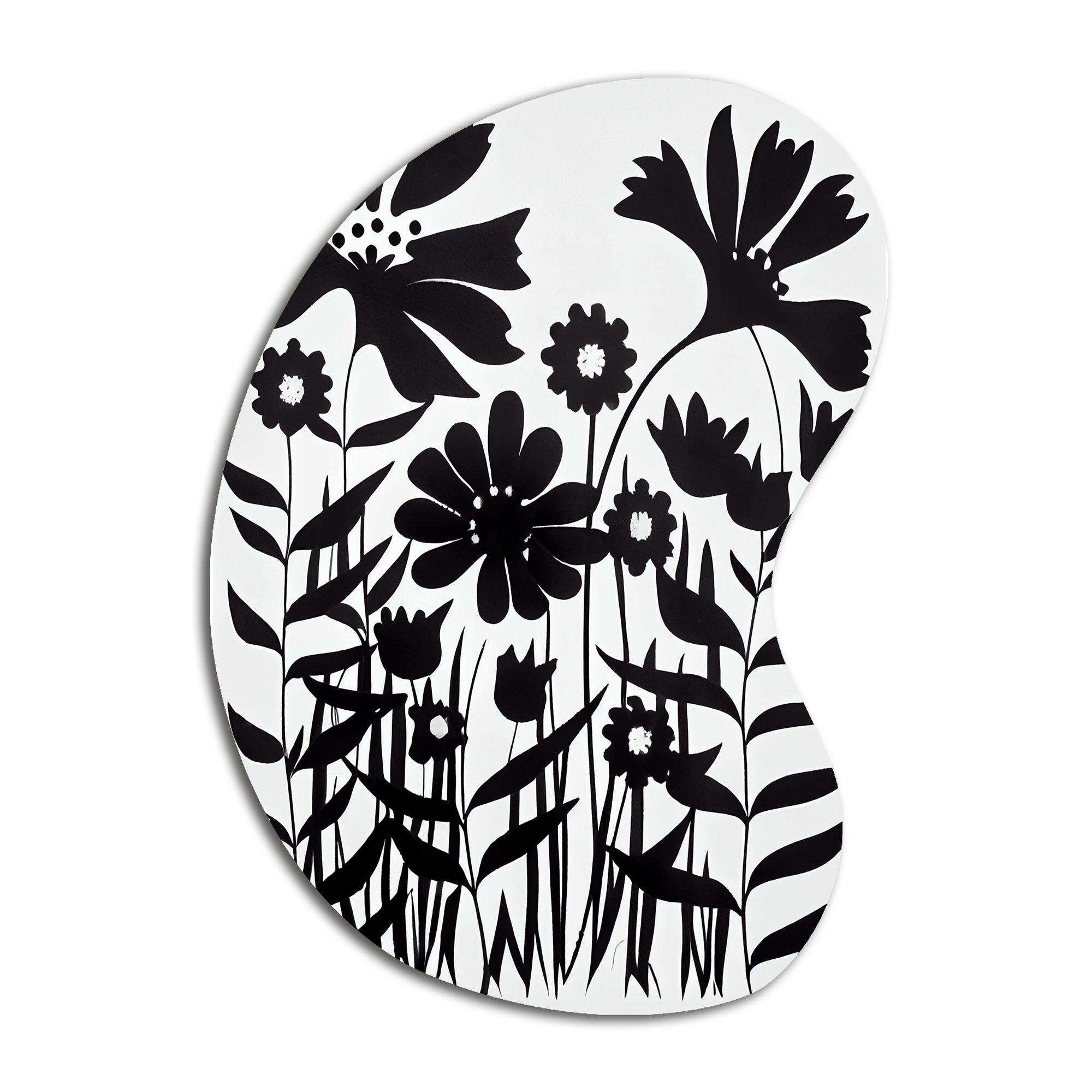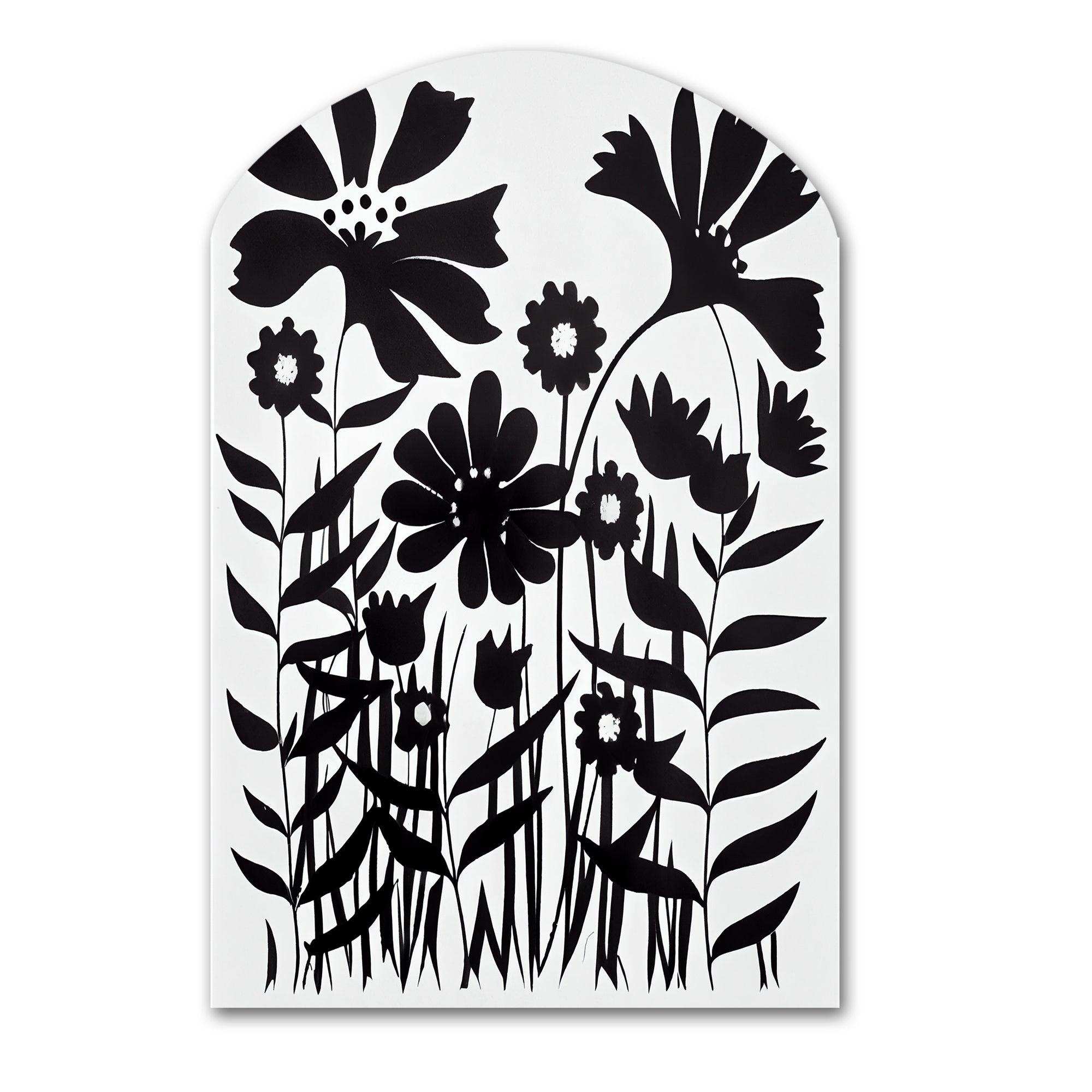 Black And White Graphic Flowers V - Asymmetric Metal Wall Art