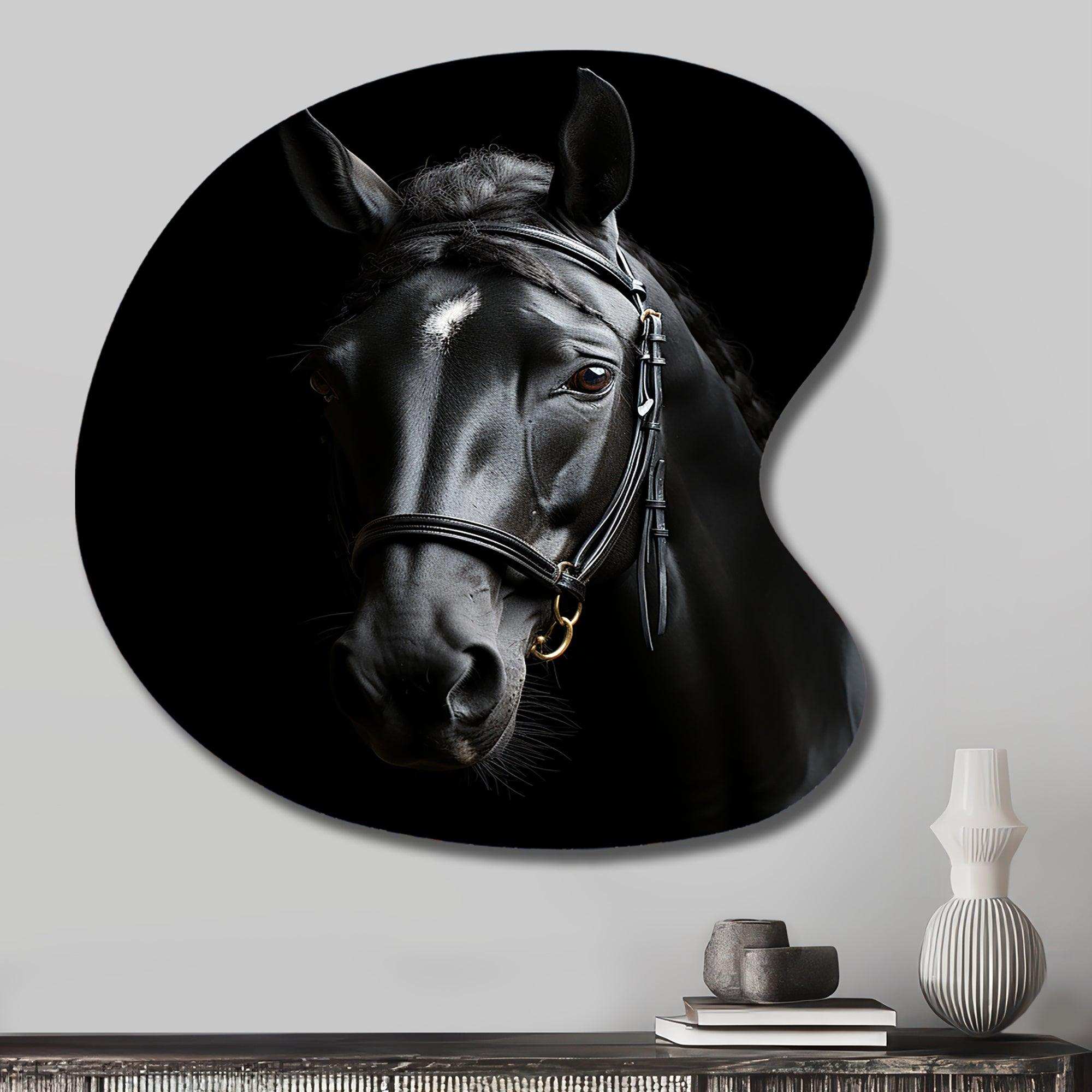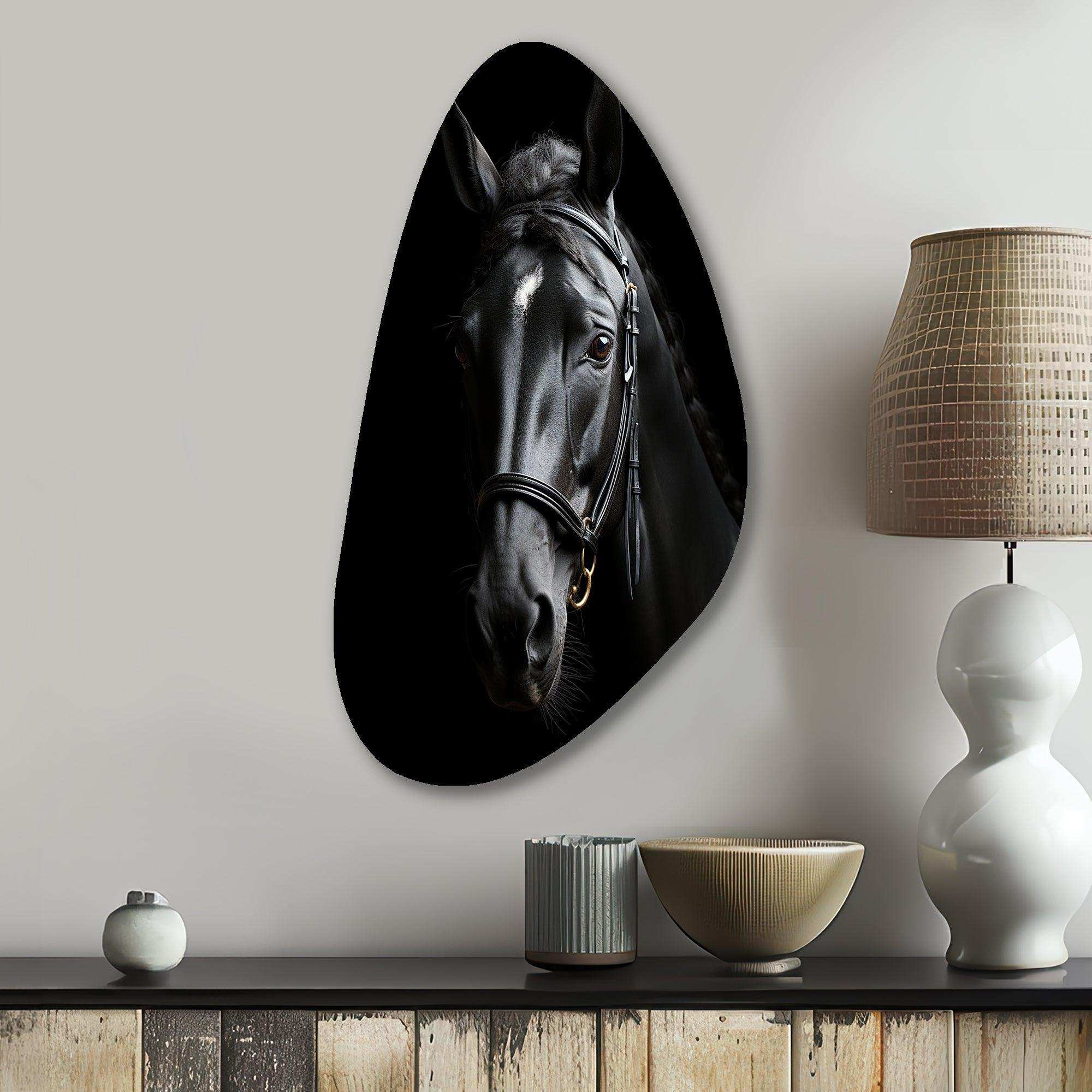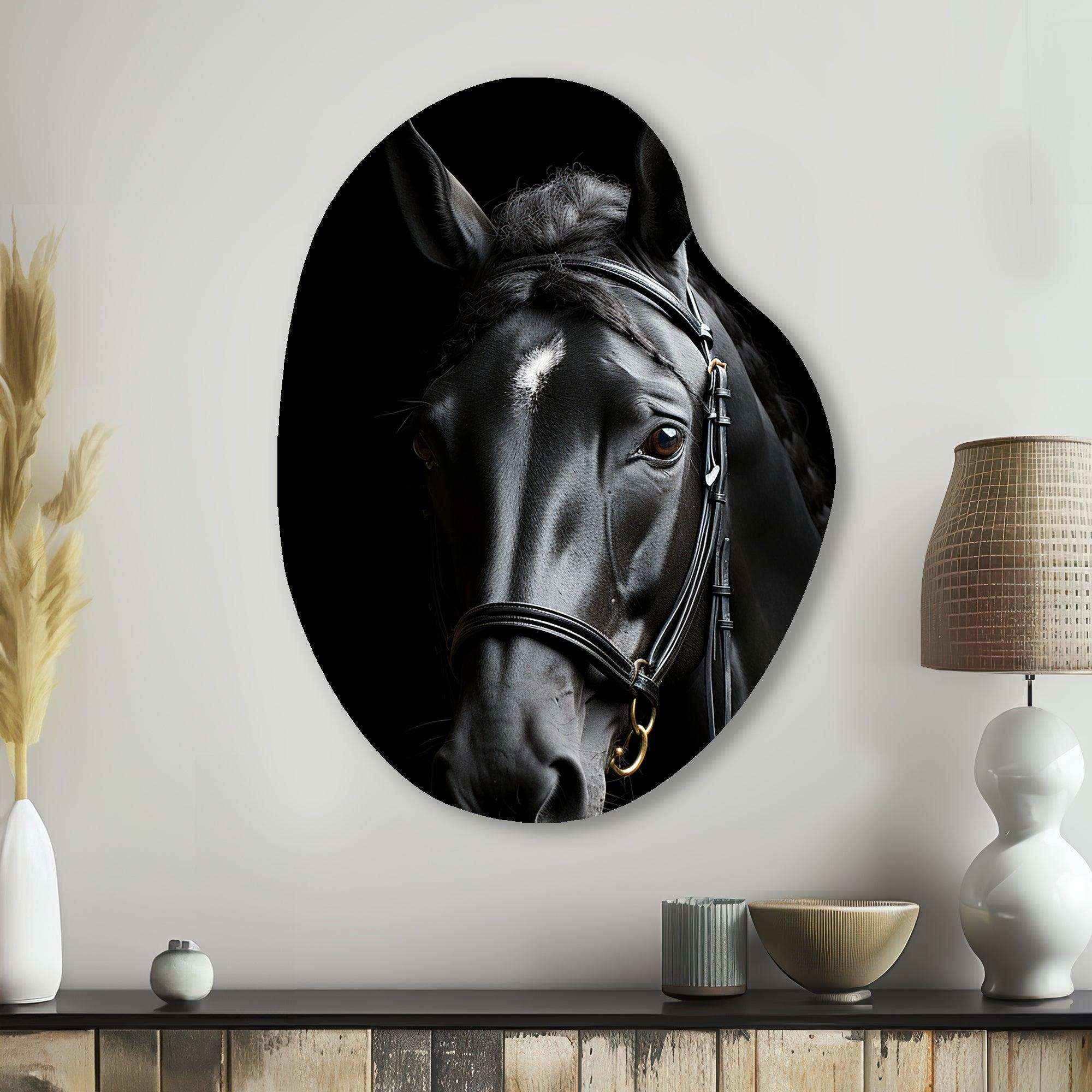Black And White Horse Elegance - Asymmetric Metal Wall Art