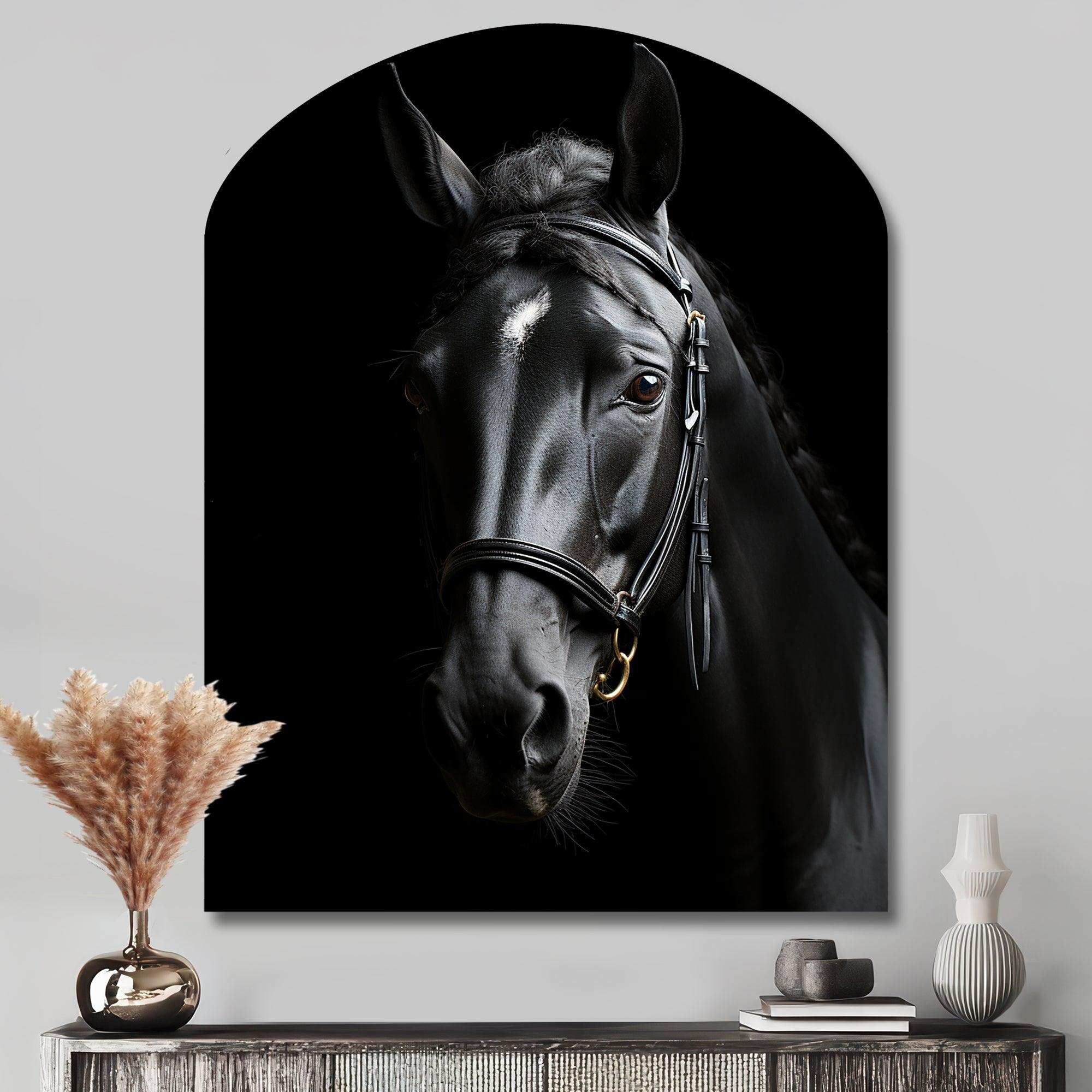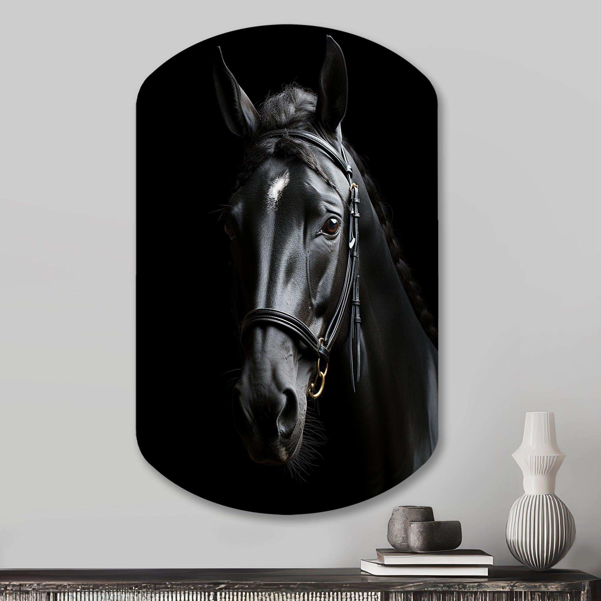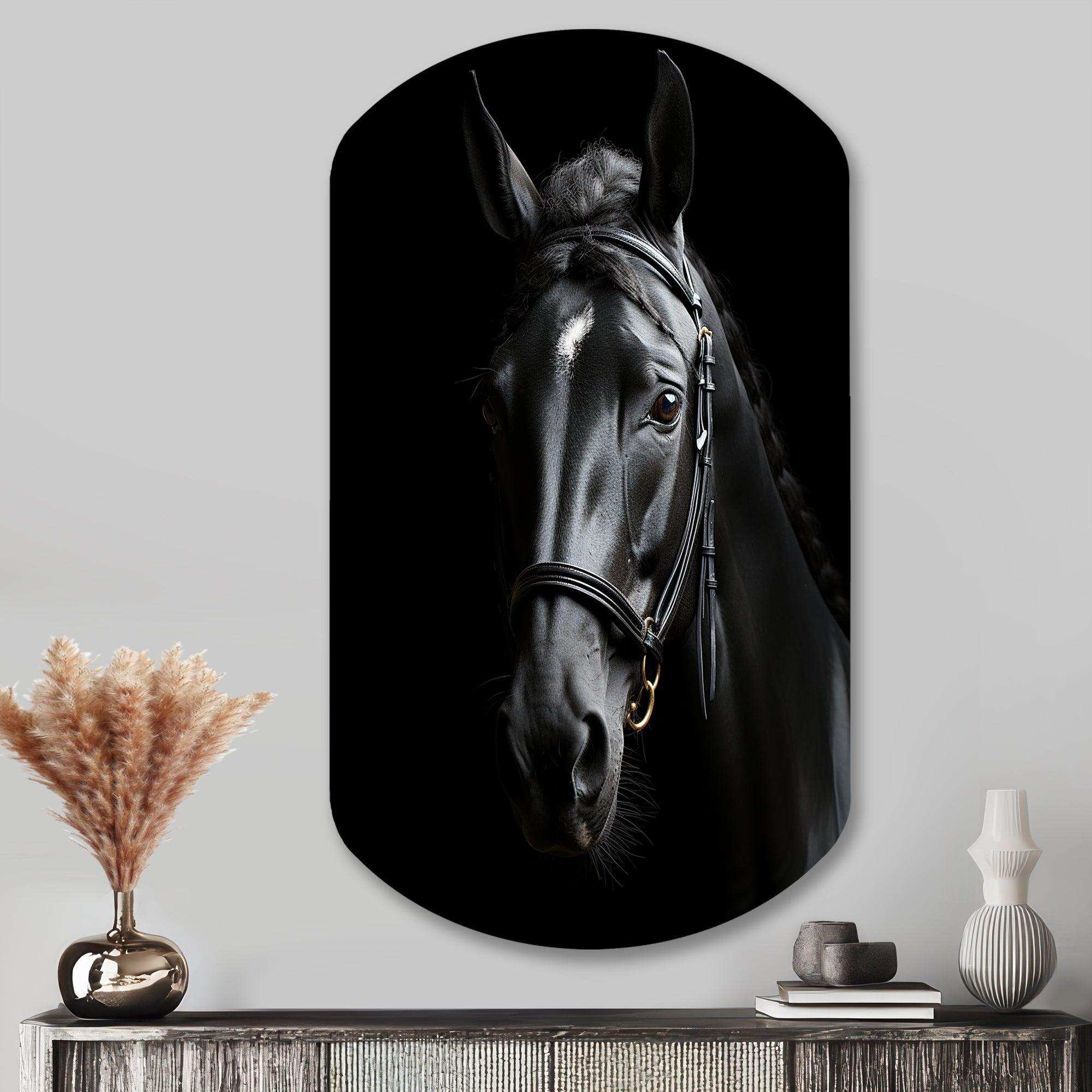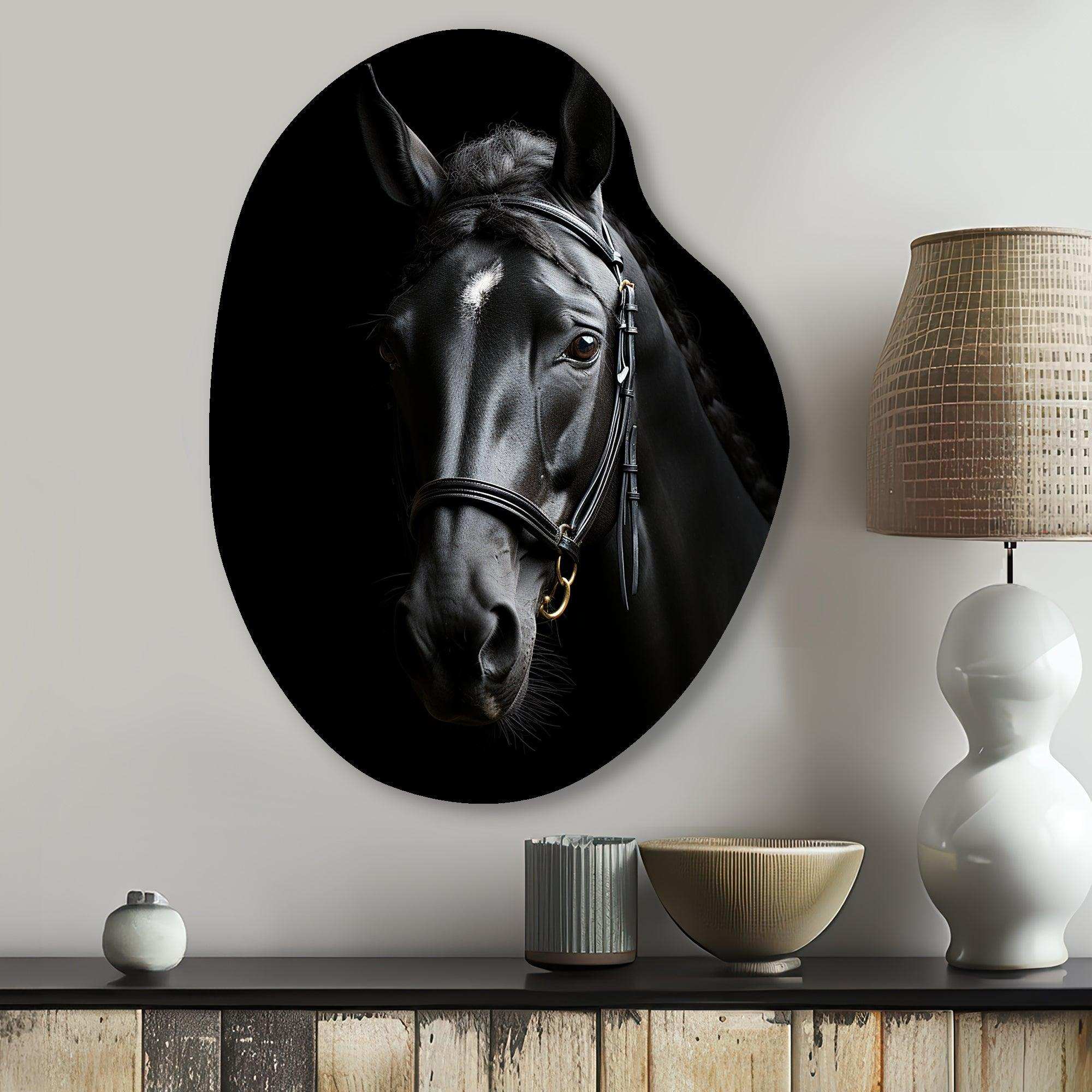 Black And White Horse Elegance - Asymmetric Metal Wall Art