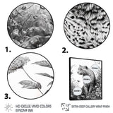 - This canvas giclee print is gallery-wrapped (the design continues on the sides) , giving it a real art gallery feel.