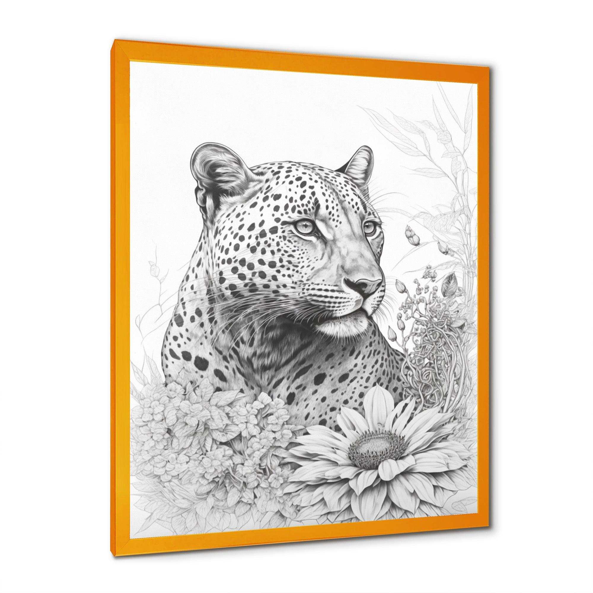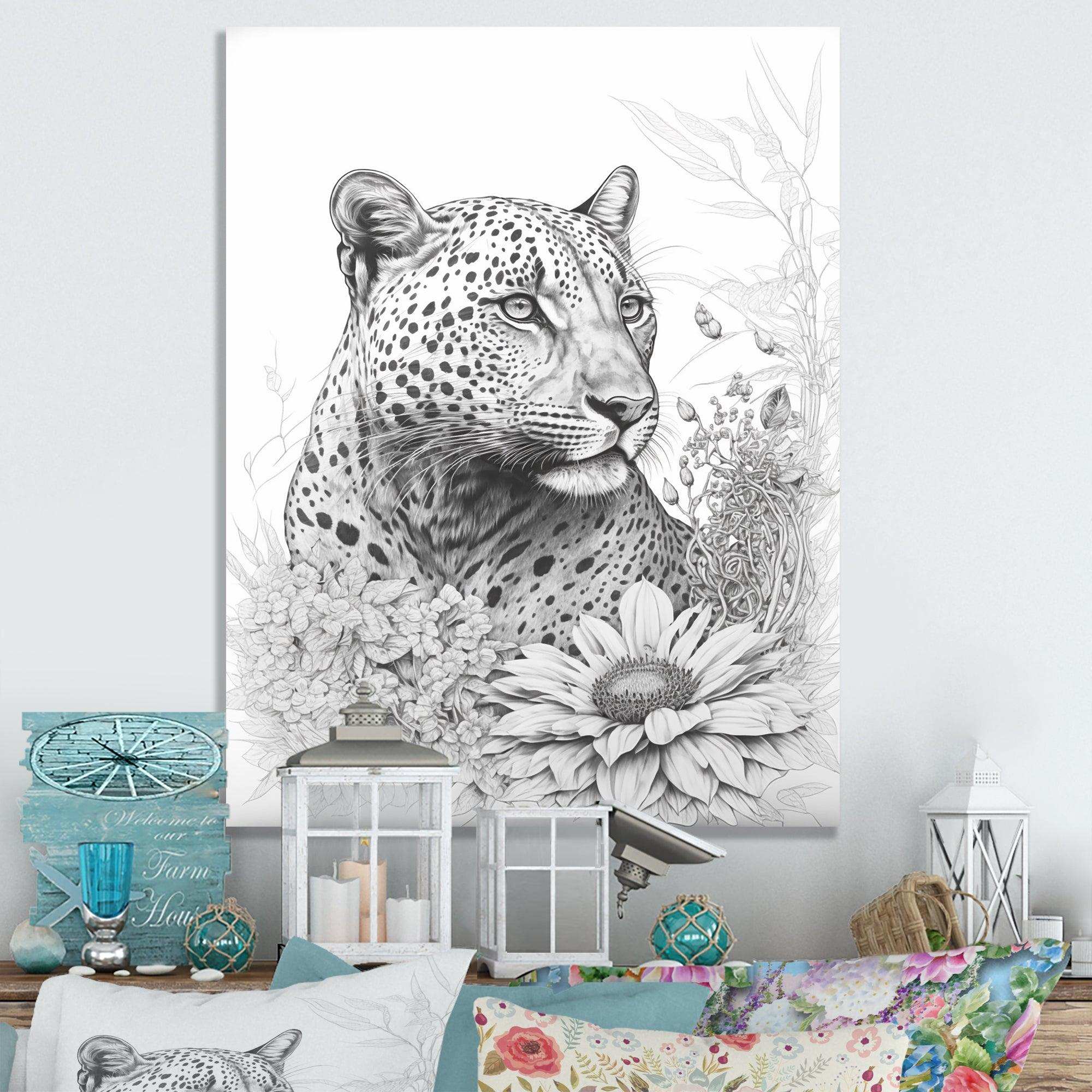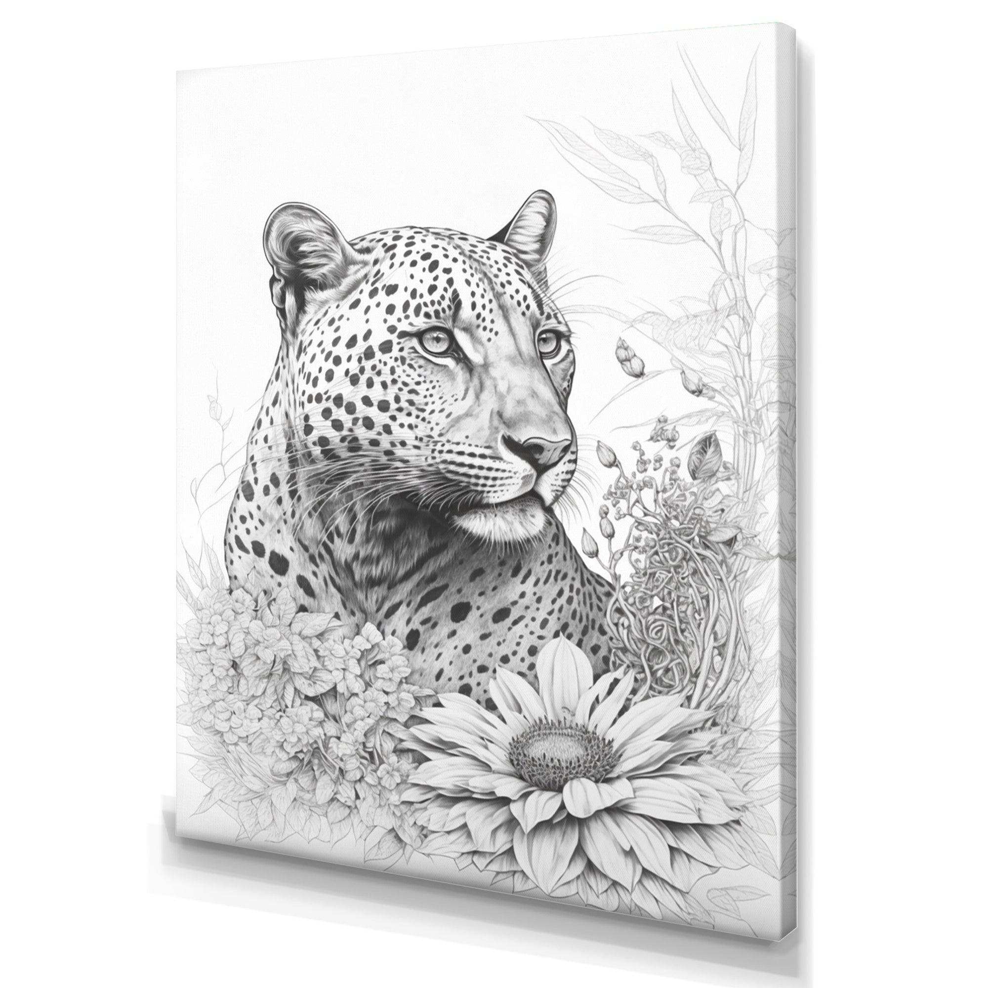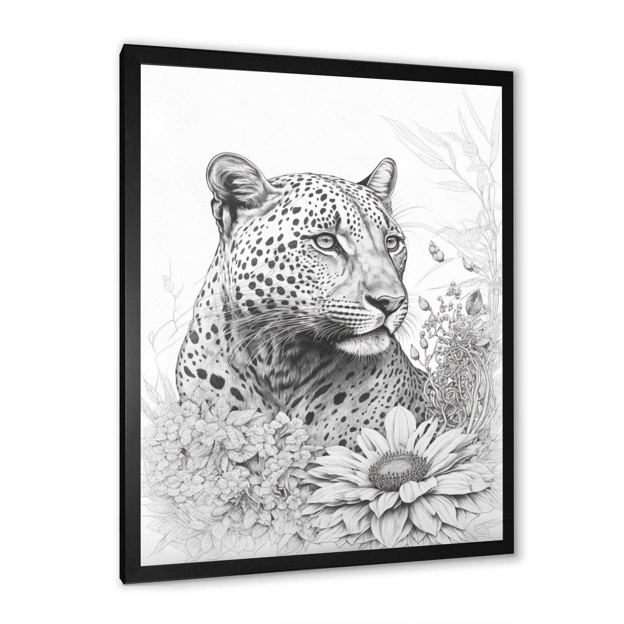 Black And White Leopard In The Jungle Flowers II