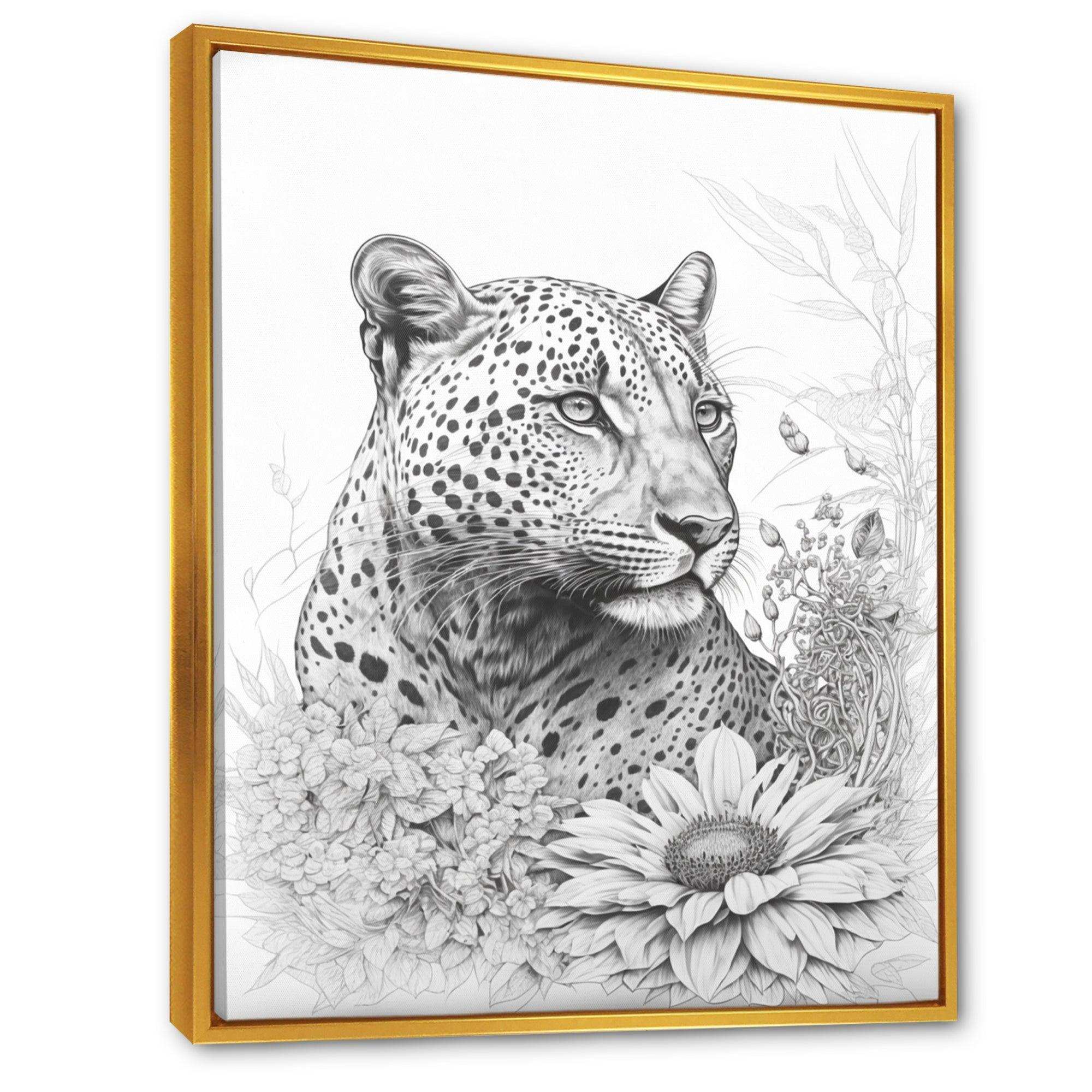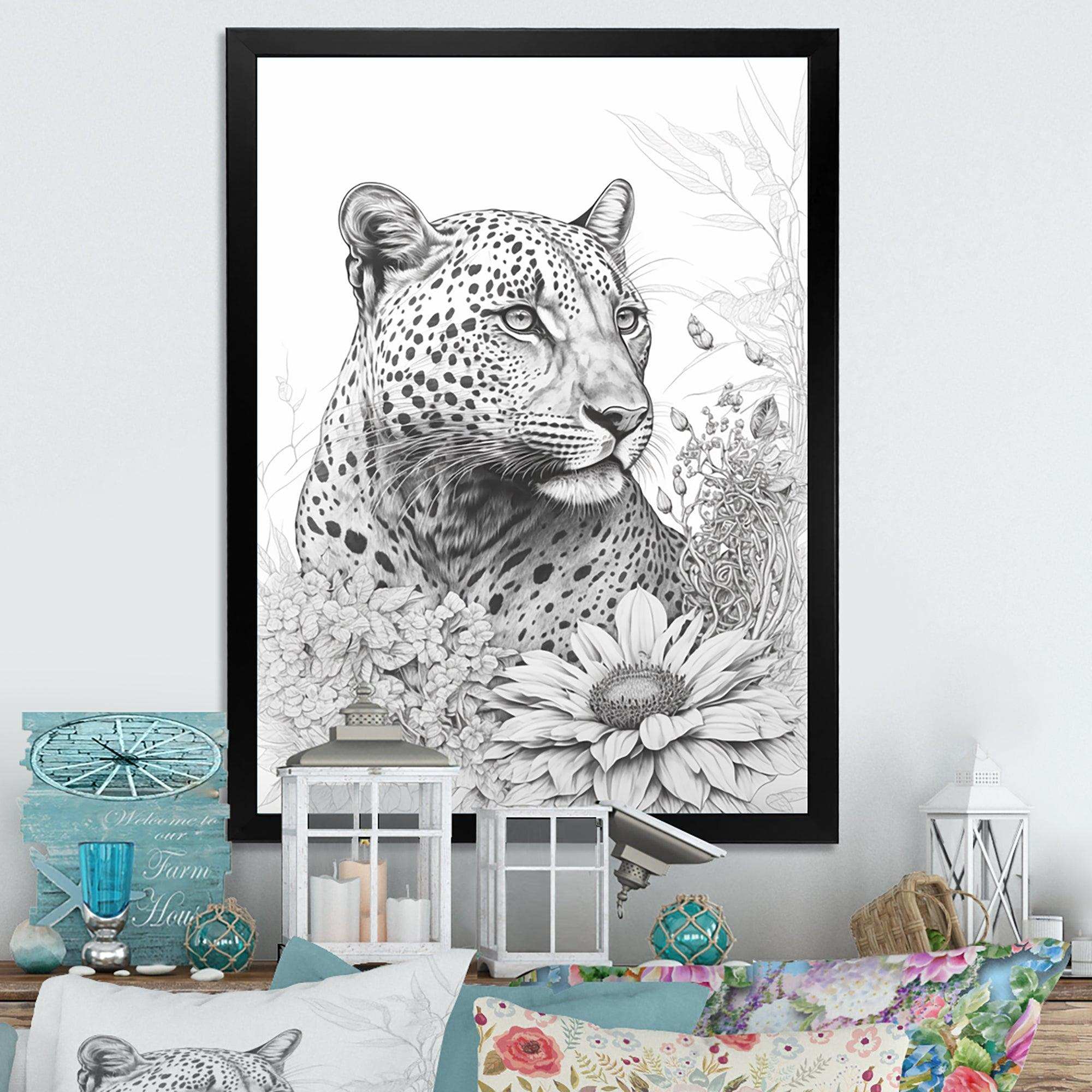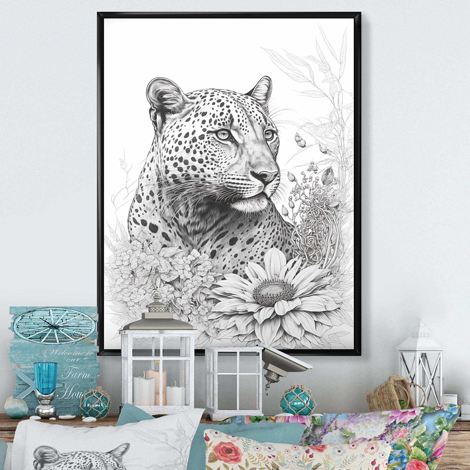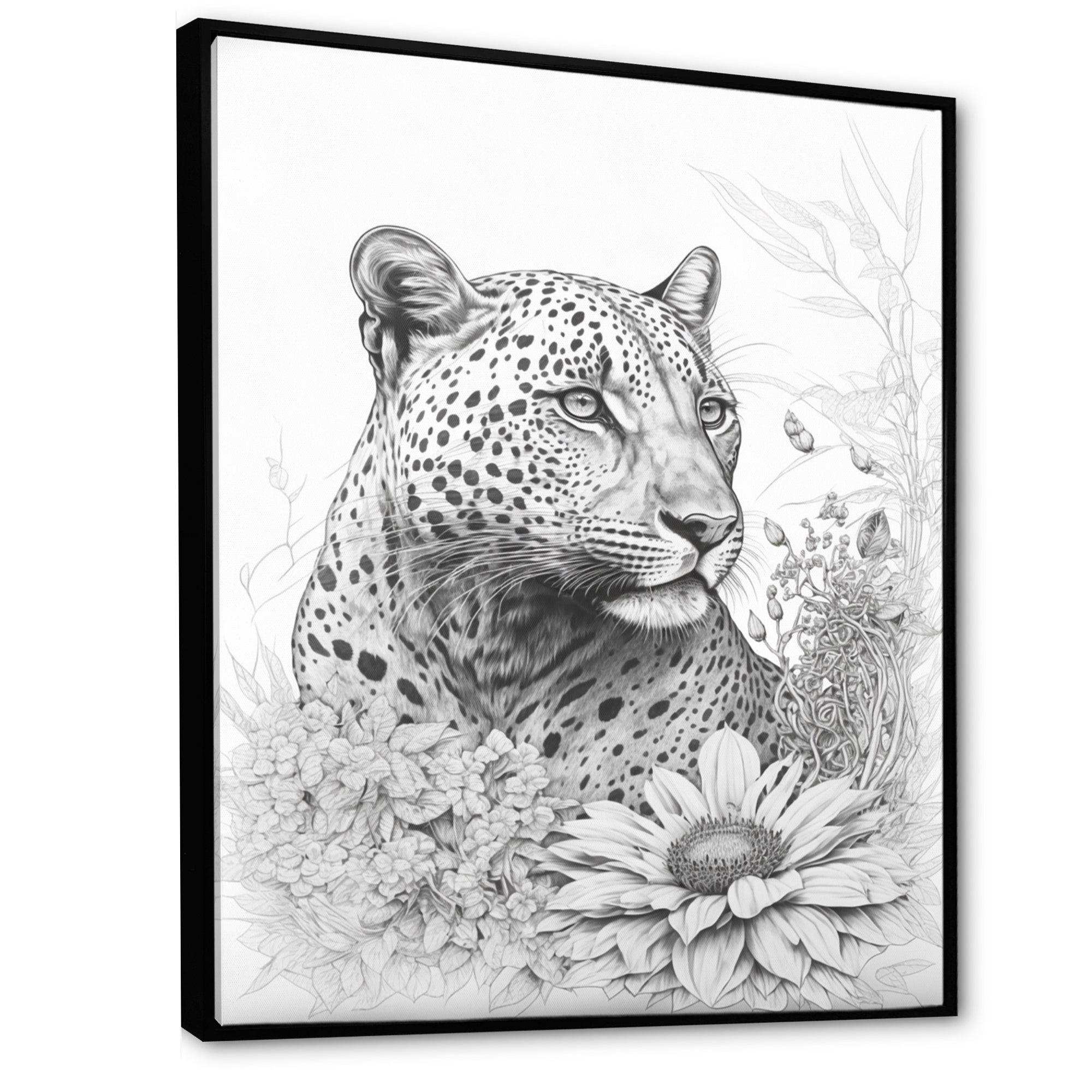 Black And White Leopard In The Jungle Flowers II