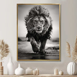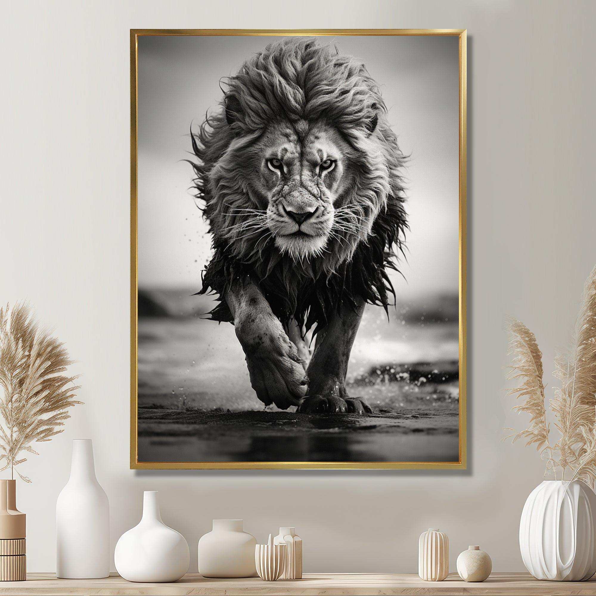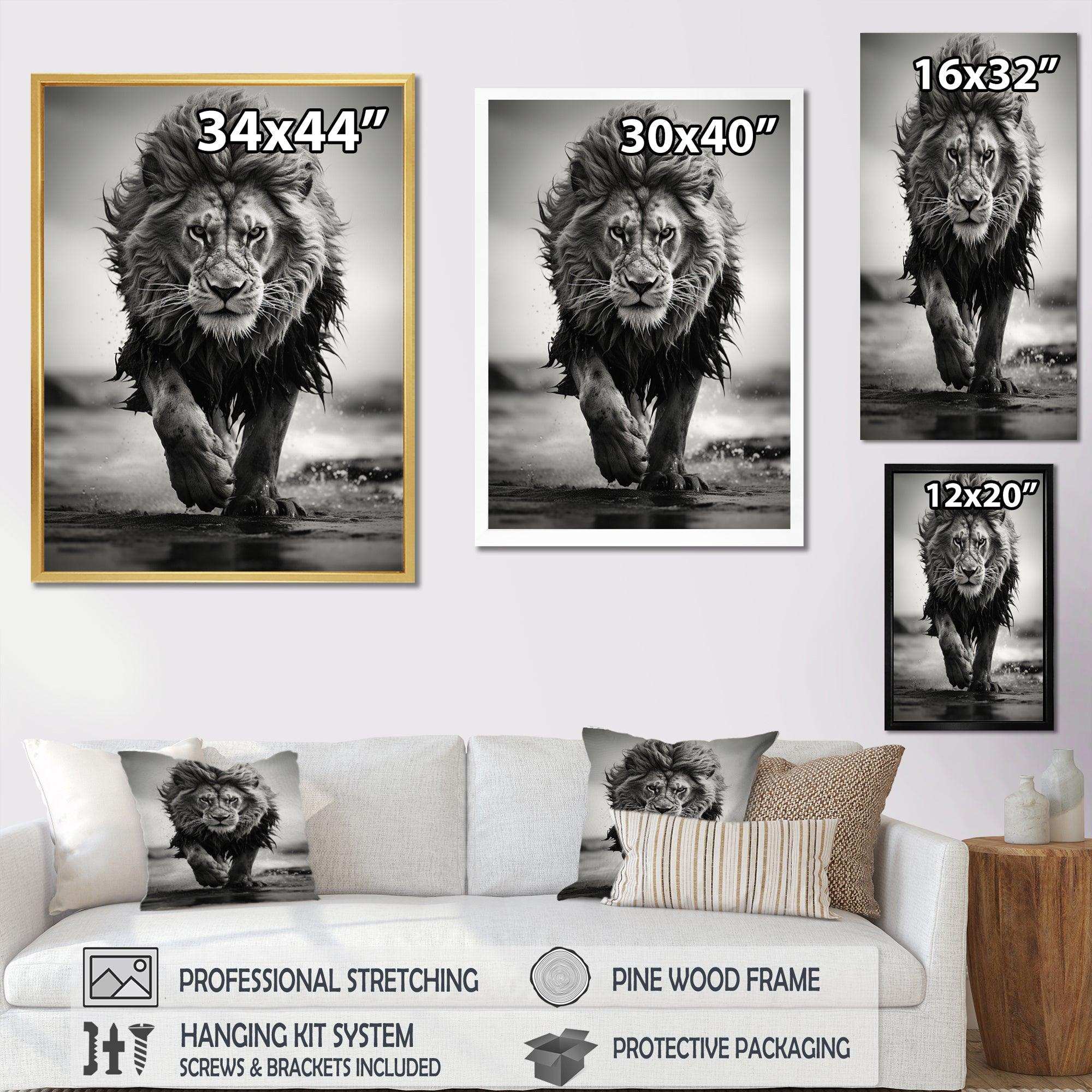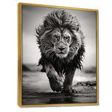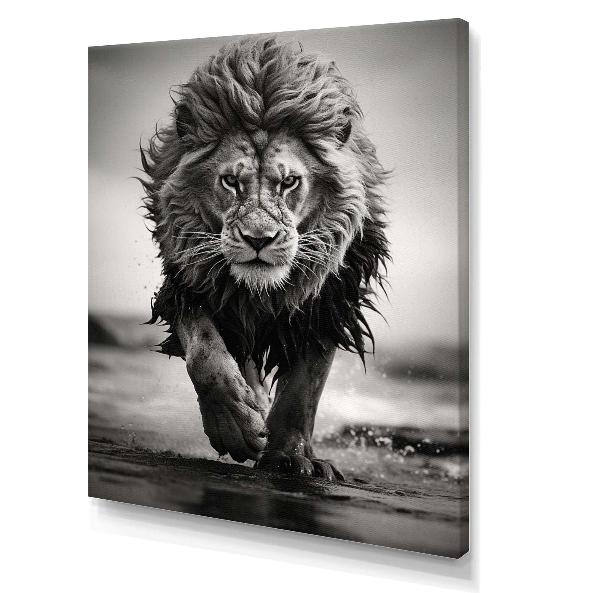 Black And White Lion Running In Africa - Animals Canvas Wall Art