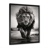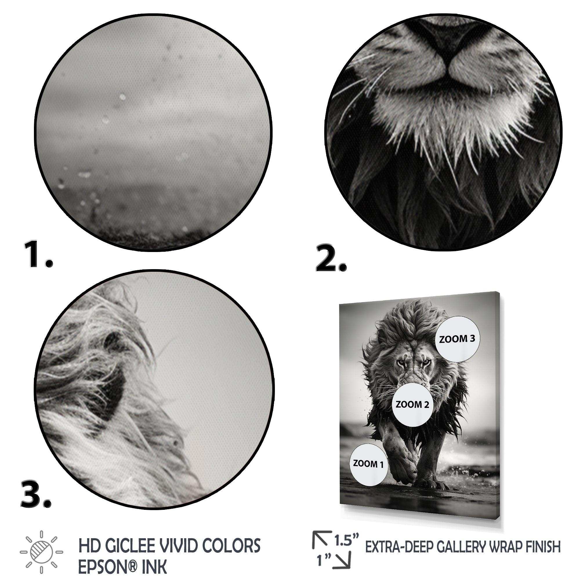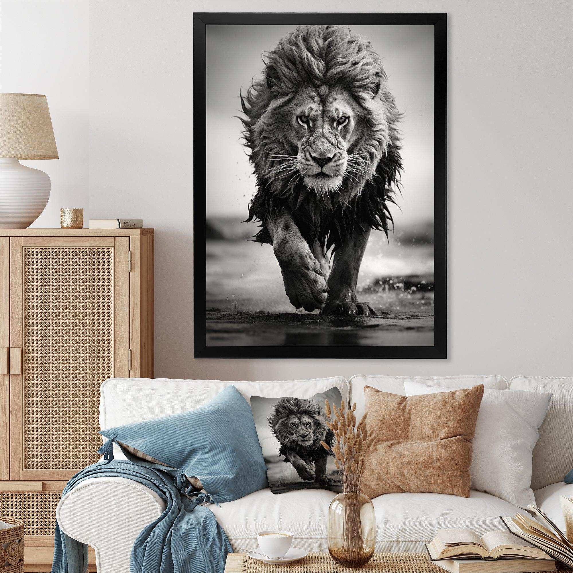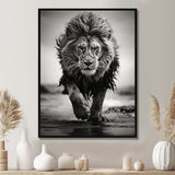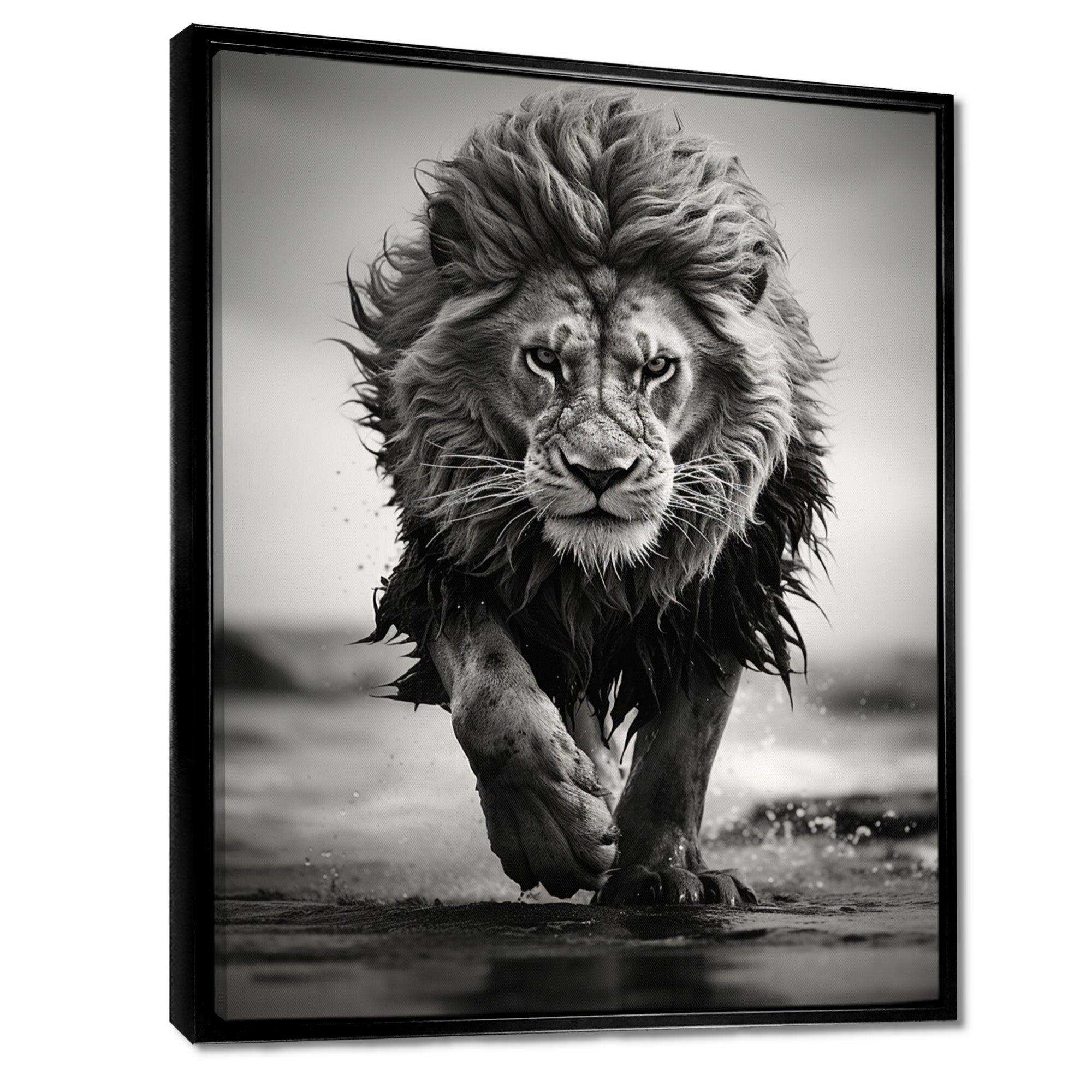 Black And White Lion Running In Africa - Animals Canvas Wall Art