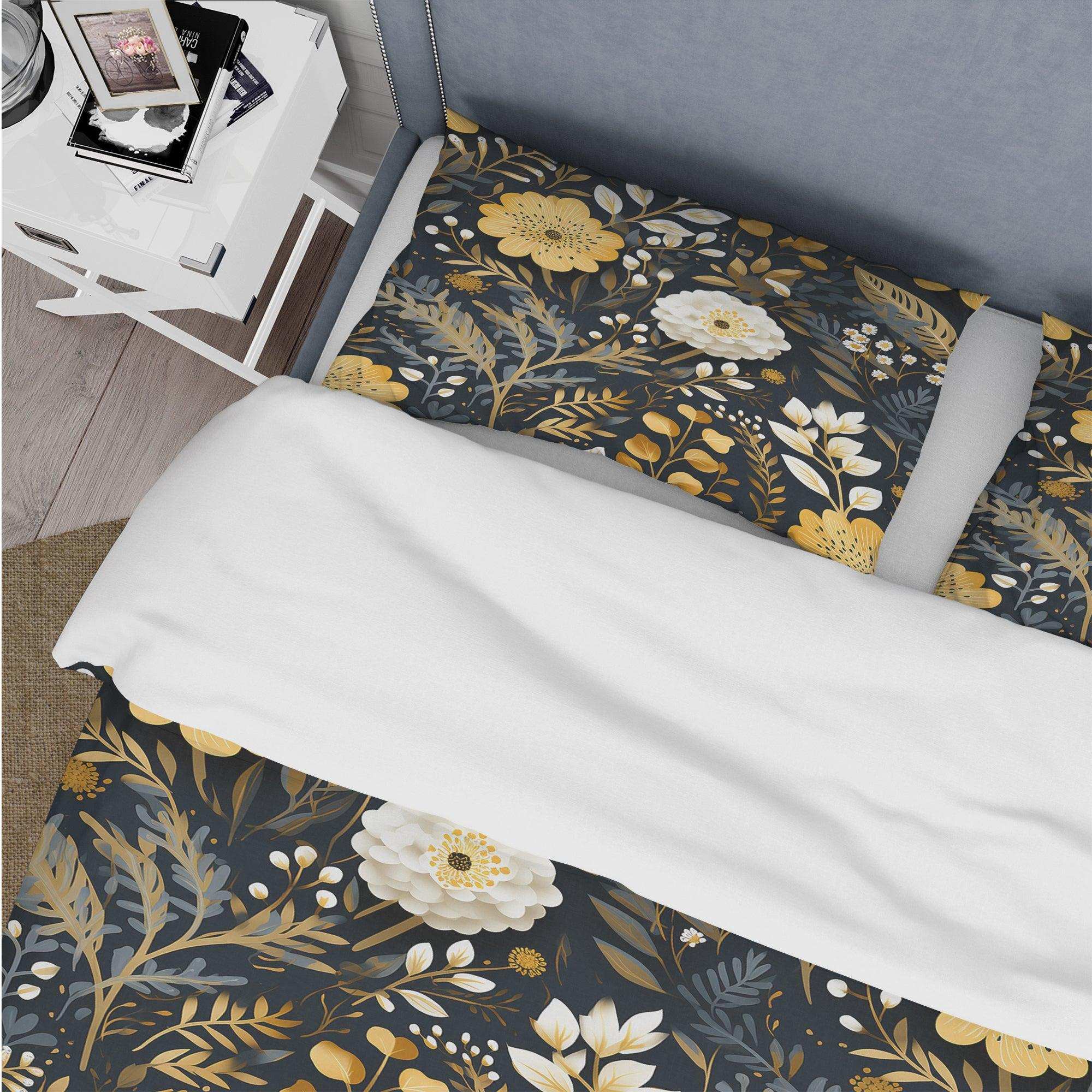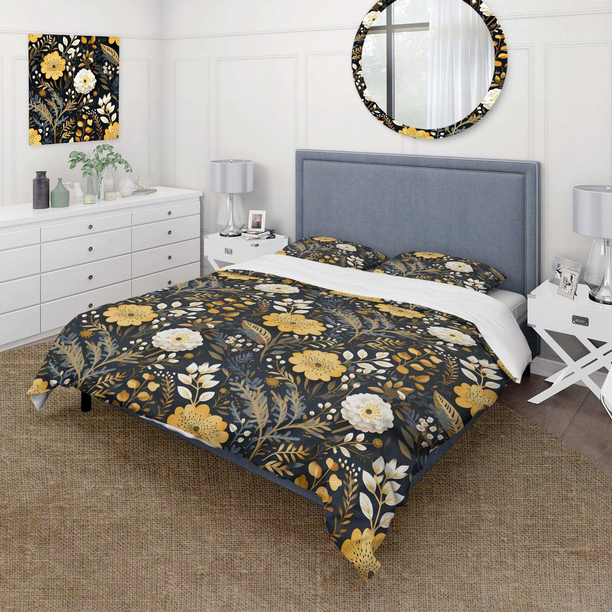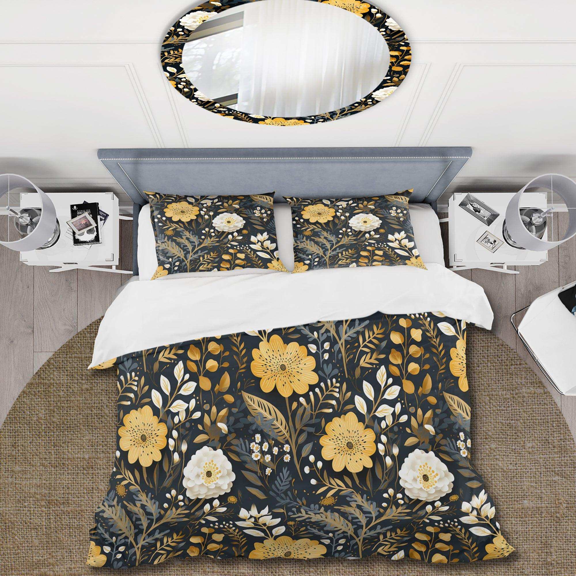 Black And Yellow Boho Botanical - Duvet Cover Set