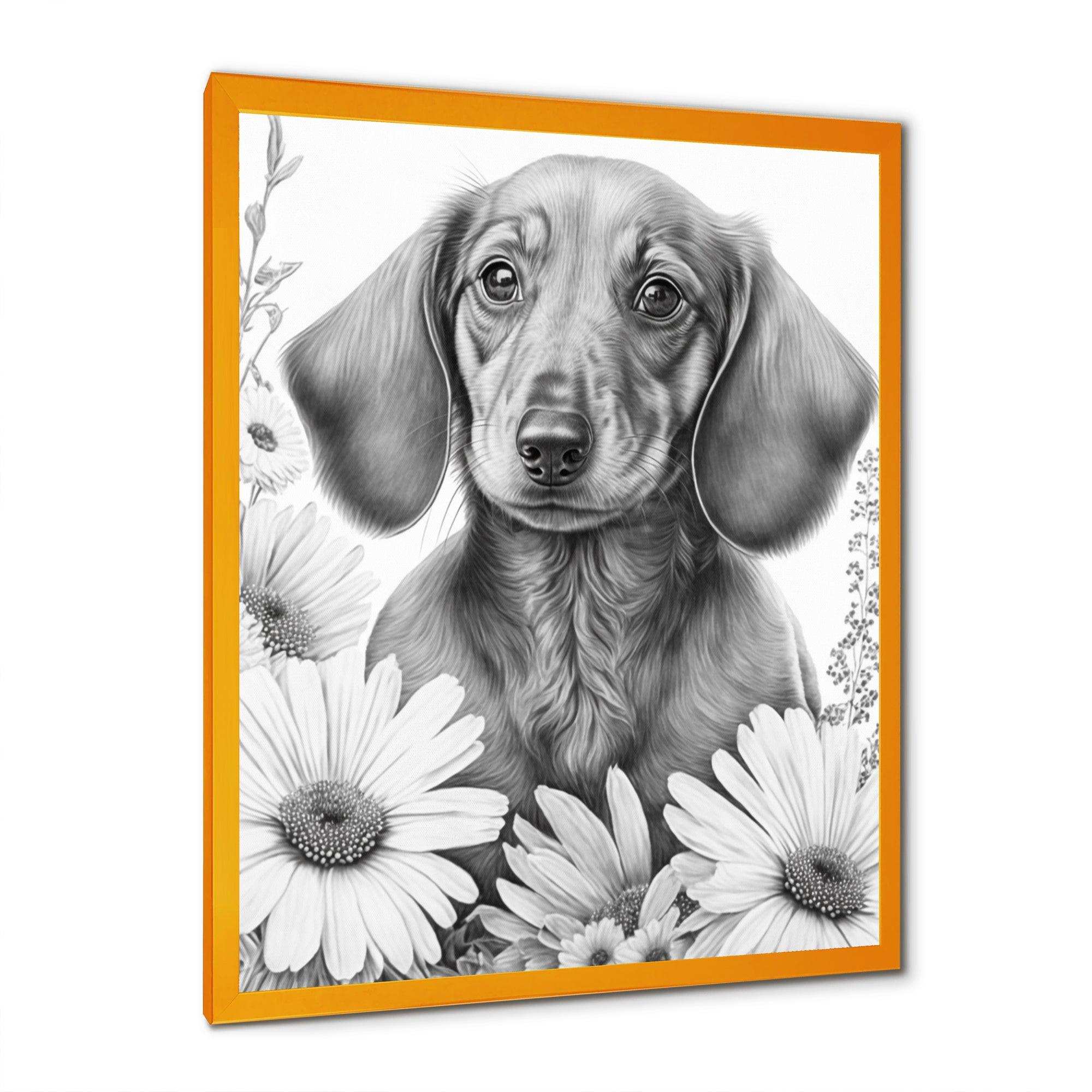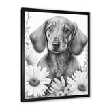 Black Dachshund With White Flowers I