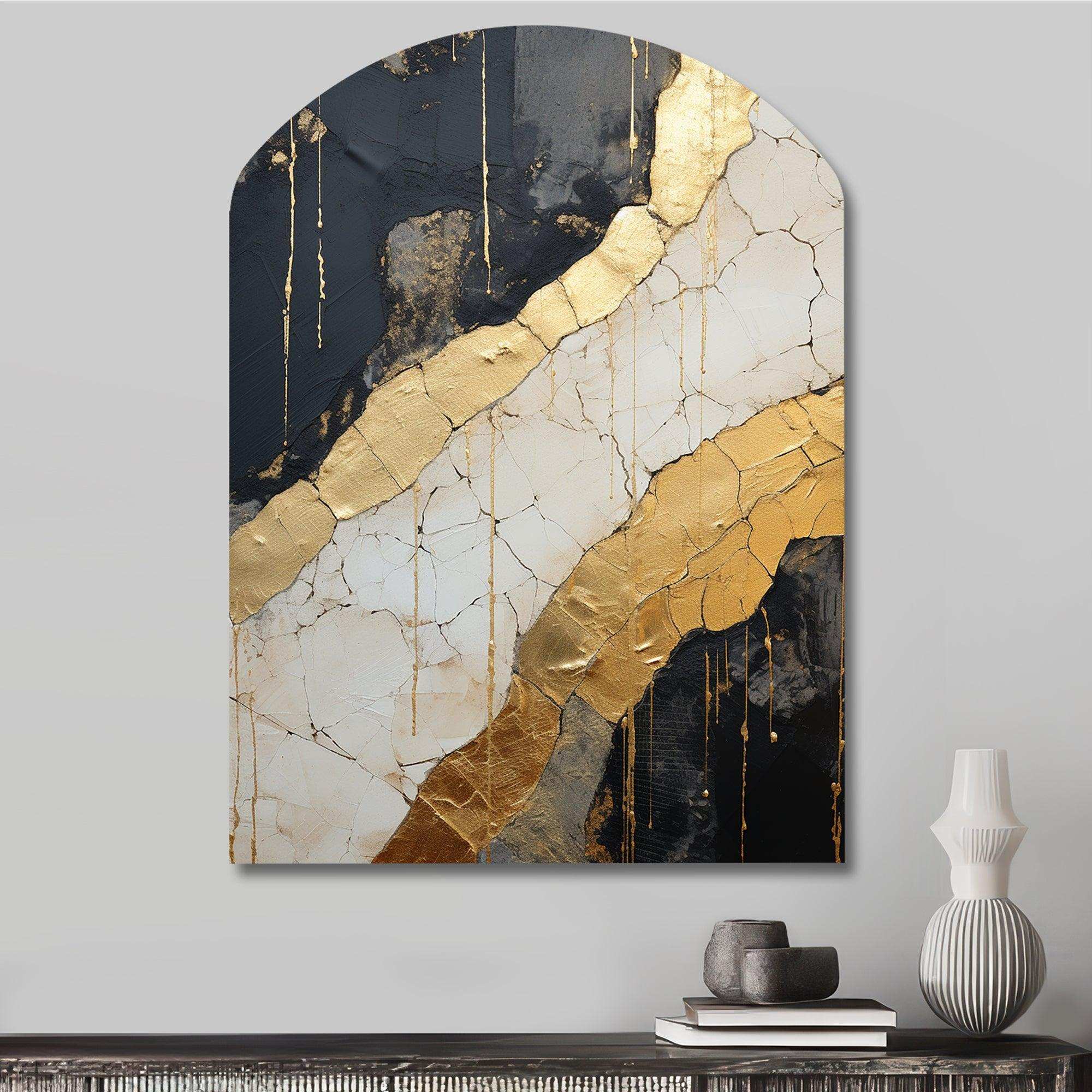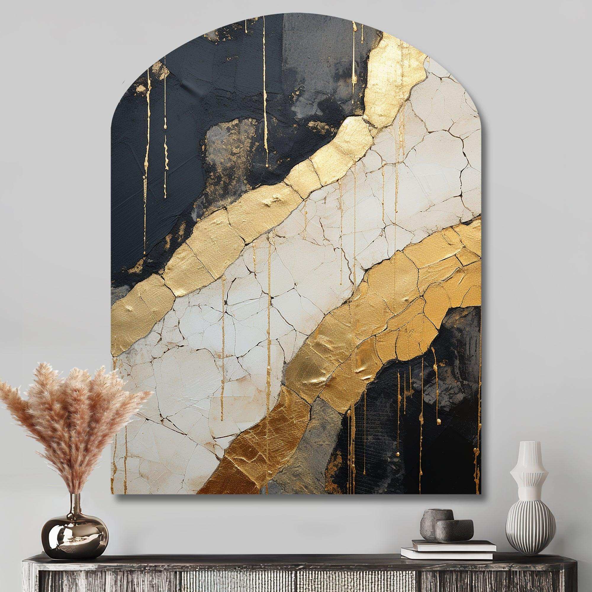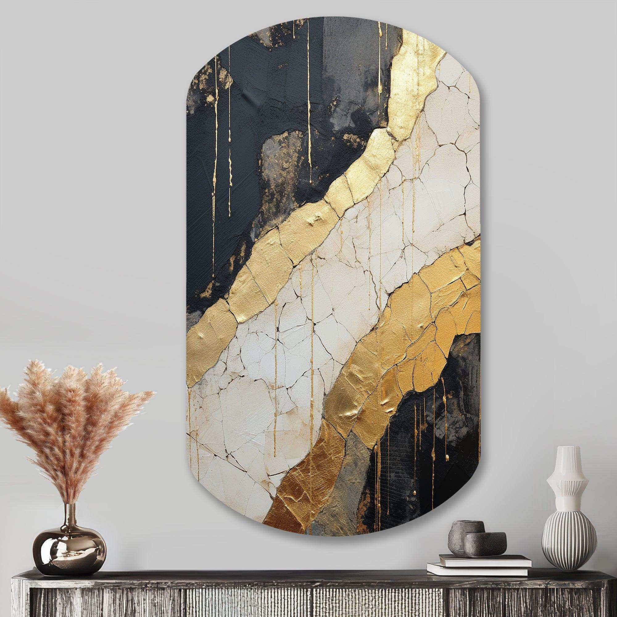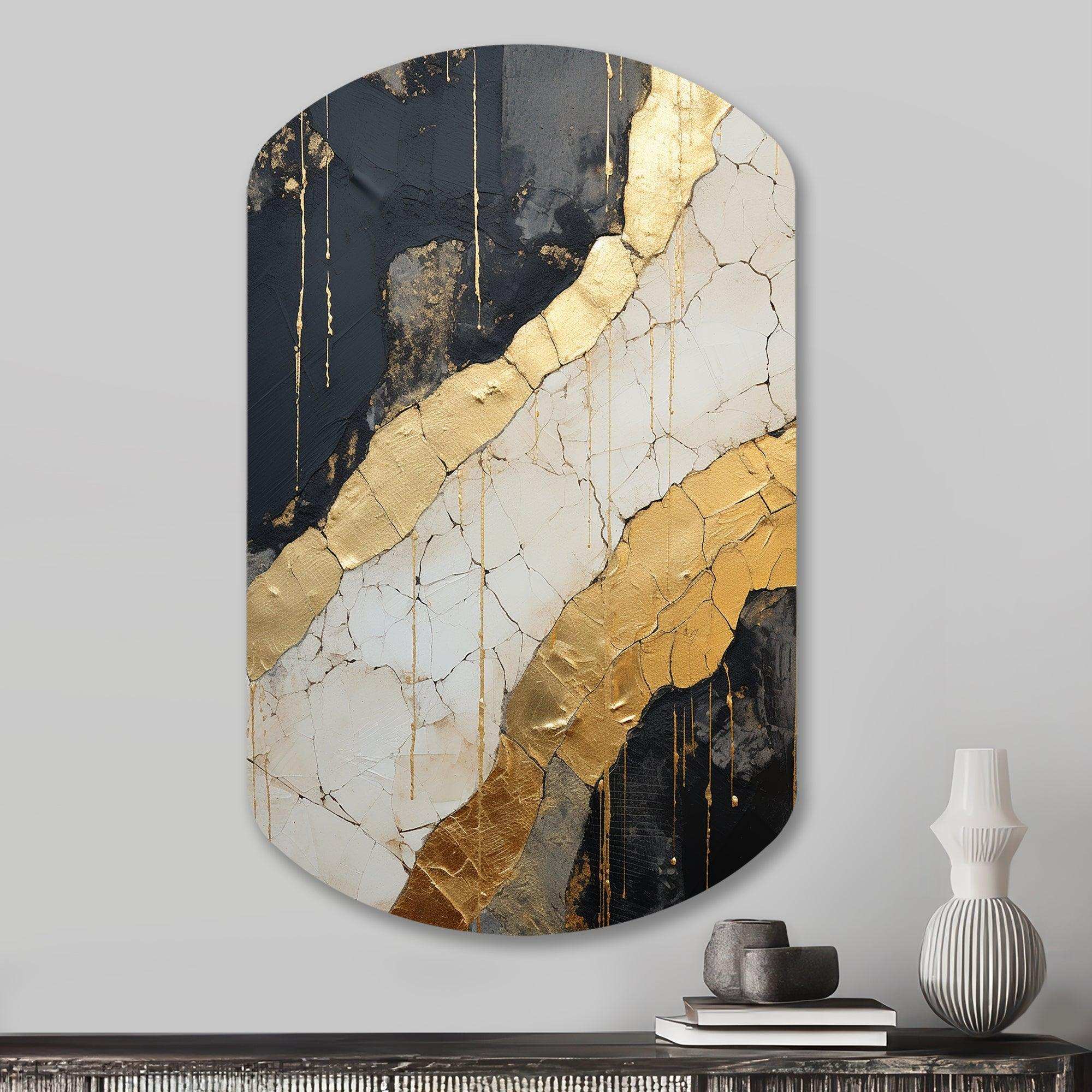 Black Gold Adorned Poteries V - Asymmetric Metal Wall Art