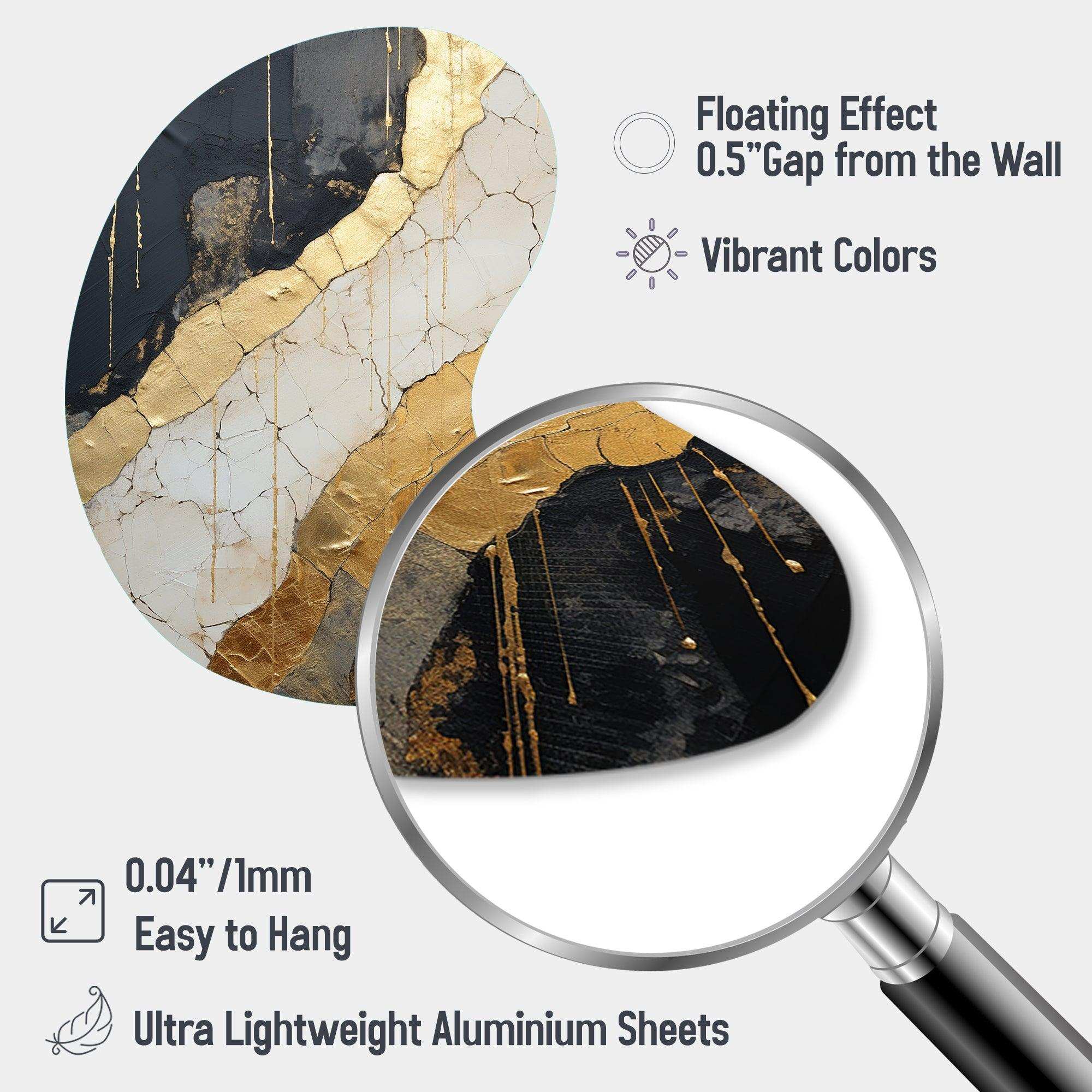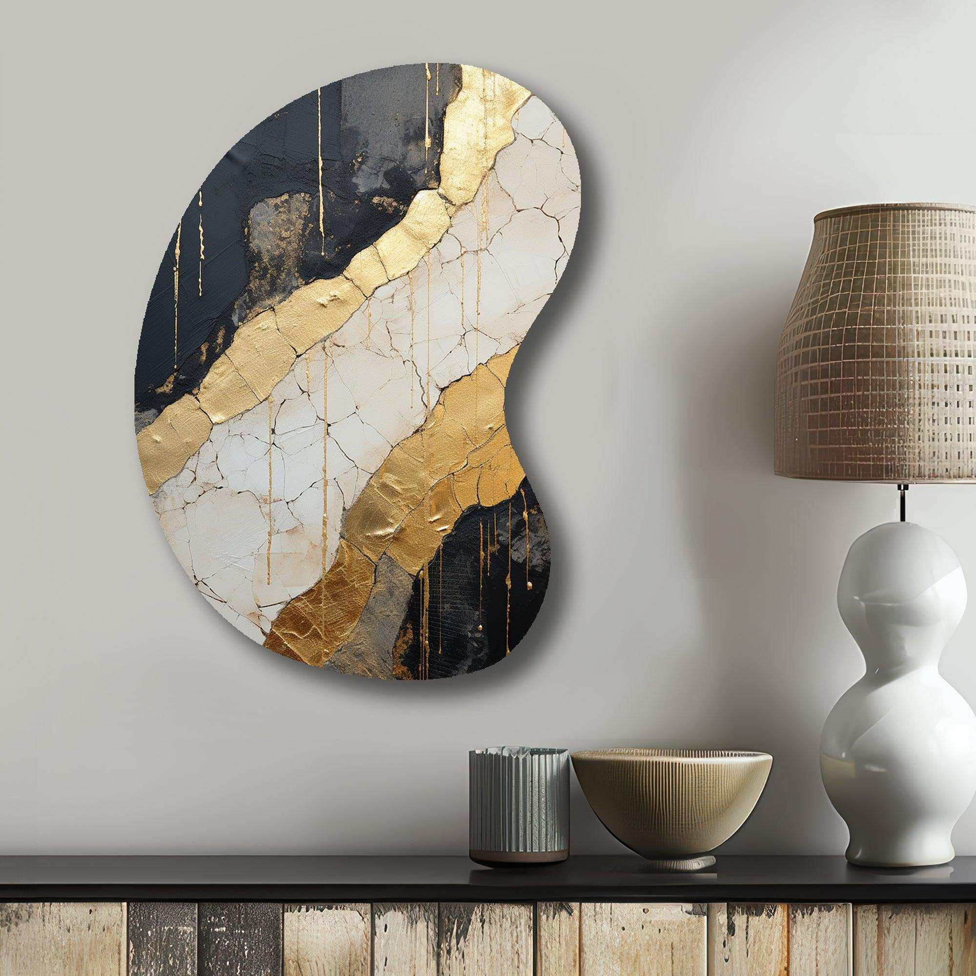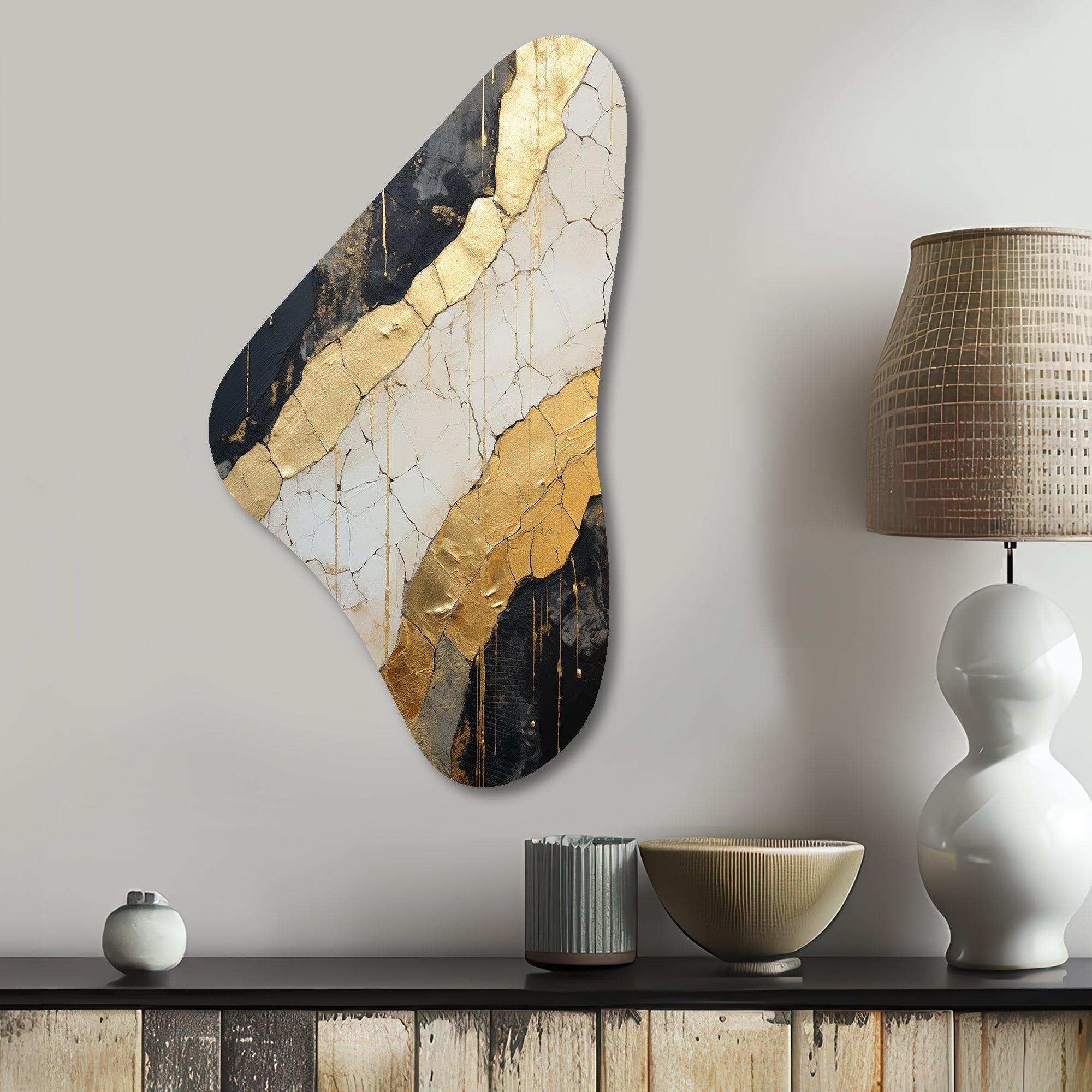 Elevate your space with this Modern asymmetrical metal wall art. Our handcrafted metal wall sculptures combine modern design with artistic elegance, creating a striking focal point in any room. This asymmetric metal wall art features unique, irregular shapes that bring dynamic movement and depth to your walls. Perfect for Abstract decor, these Gold irregular metal wall sculptures are printed on aluminum panel, with extra gloss ensuring long-lasting beauty. Ideal for living rooms, offices decor, or entrance, this statement piece adds a bold, Abstract touch to any decor.