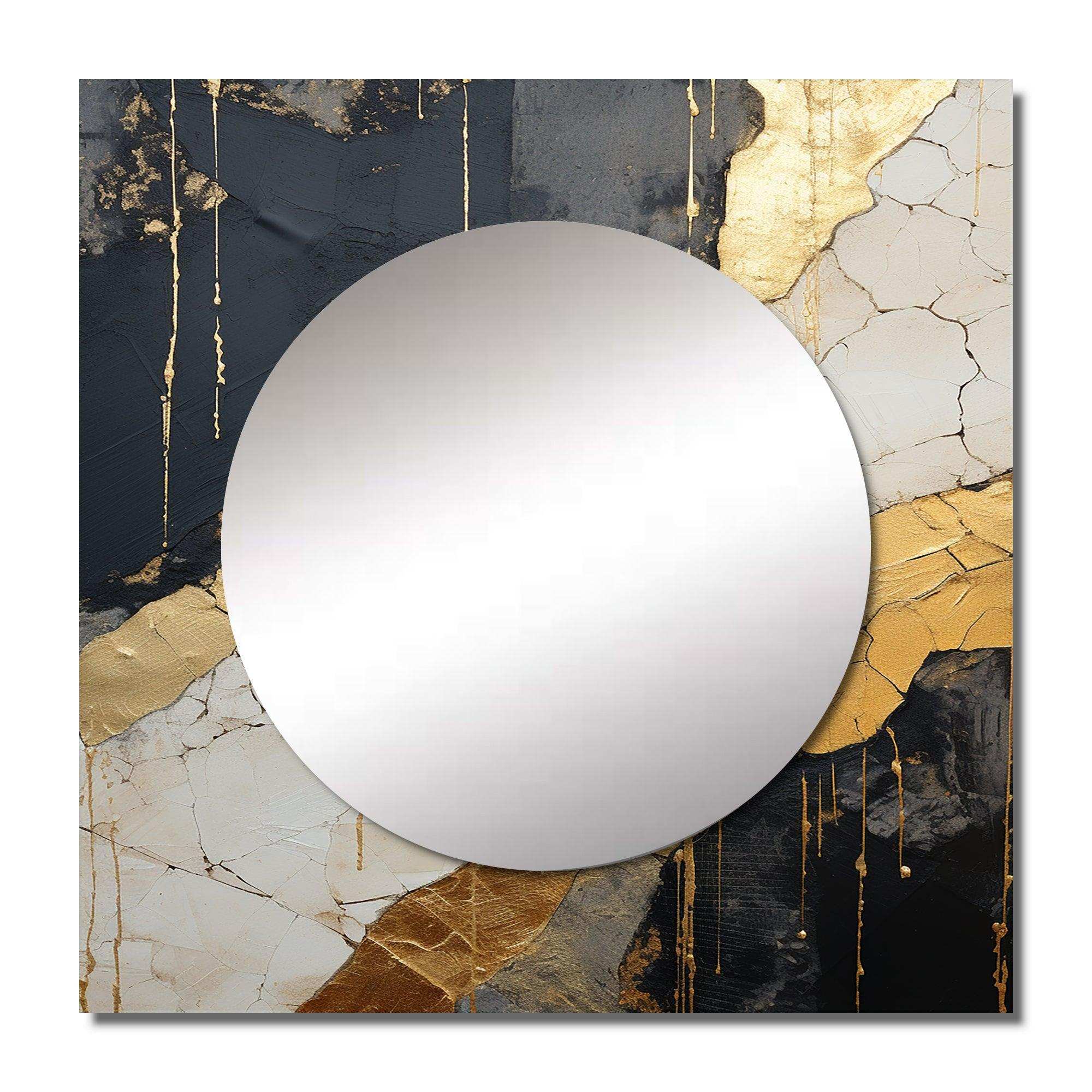 Black Gold Adorned Poteries V - Abstract Wall Mirror