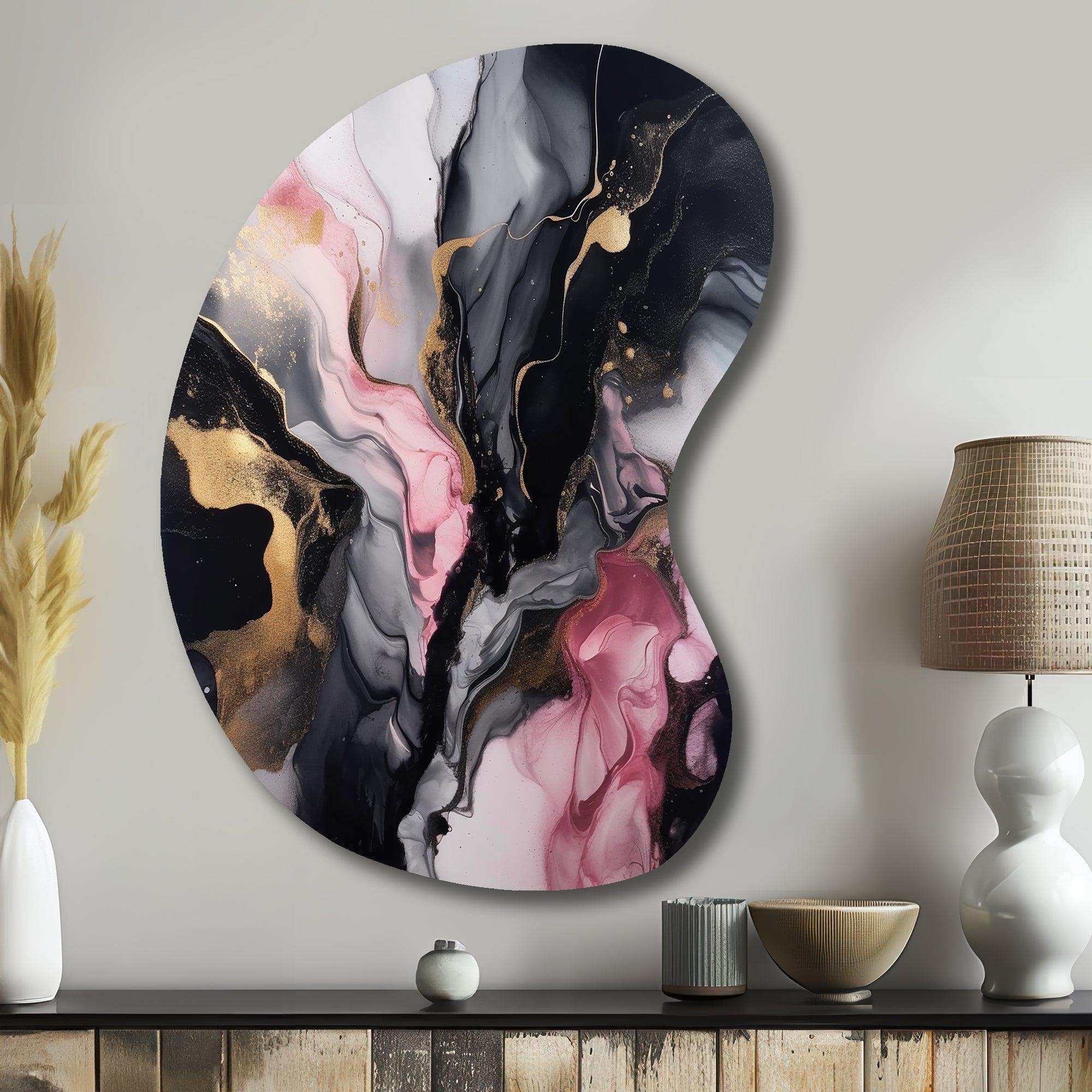 Black Gold Marble Splash II - Asymmetric Metal Wall Art