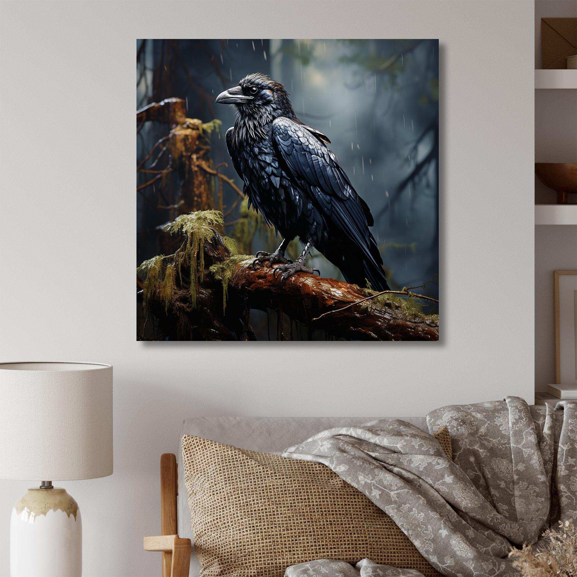 Black Raven forest Guardian I - Animals Canvas Wall Art