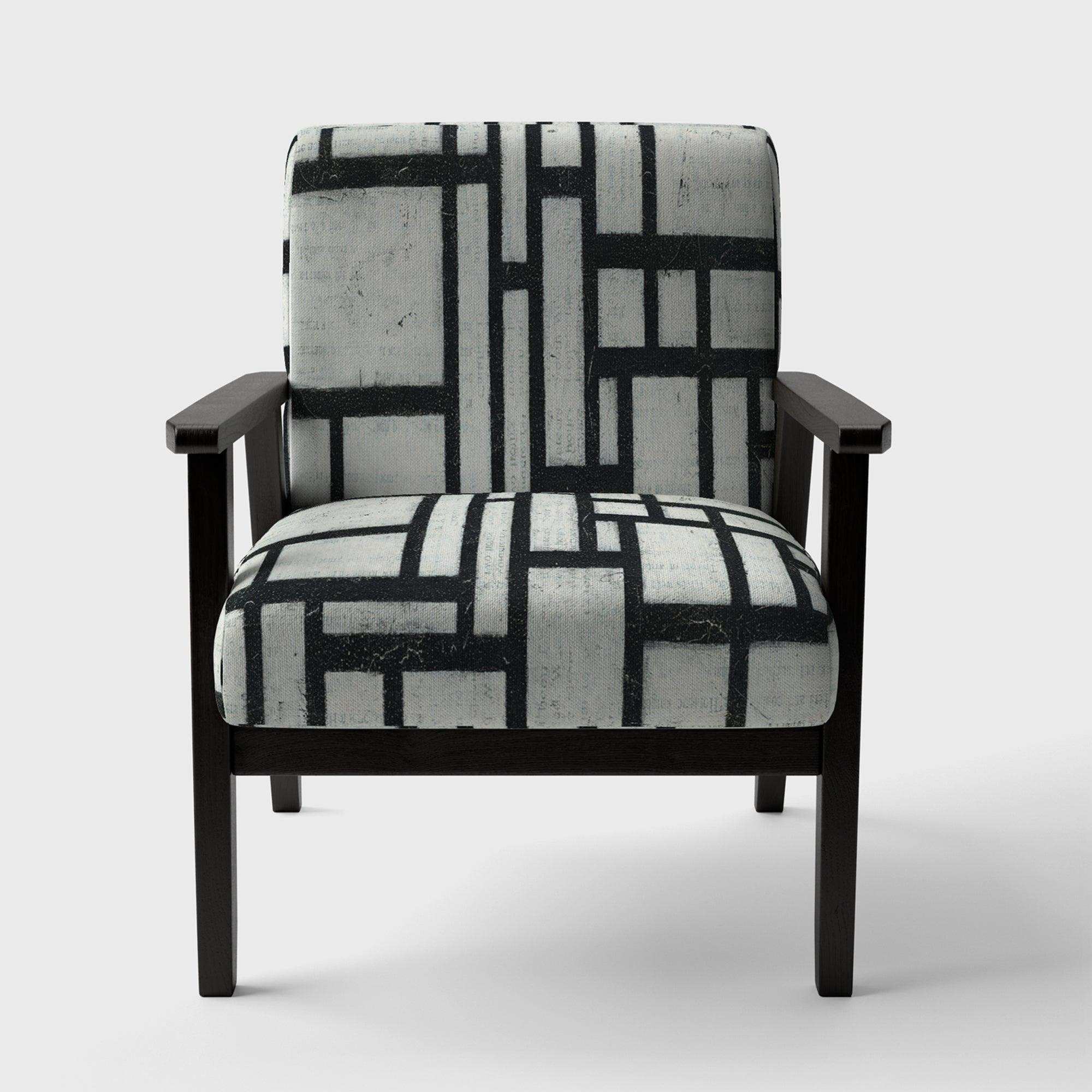 Black and White Labyrinth geometric Mid-Century Accent Chair
