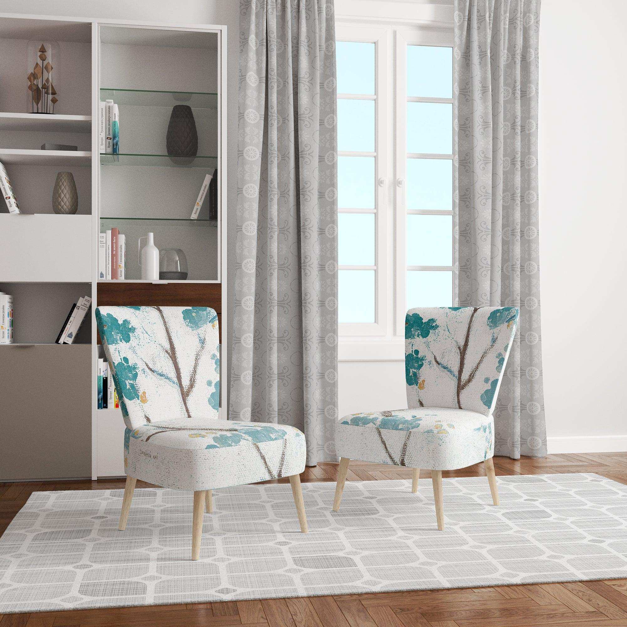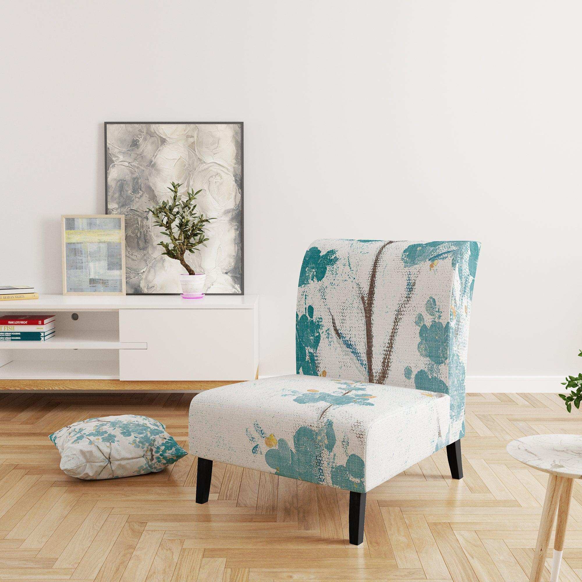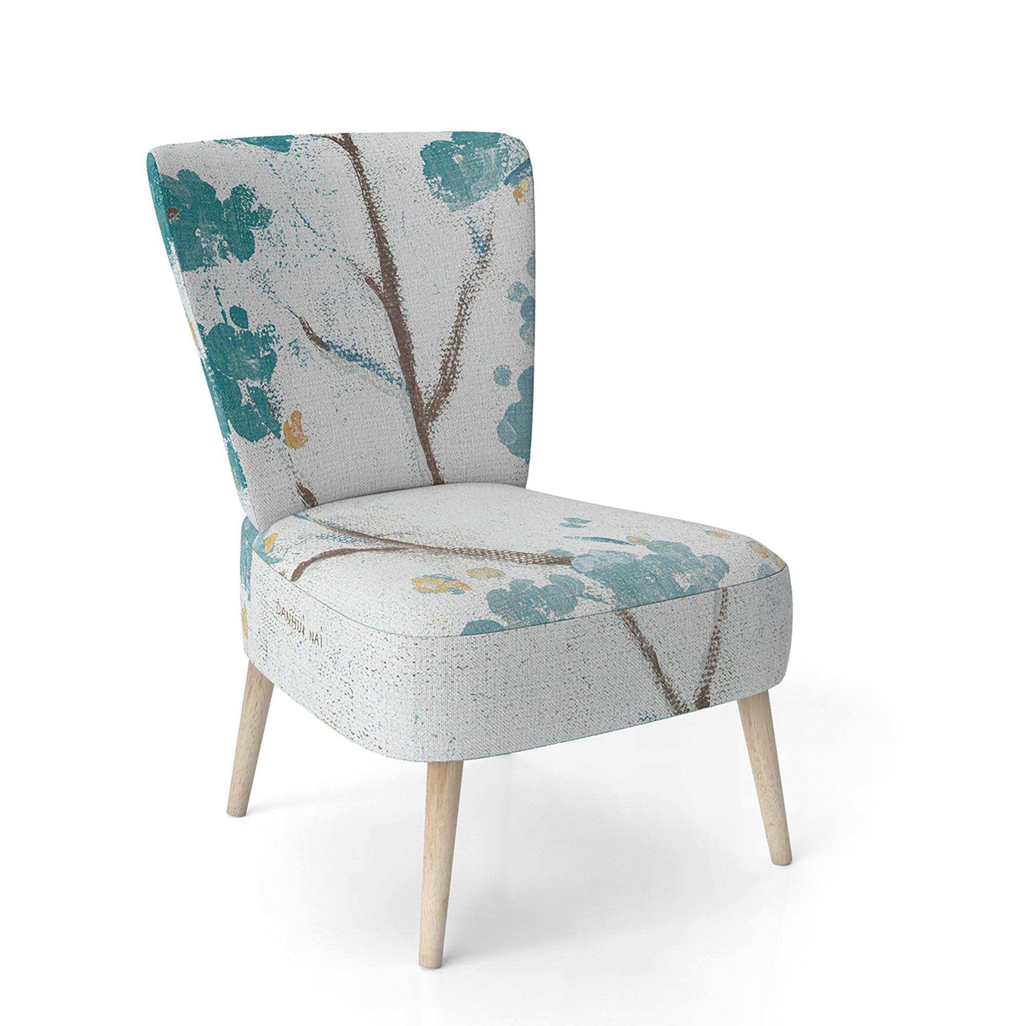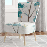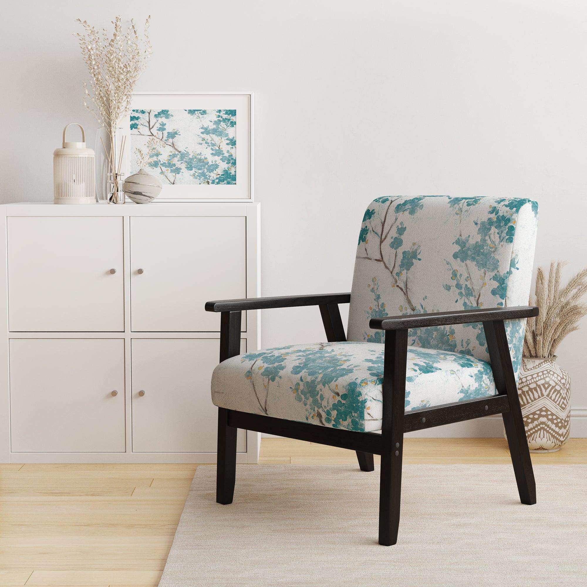 Teal Cherry Blossoms II Tranditional Accent Chair