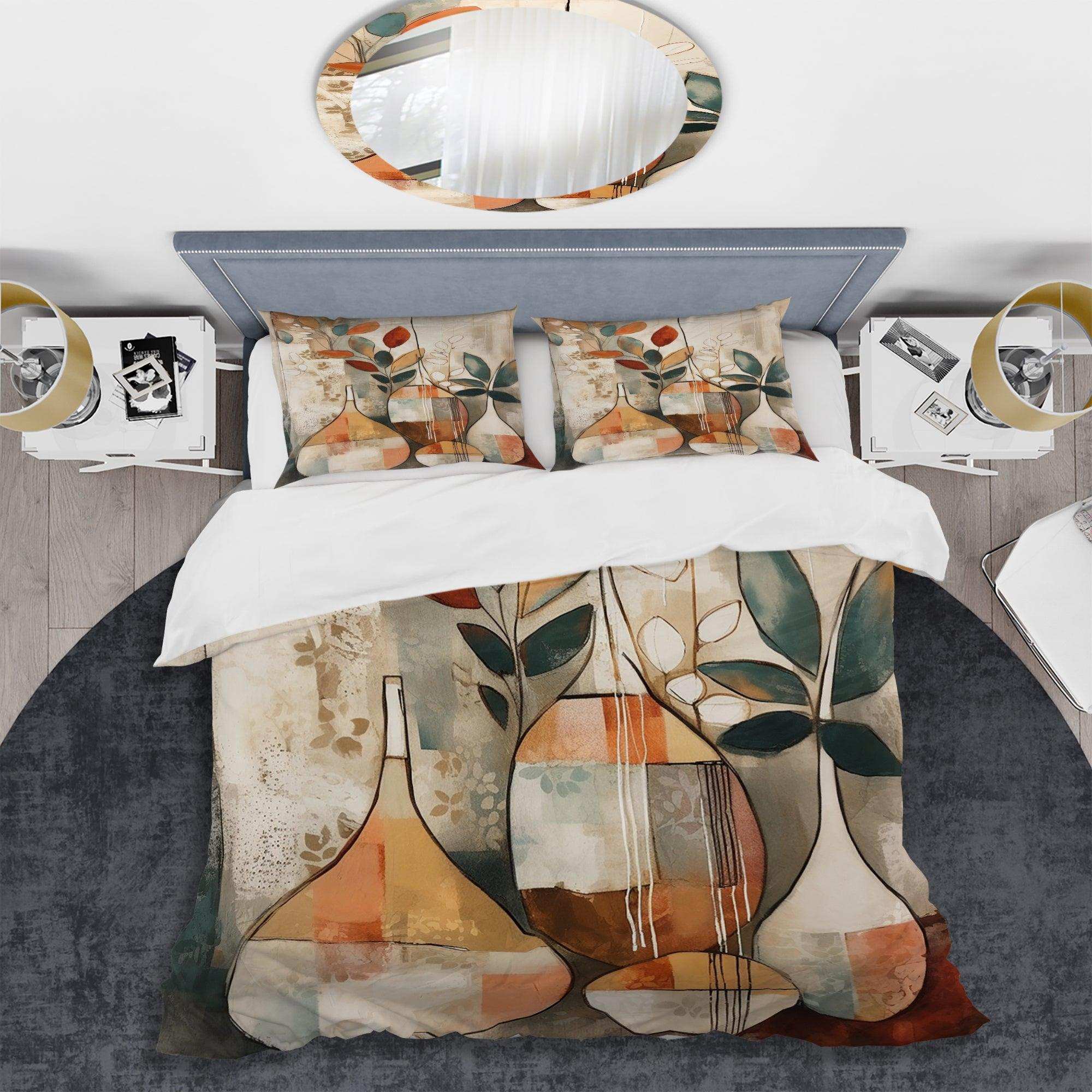 Green And Beige Channeling Bohemian Vibes - Duvet Cover Set