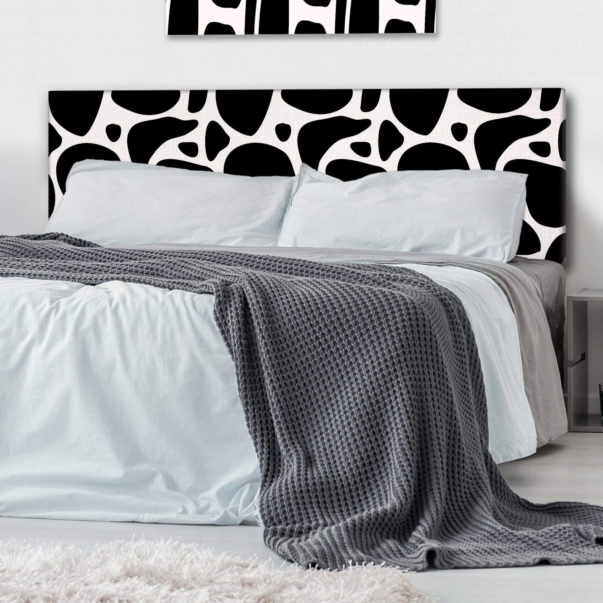 The rectangle silhouette is engineered with 2 adjustable legs, giving you height options between 34 and 46 inches, matching most standard bed frames and mattress sizes. All mounting hardware is included to attach this beautiful Black Organic Shapes On White headboard to any bed base, frame, or even the wall and become the focal point of your bedroom. Matching Modern & Contemporary throw pillows and cushions are available as well.