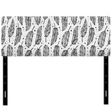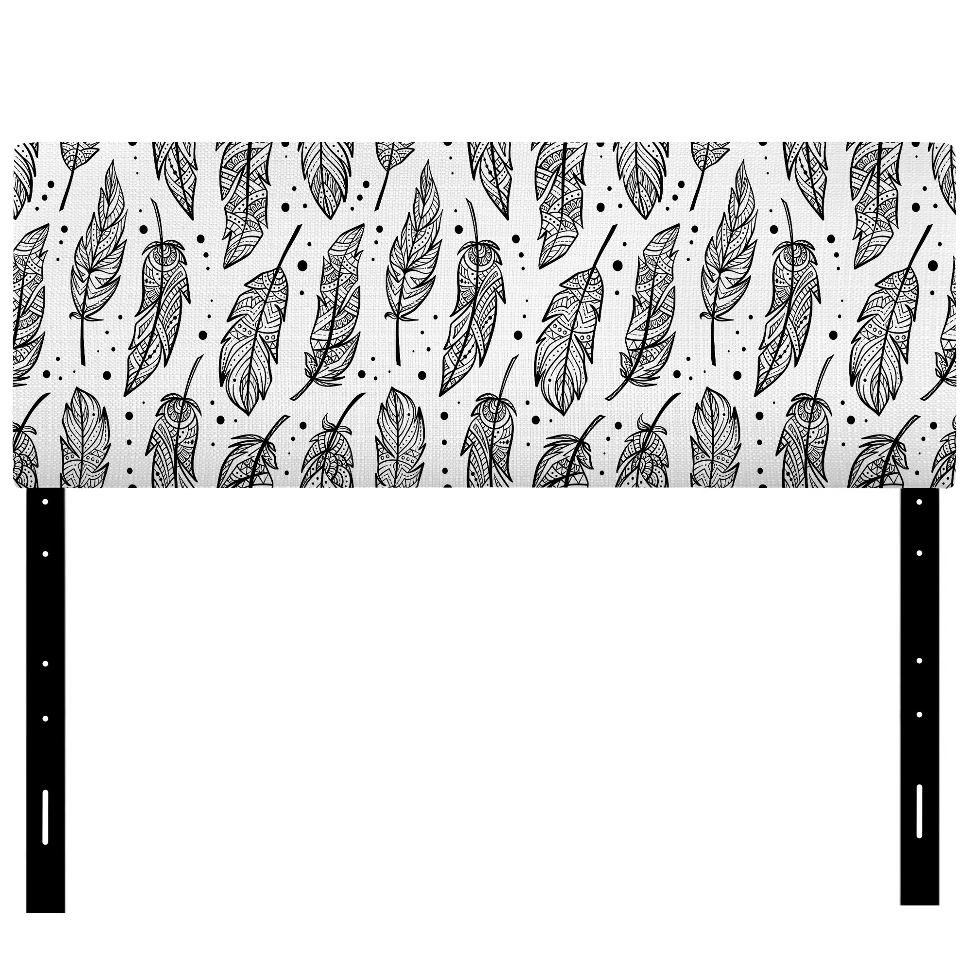Black Boho Feathers On White upholstered headboard