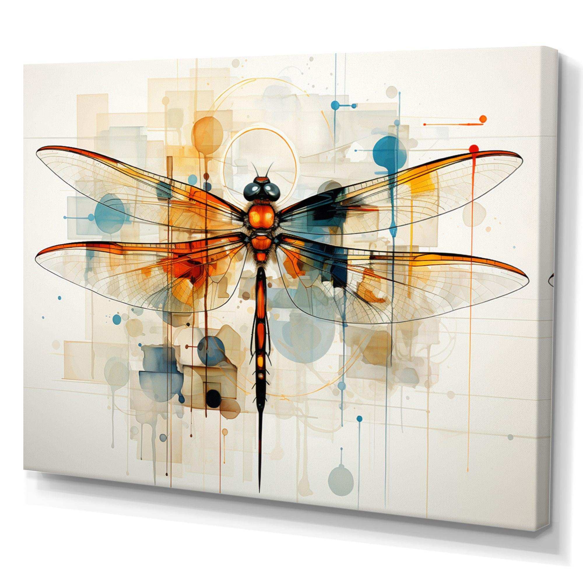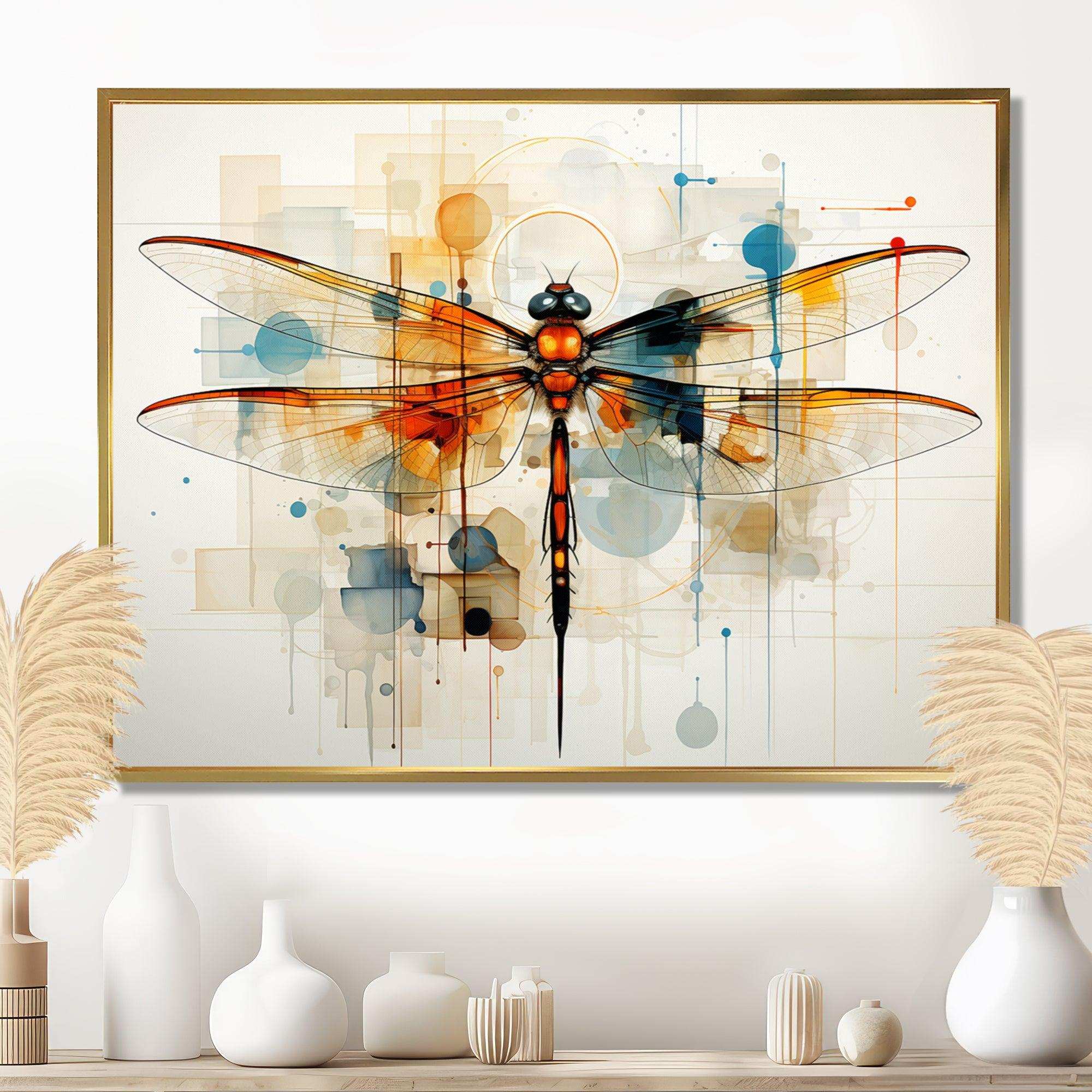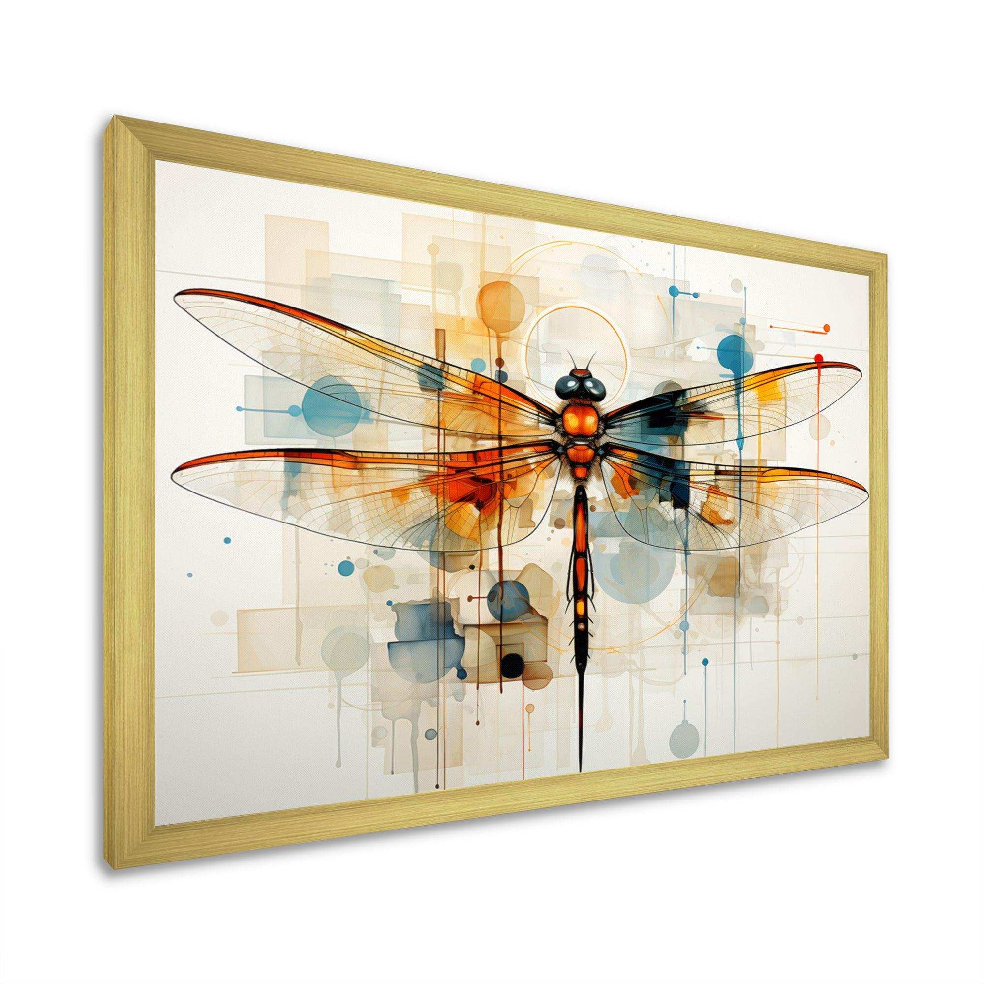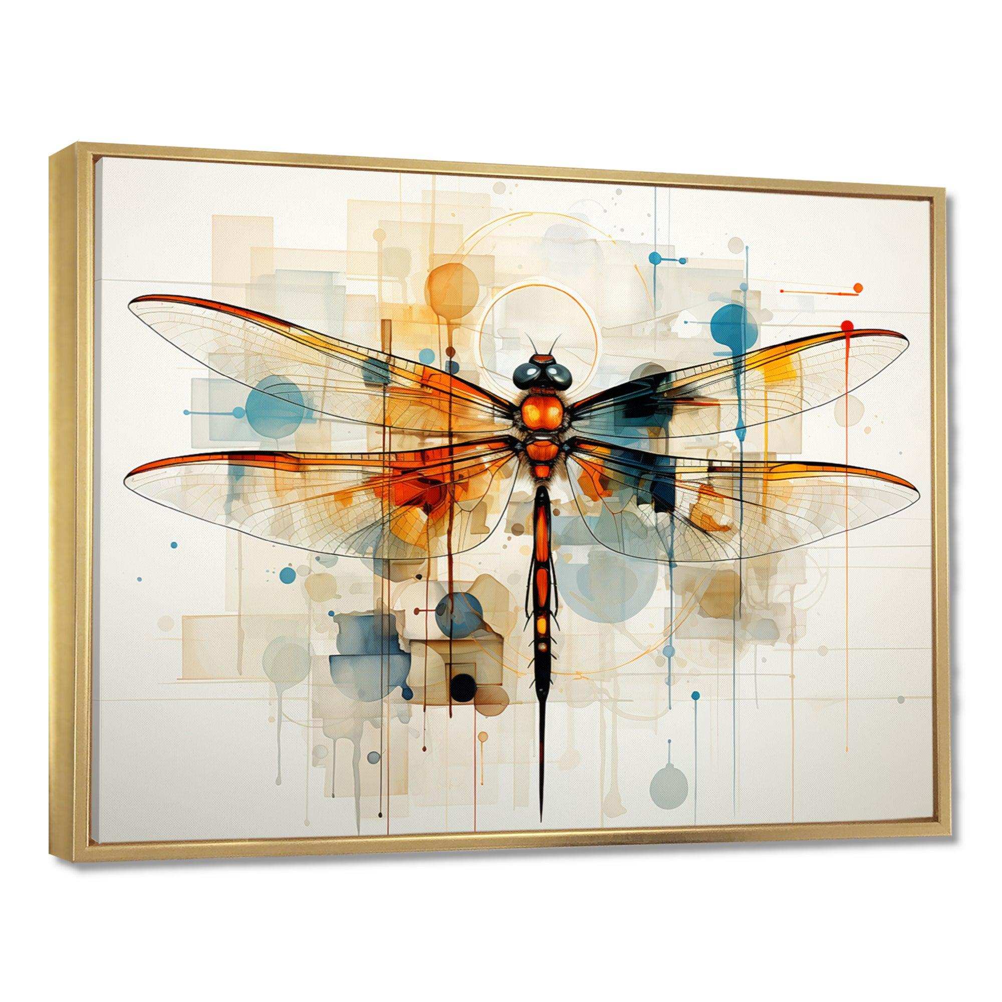 Teak Dragonfly Ethereal Flight Geometric - Animals Canvas Wall Art