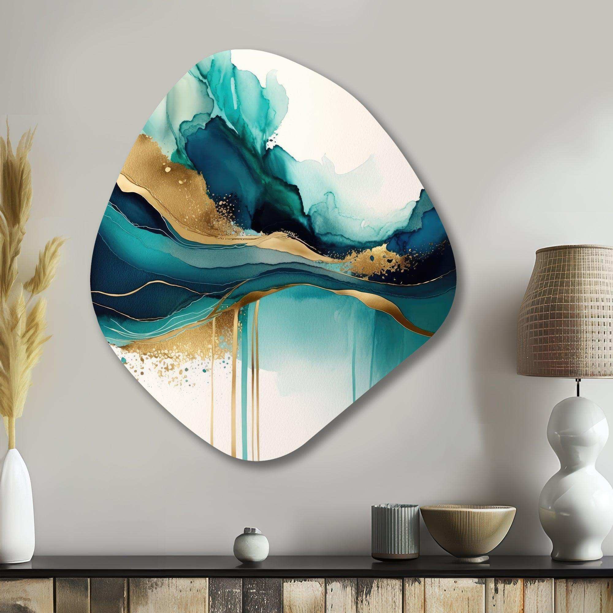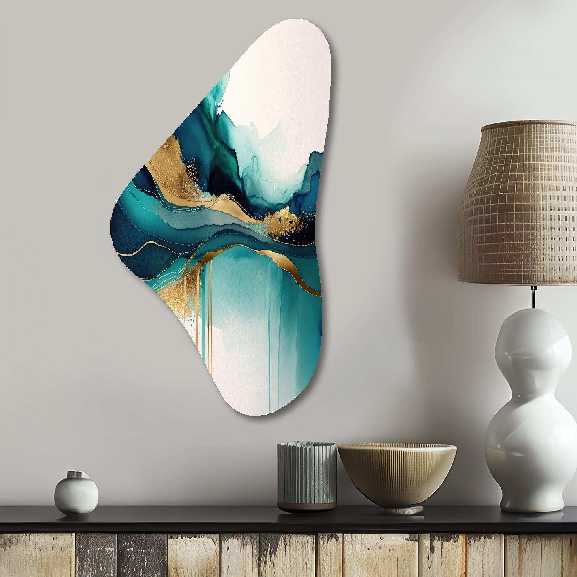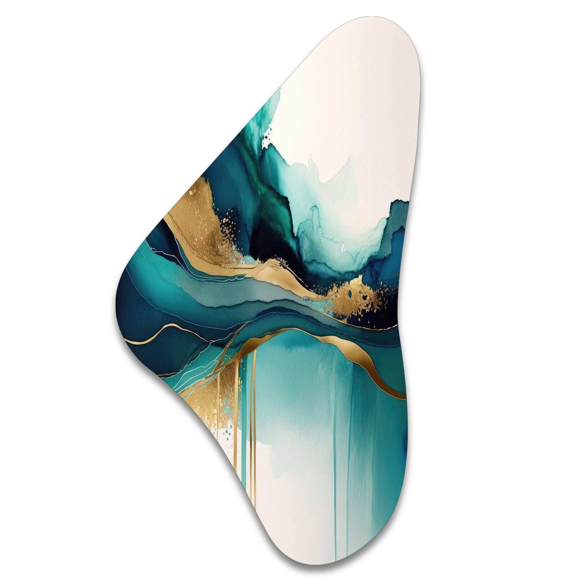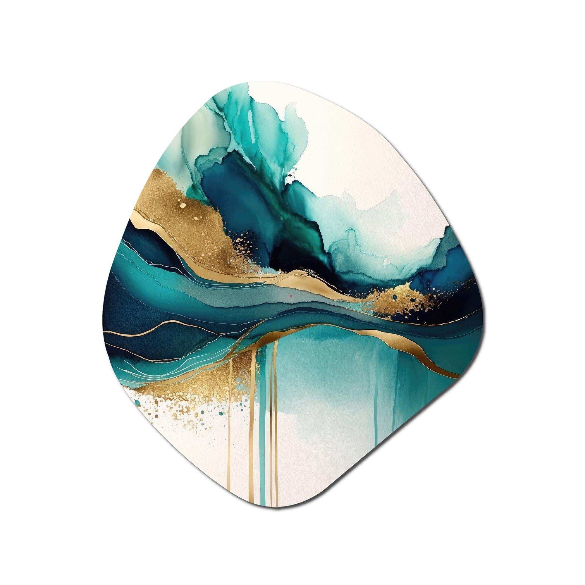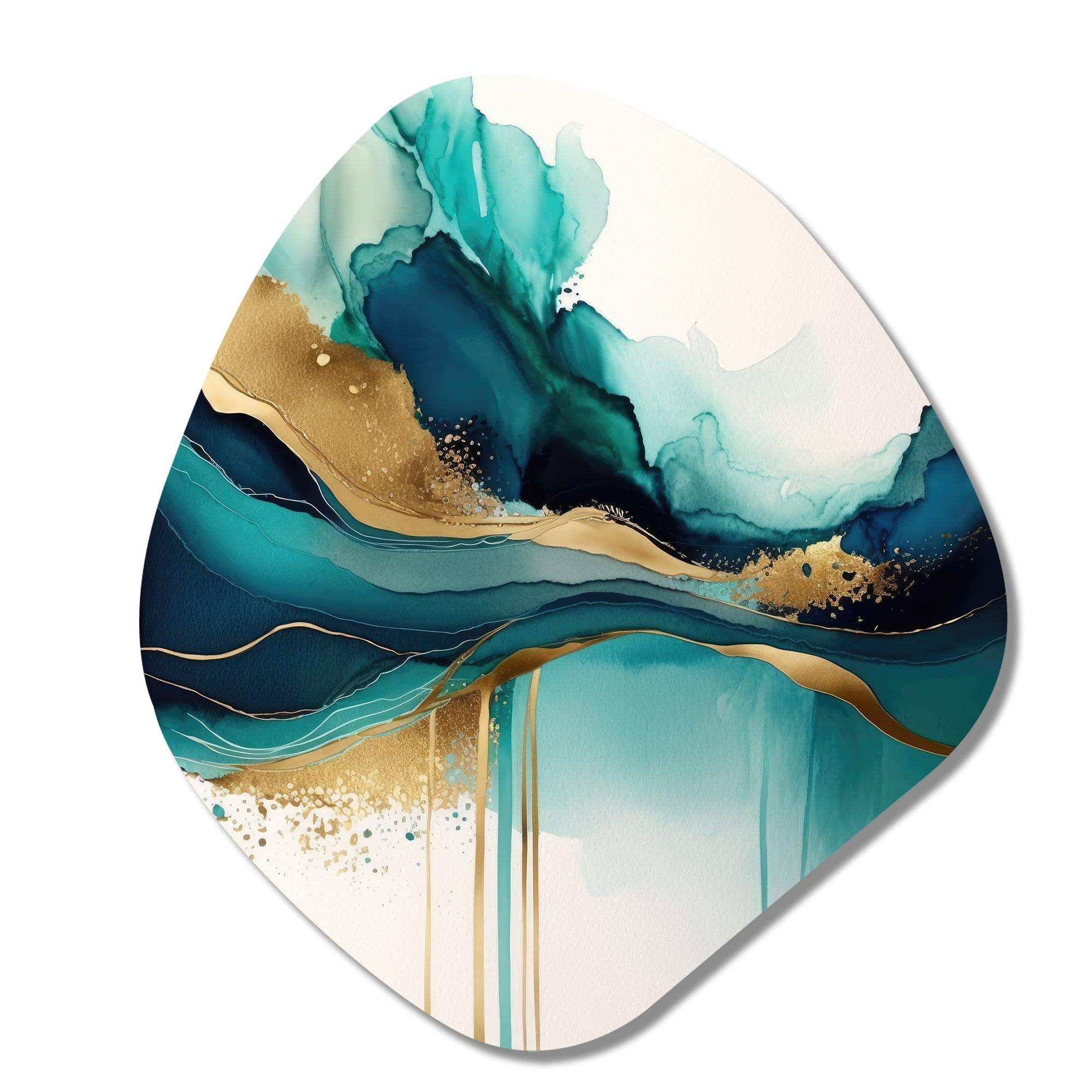 Teal And Gold Abstract Expression II - Asymmetric Metal Wall Art