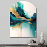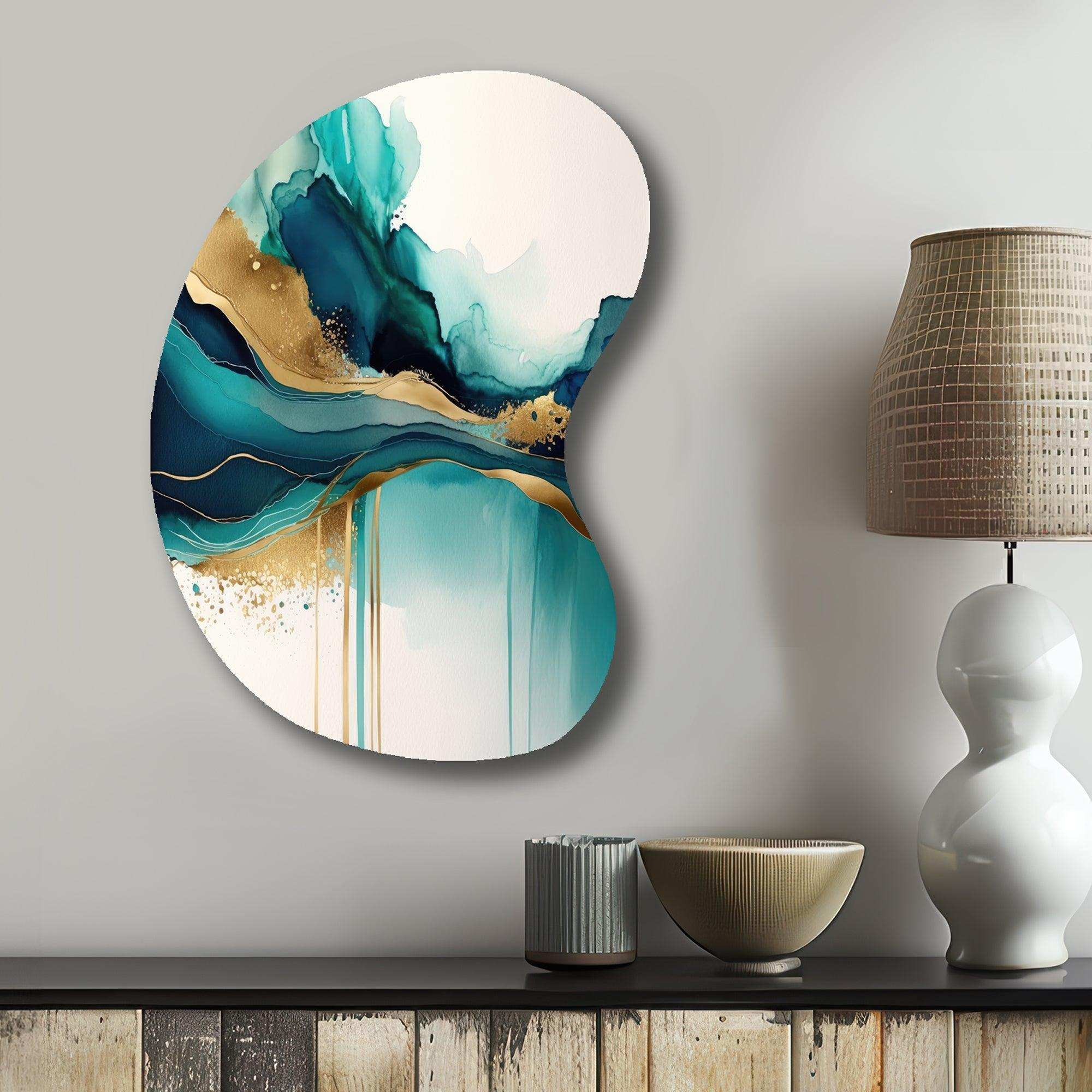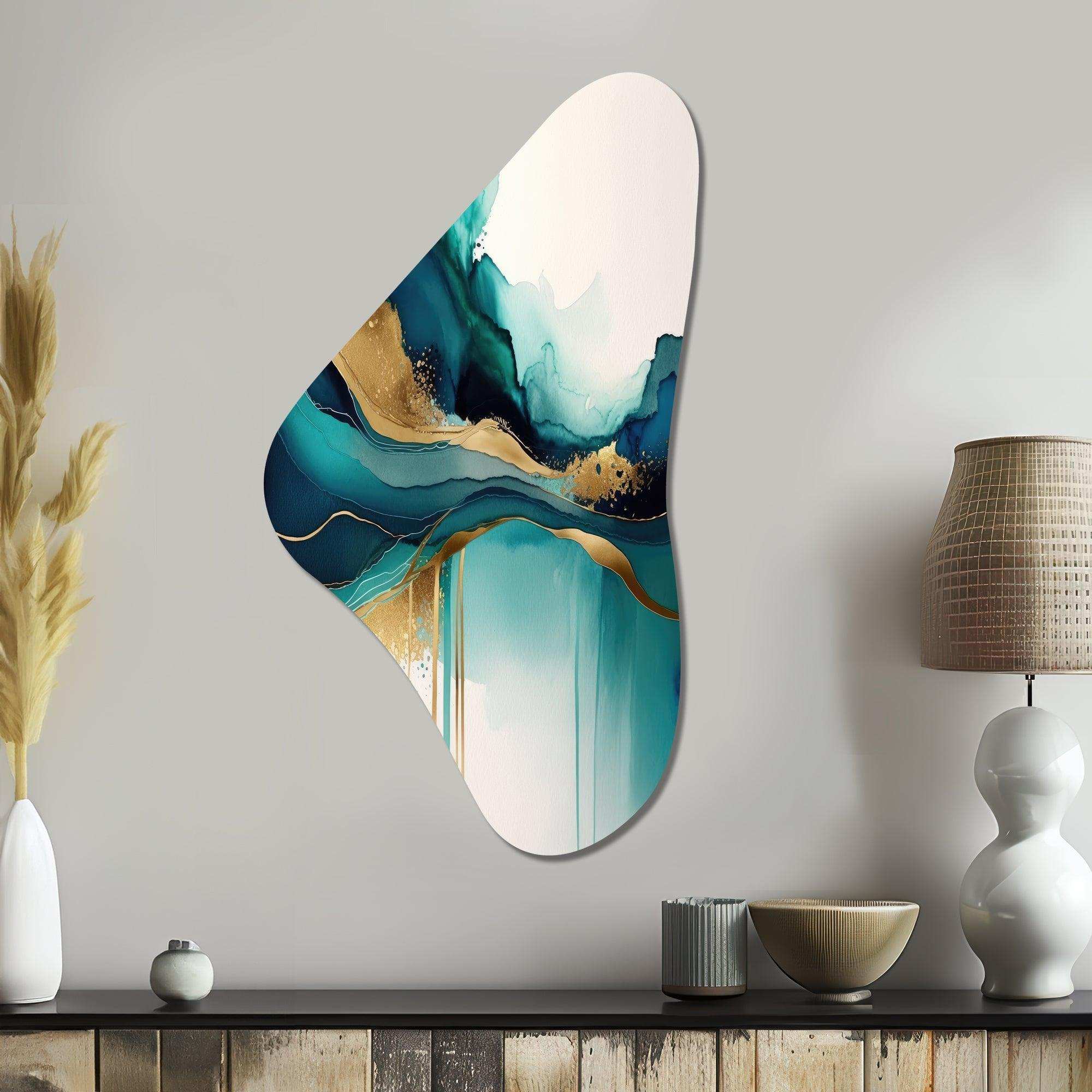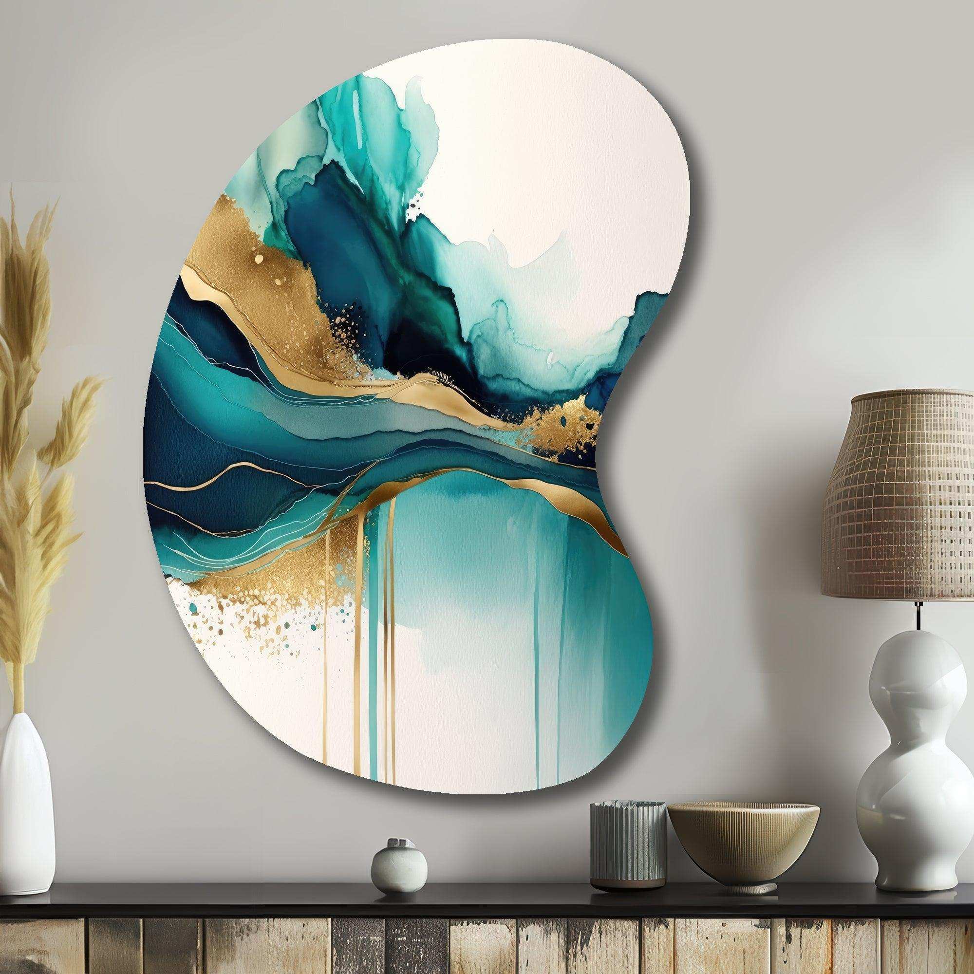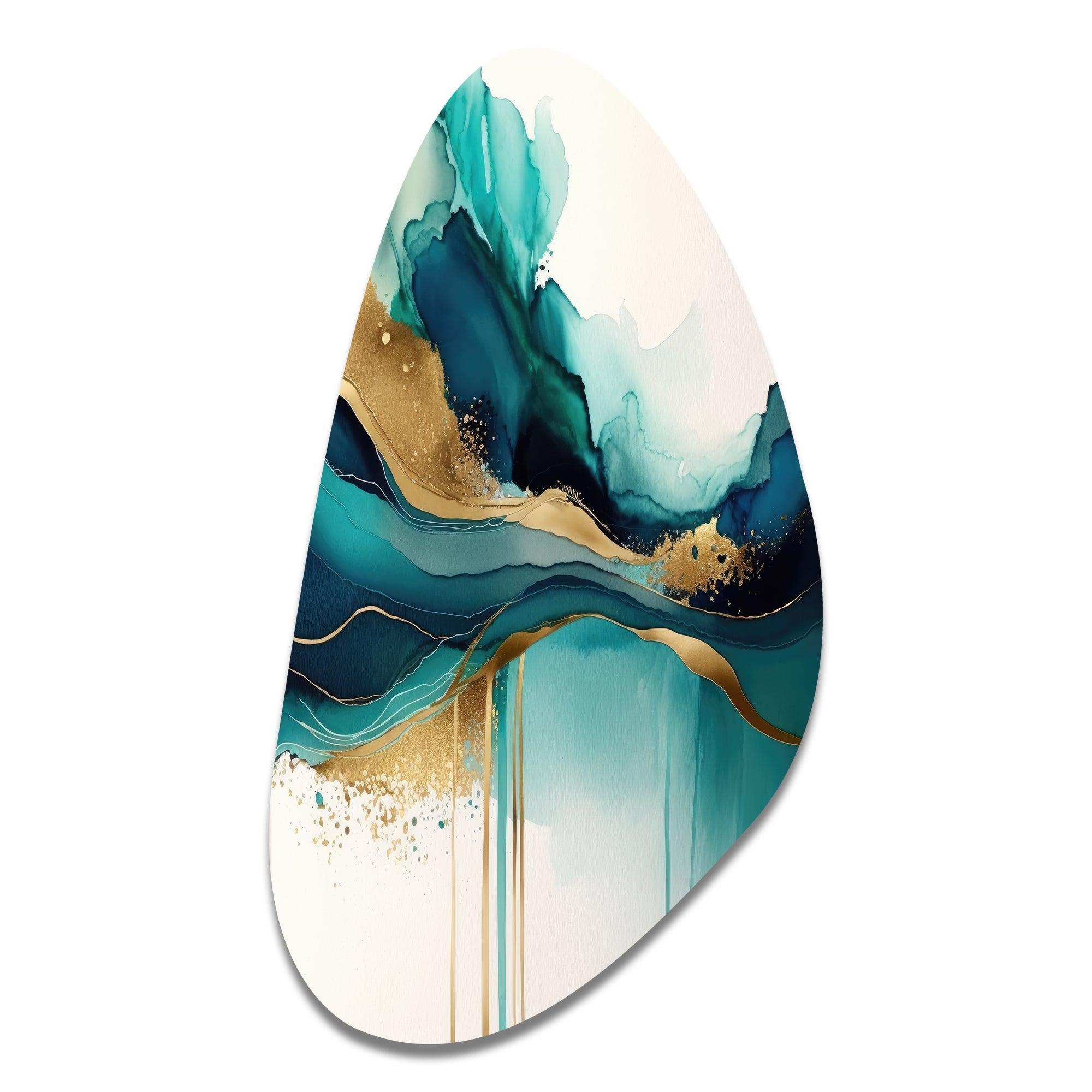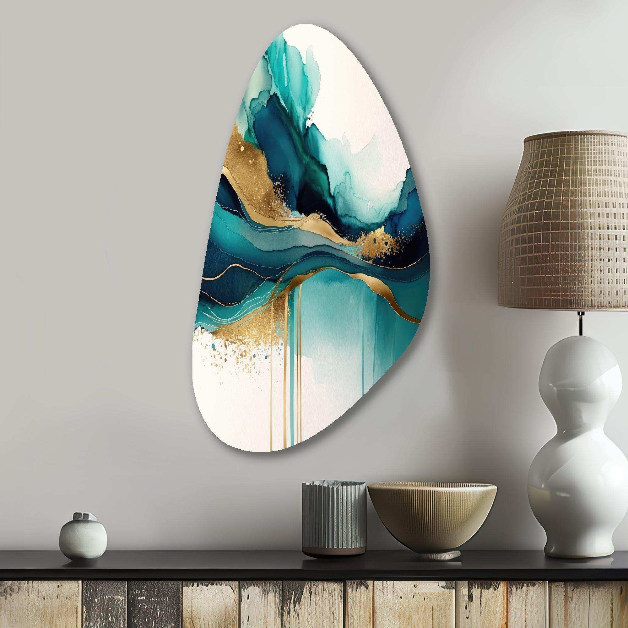 Teal And Gold Abstract Expression II - Asymmetric Metal Wall Art