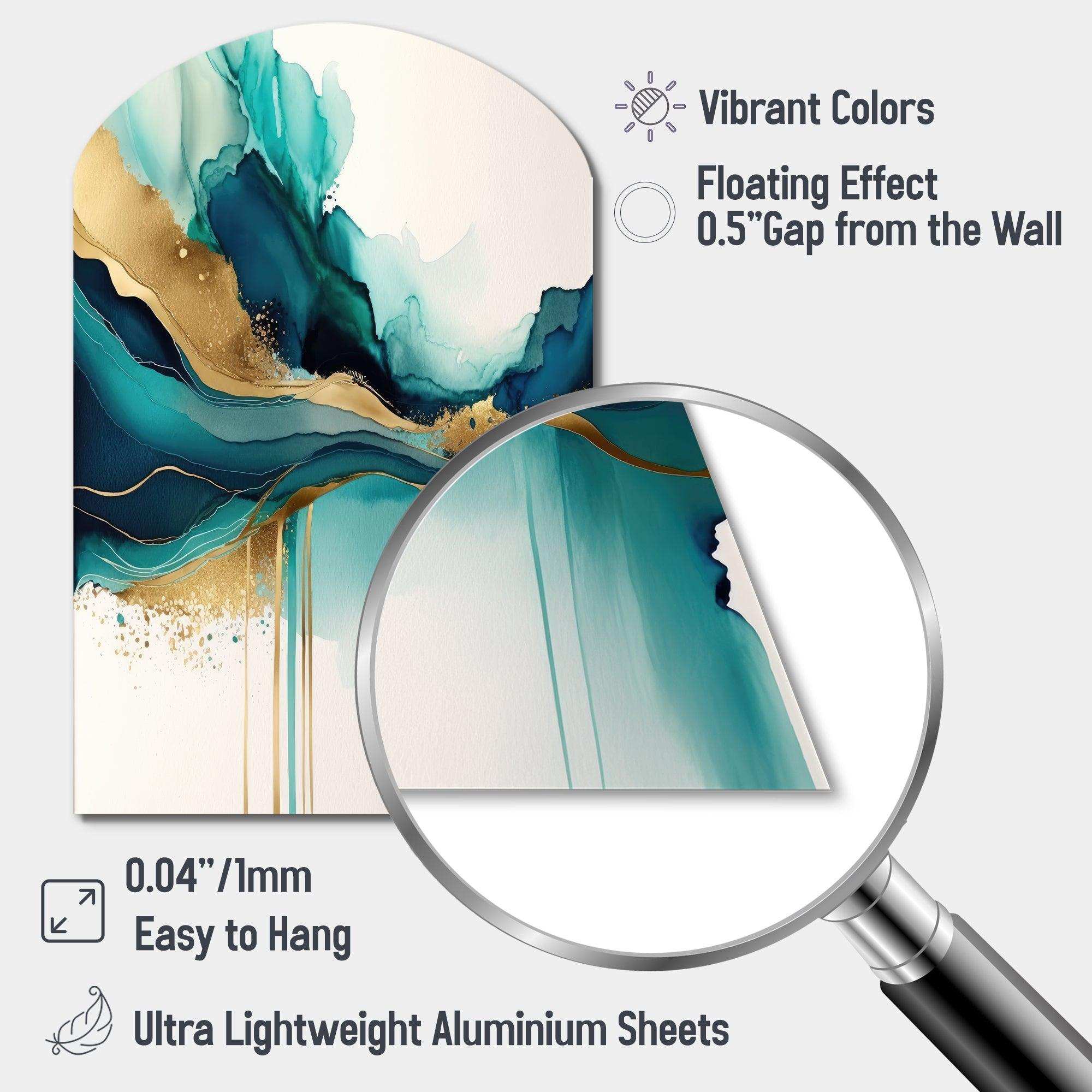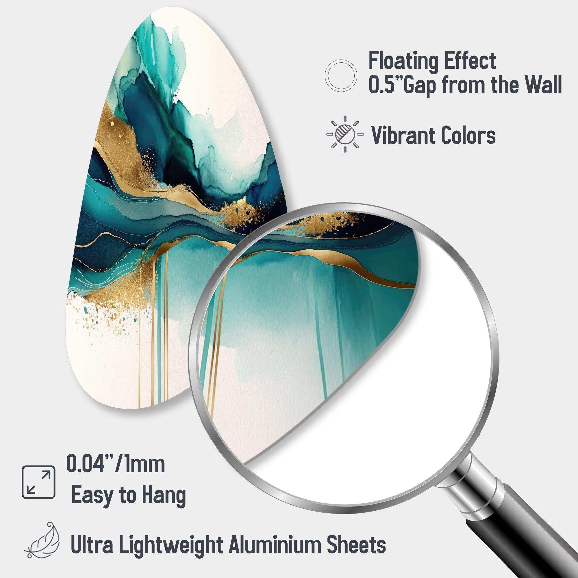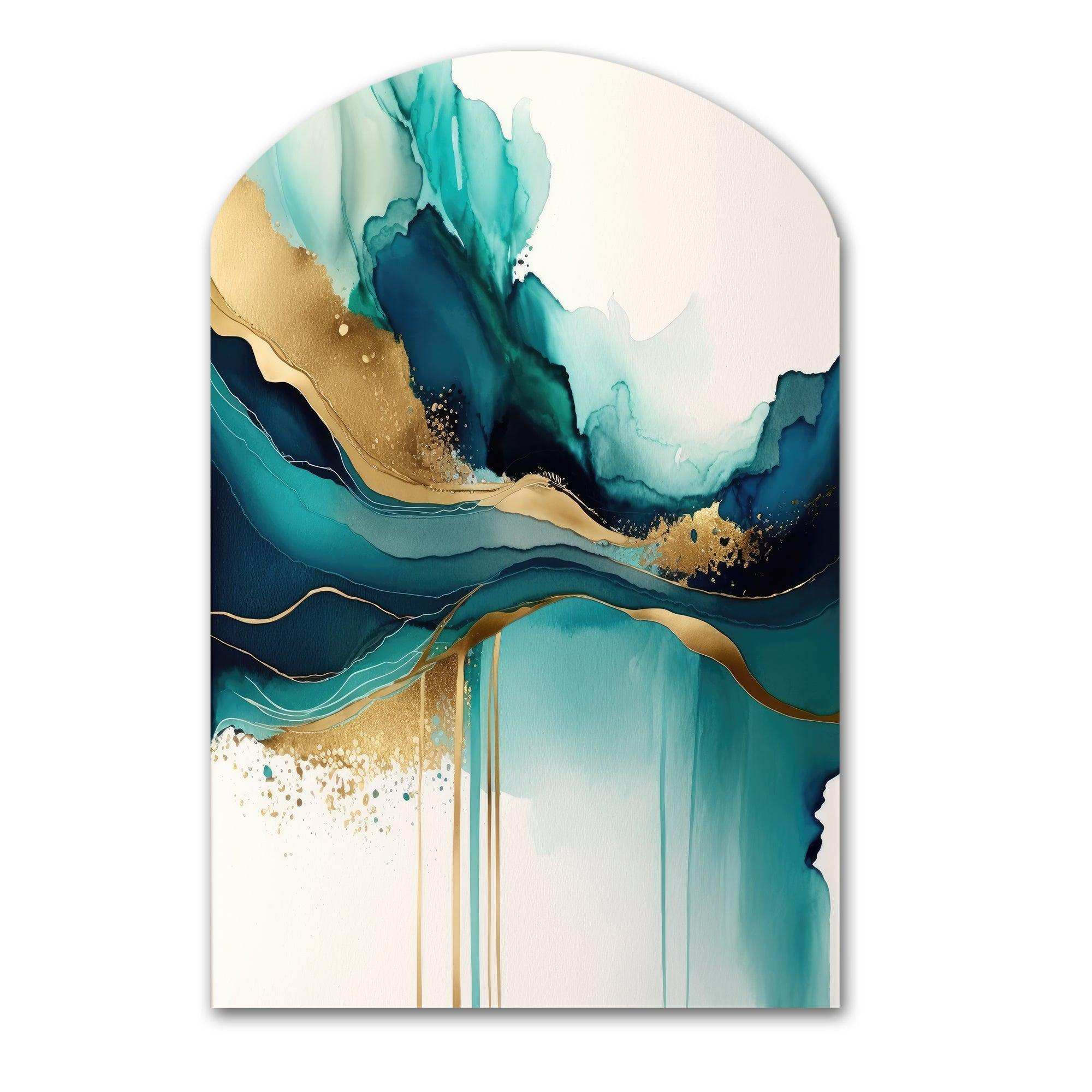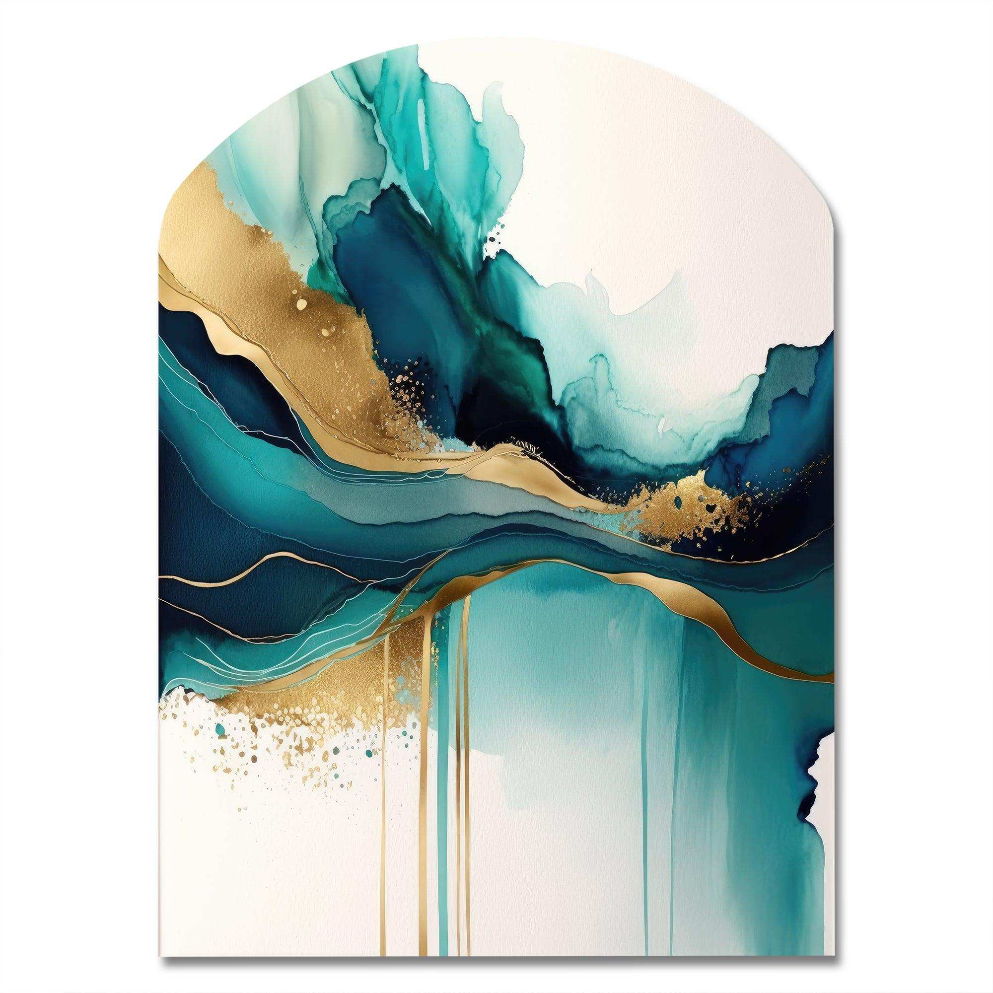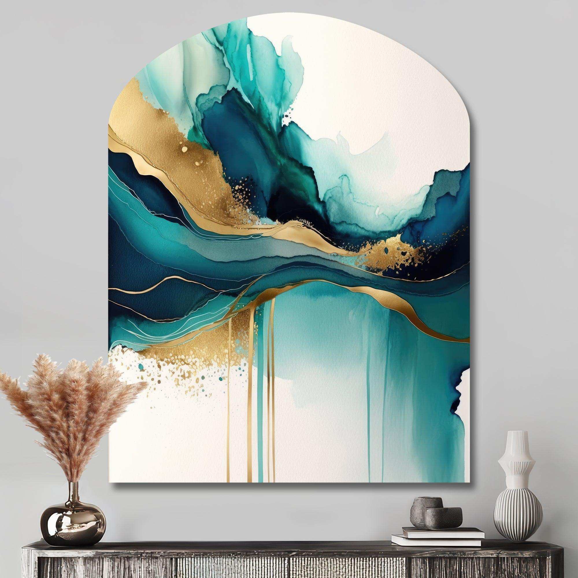 Teal And Gold Abstract Expression II - Asymmetric Metal Wall Art
