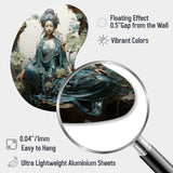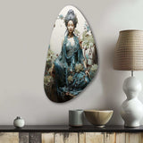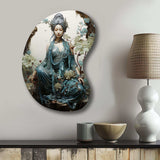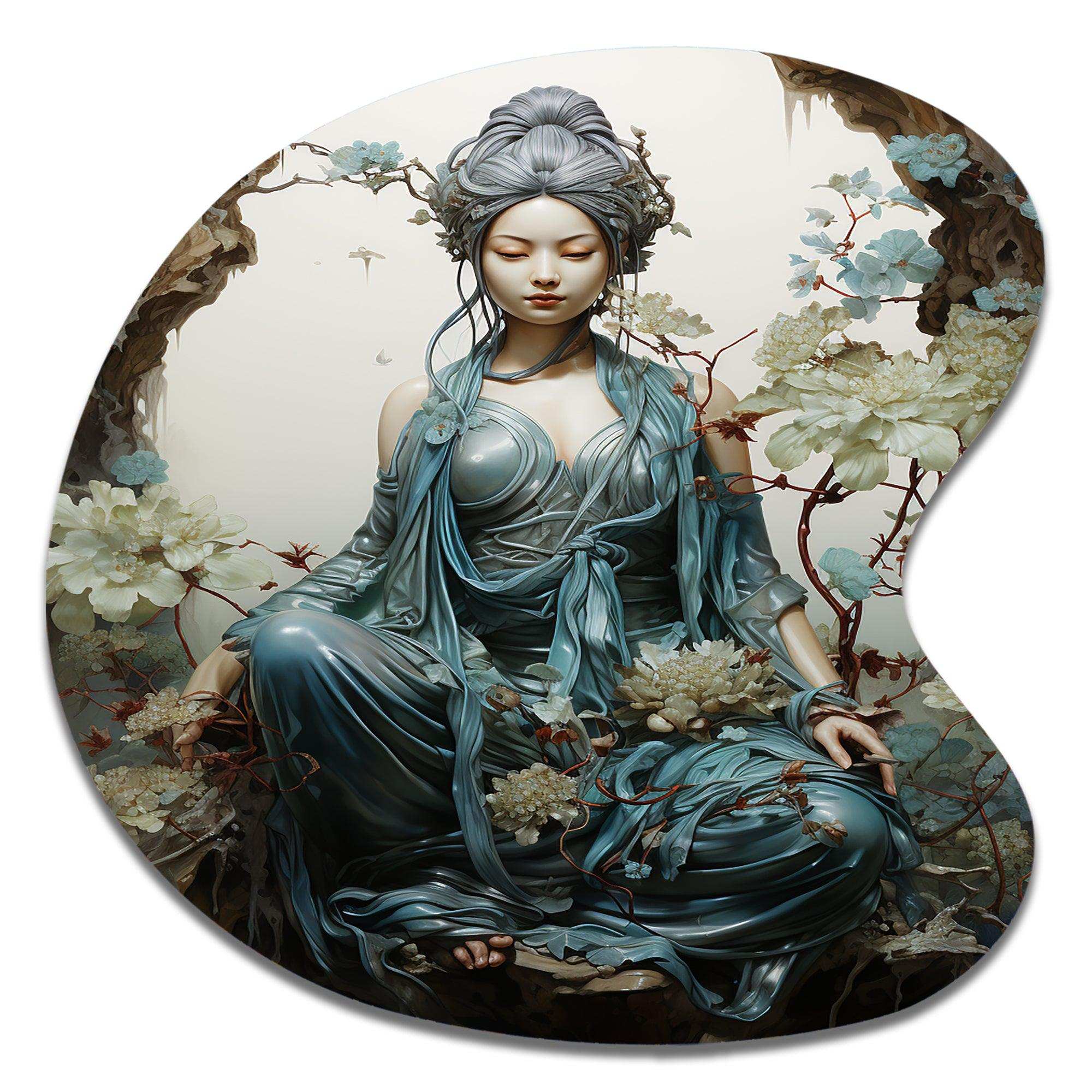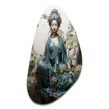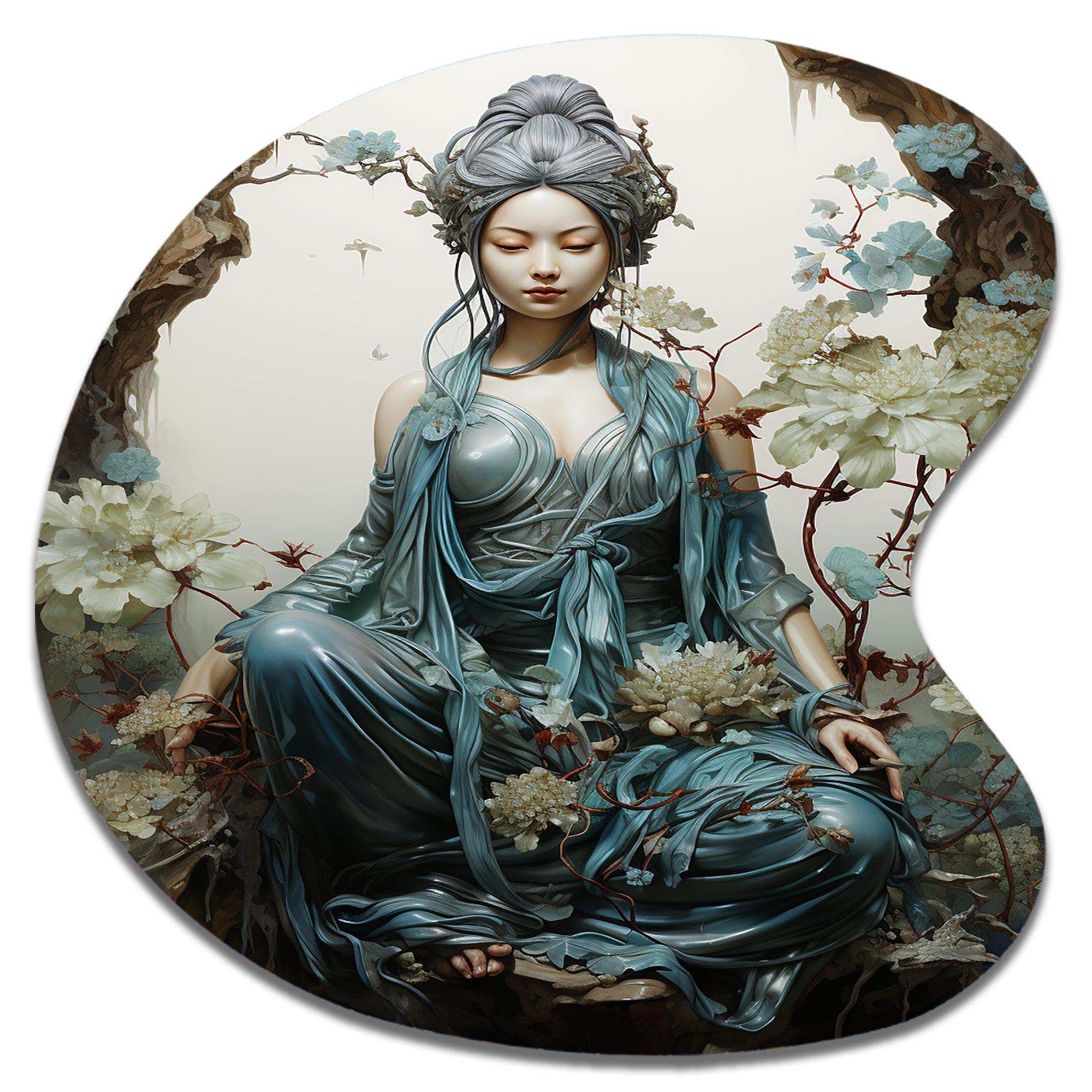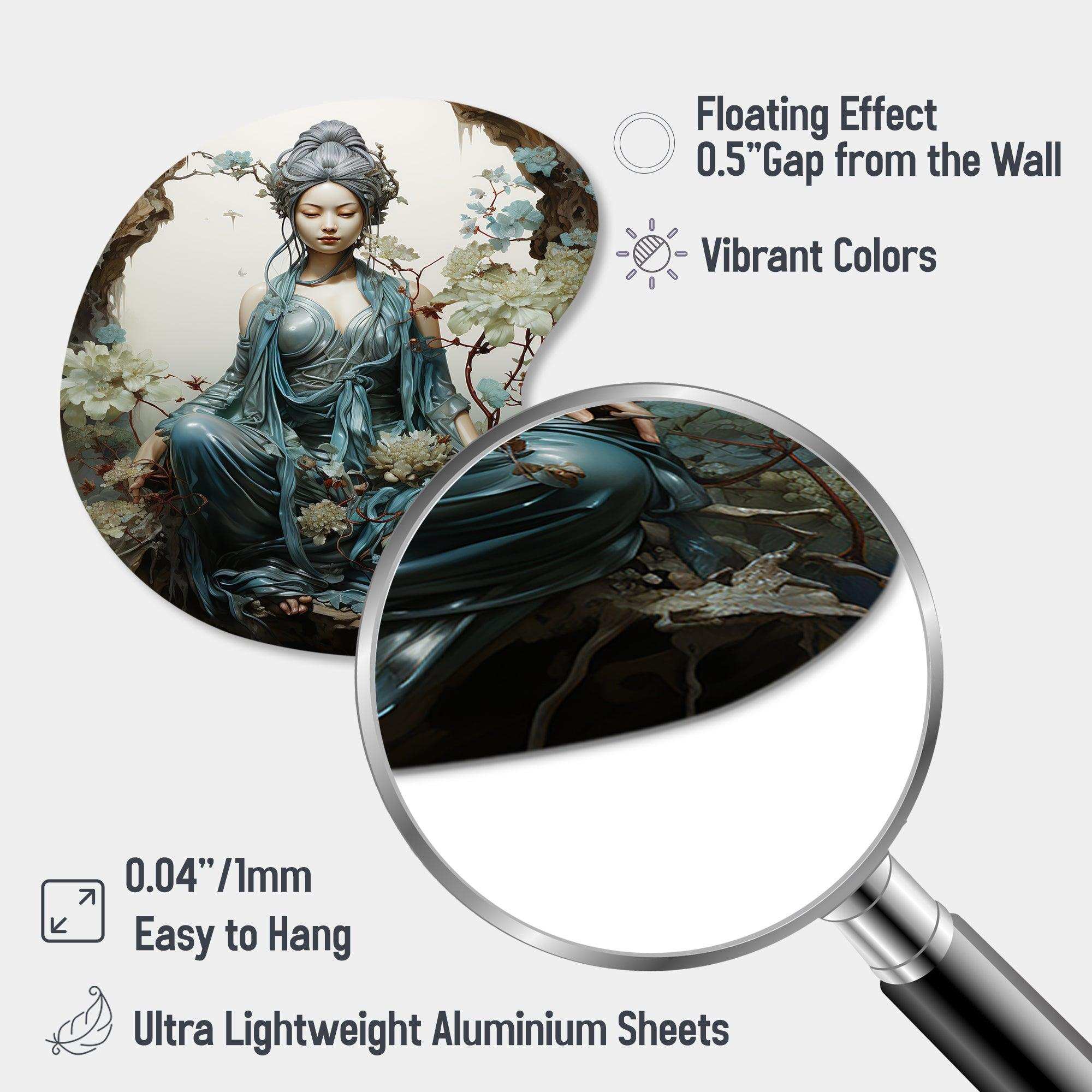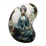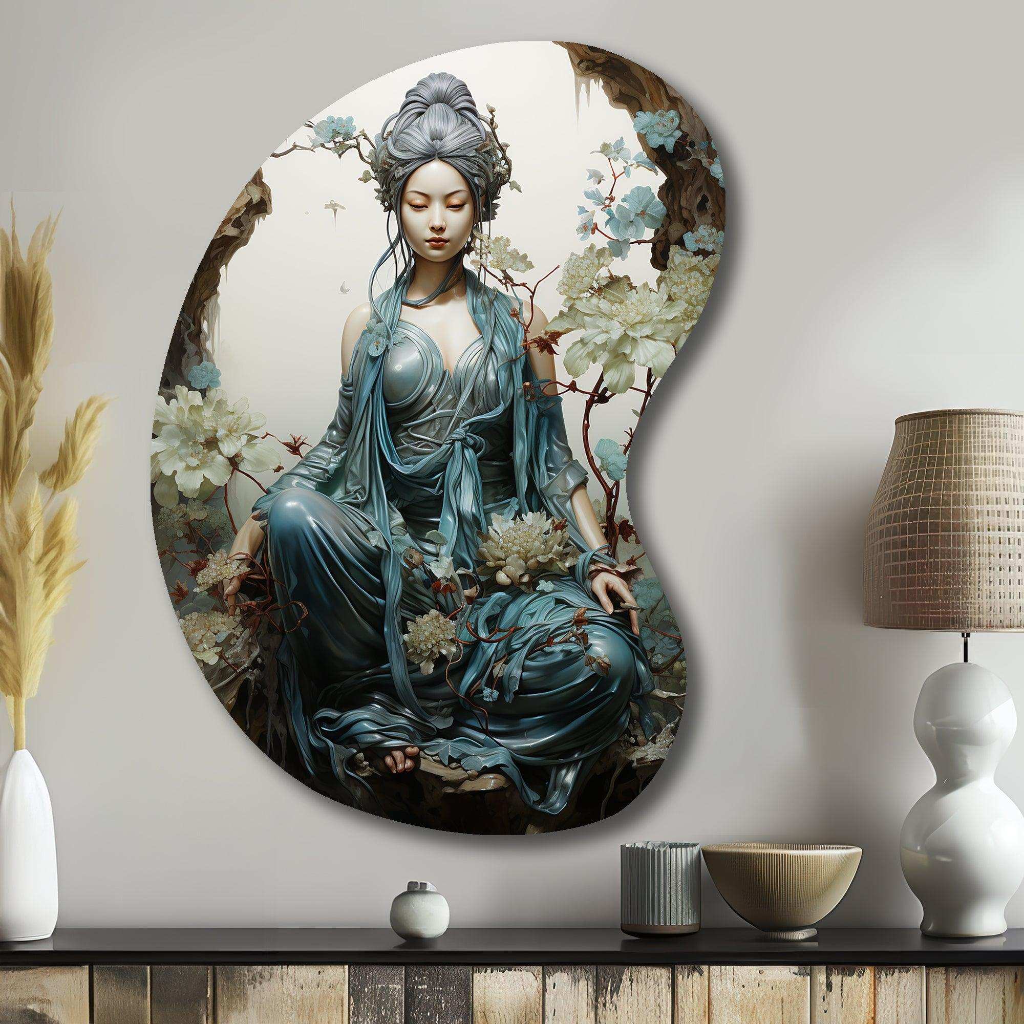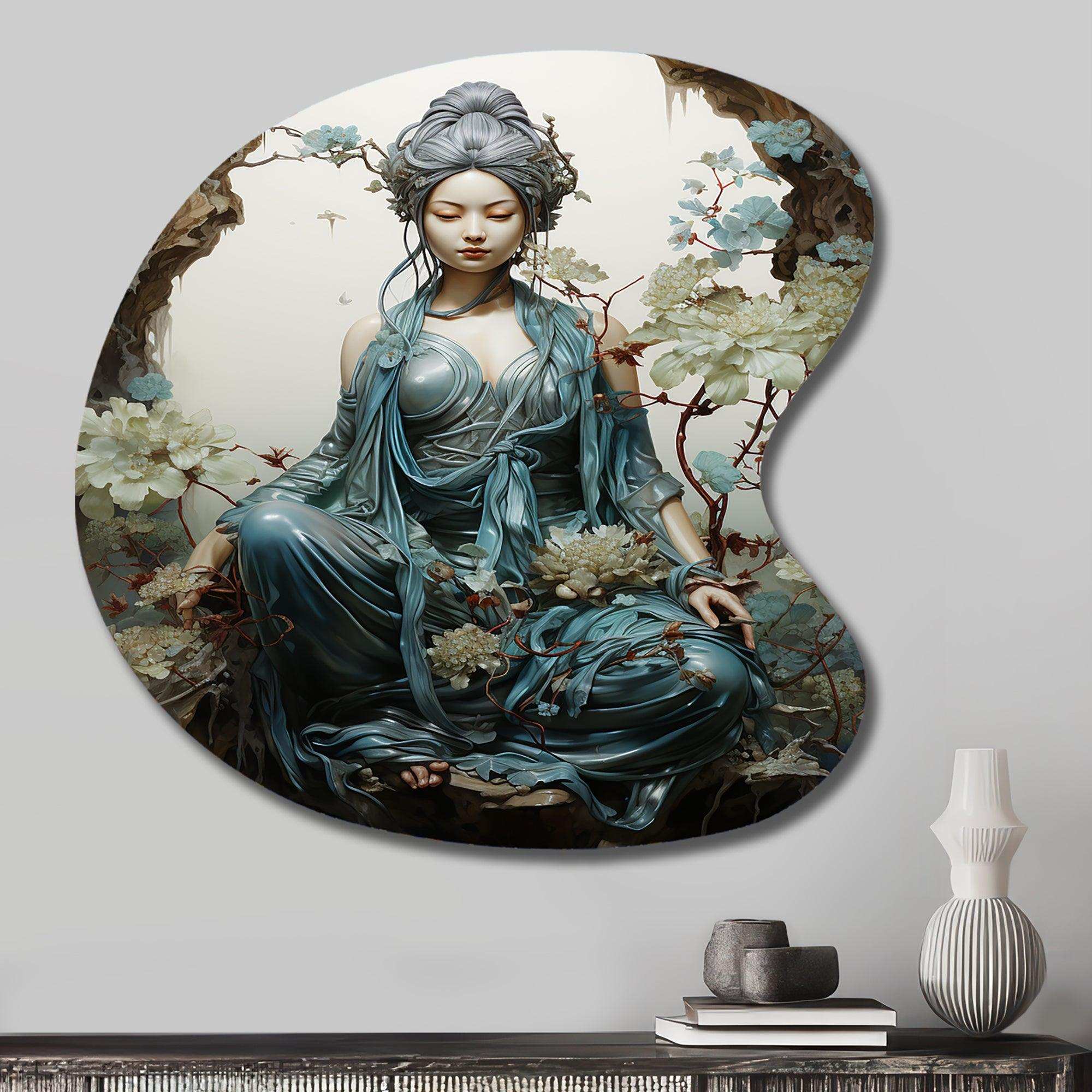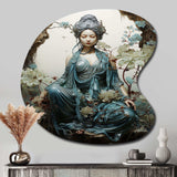 Teal Beige Buddhist Art Bodhisattva Compassion - Asymmetric Metal Wall Art