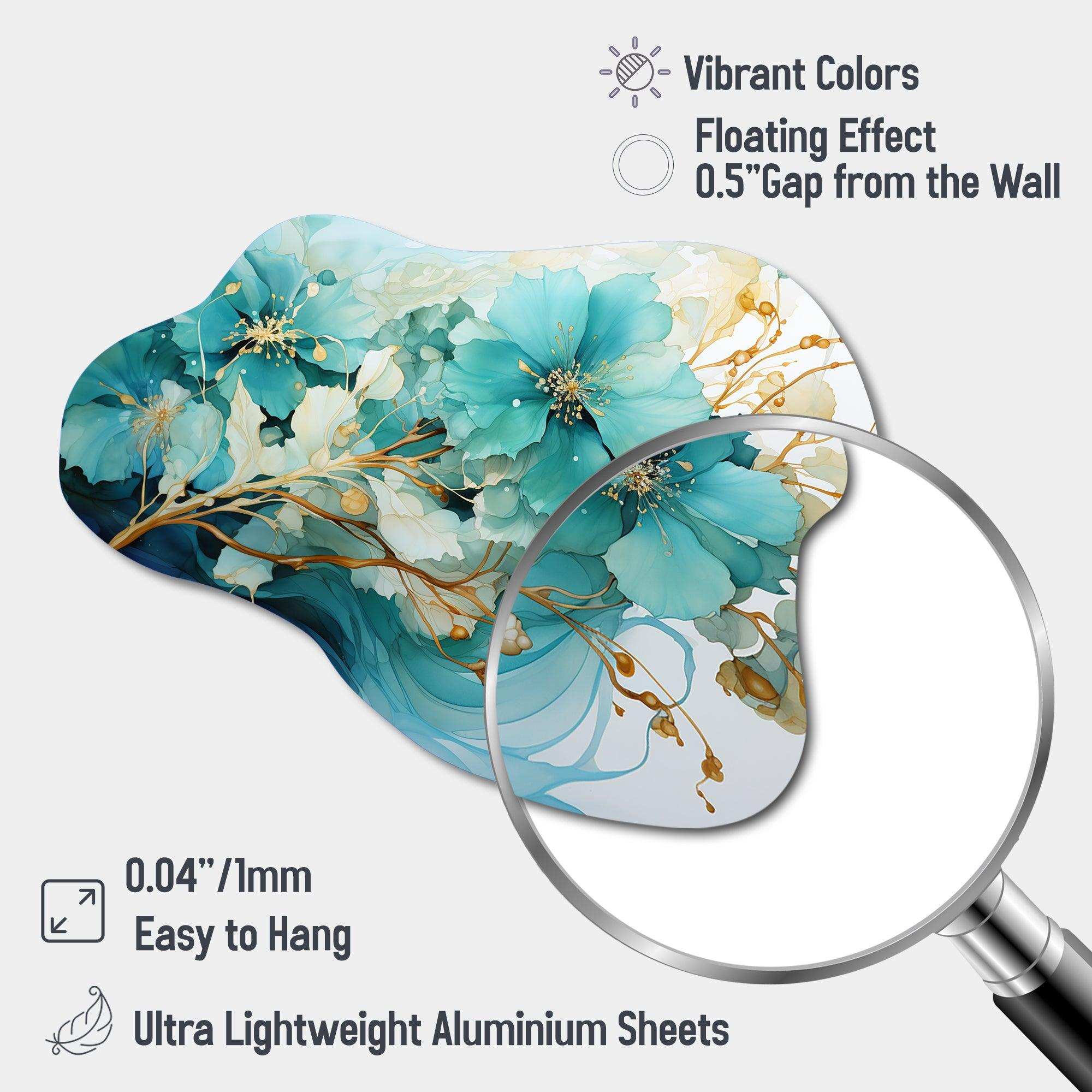 Teal Gold Abstract Fractal Mystic Mirage I - Asymmetric Metal Wall Art