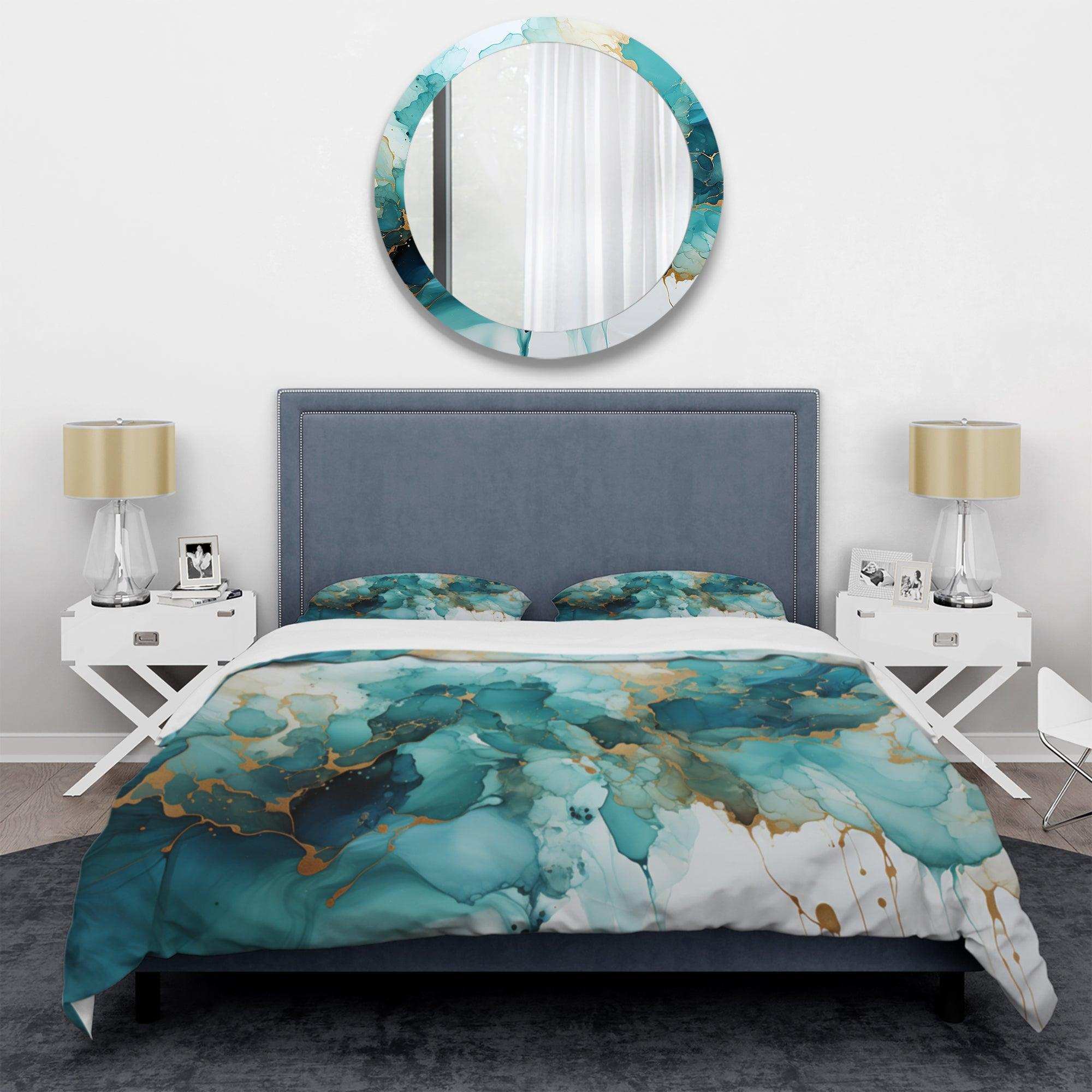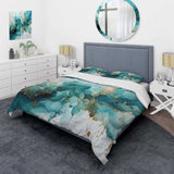 Teal Gold Abstract Fractal Mystic Mirage III - Duvet Cover Set
