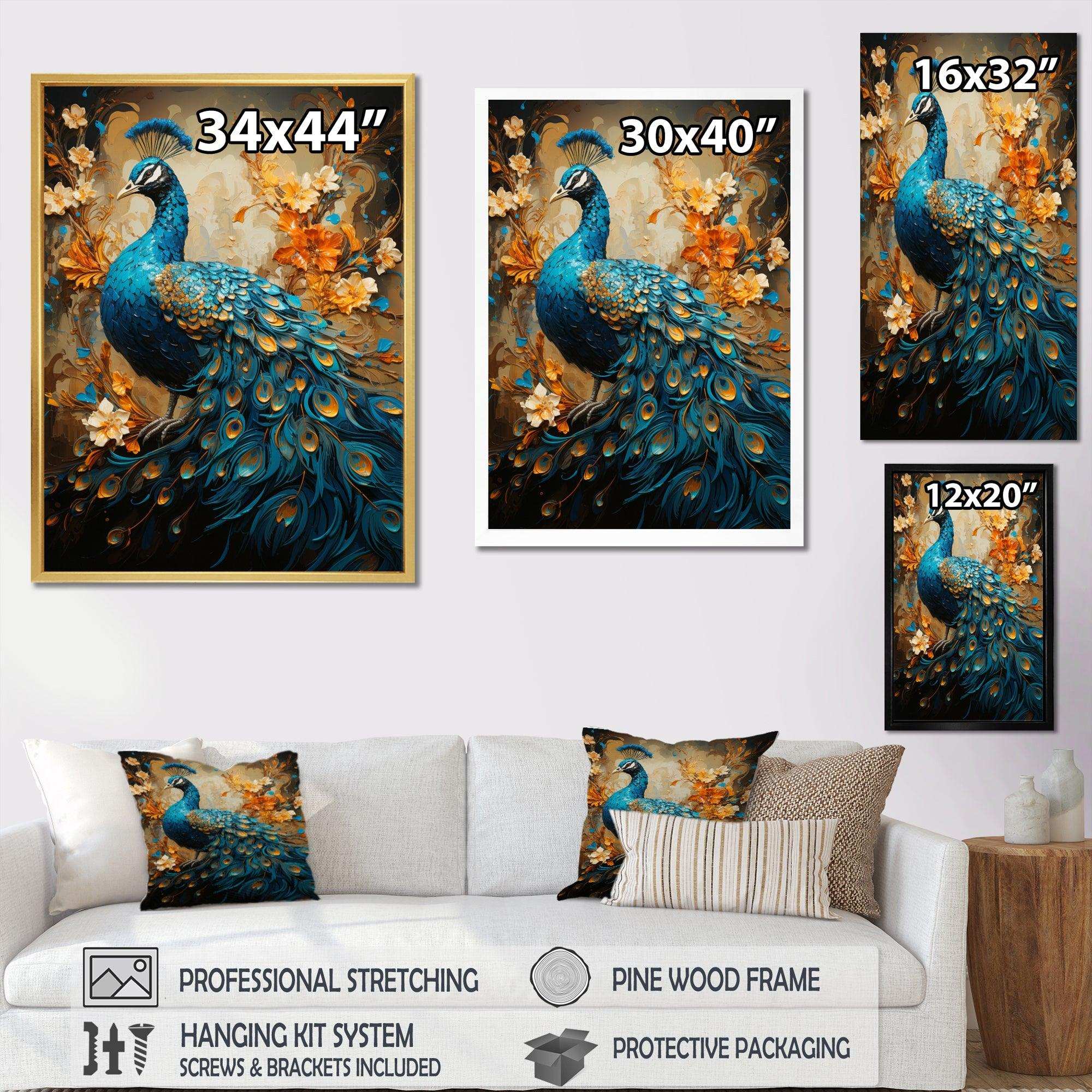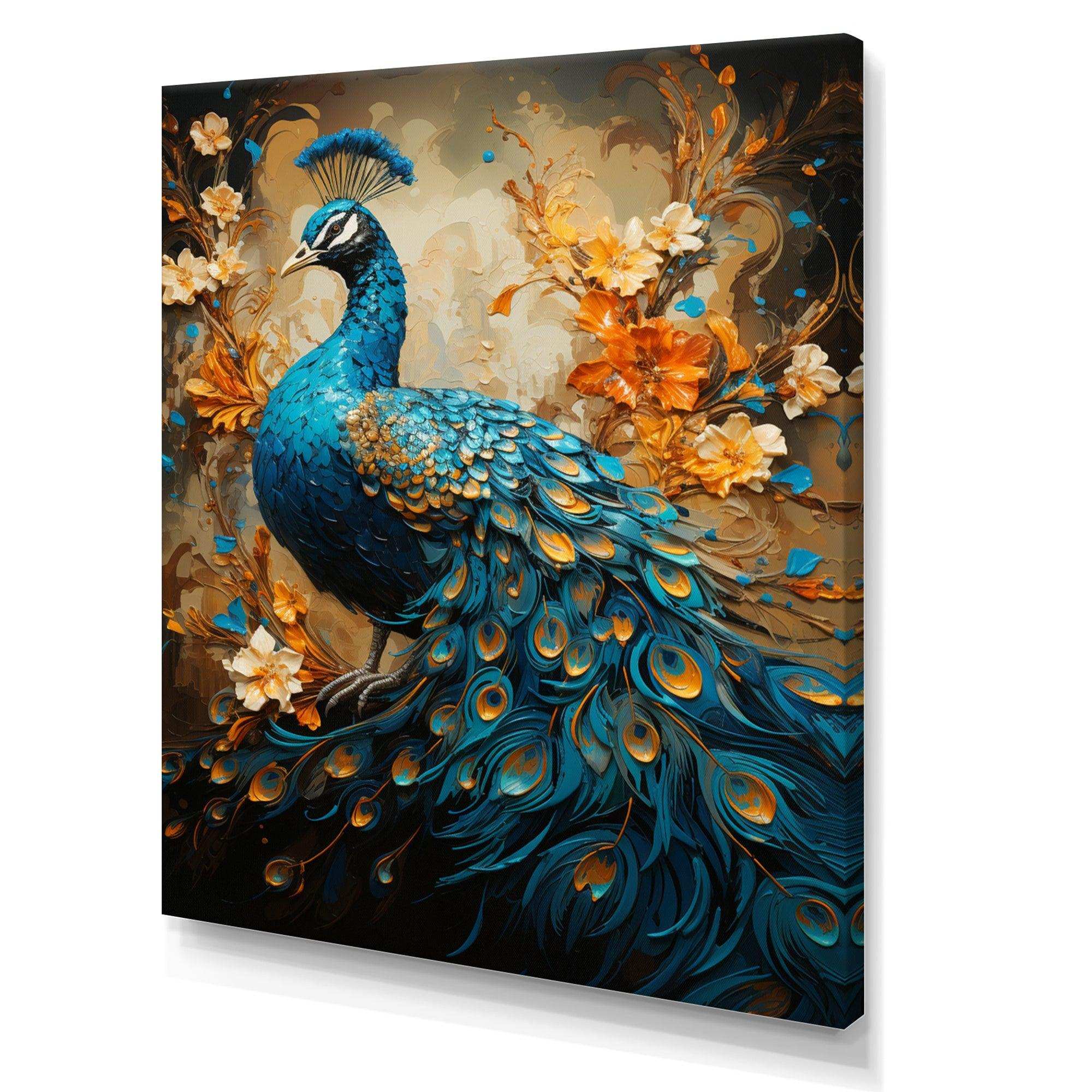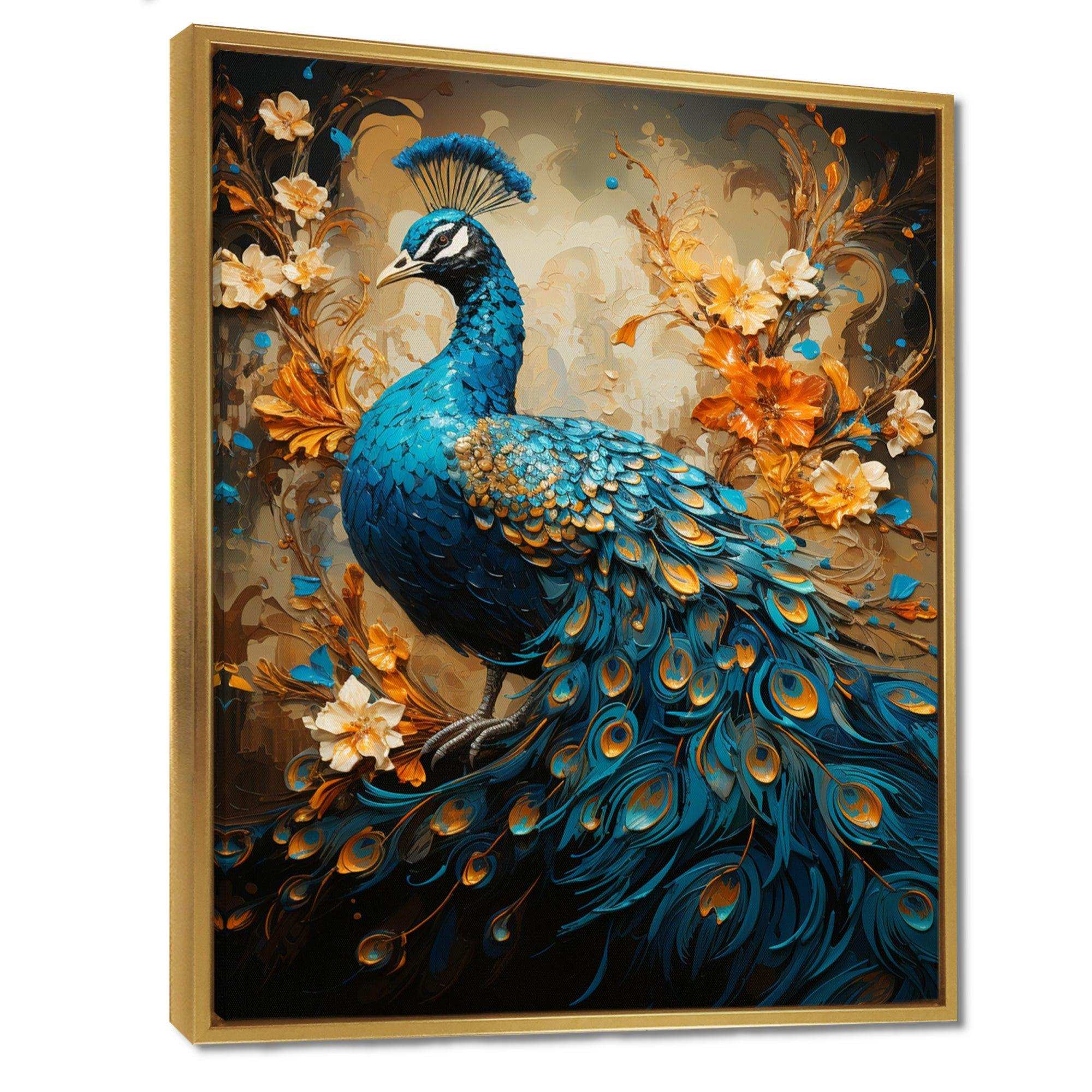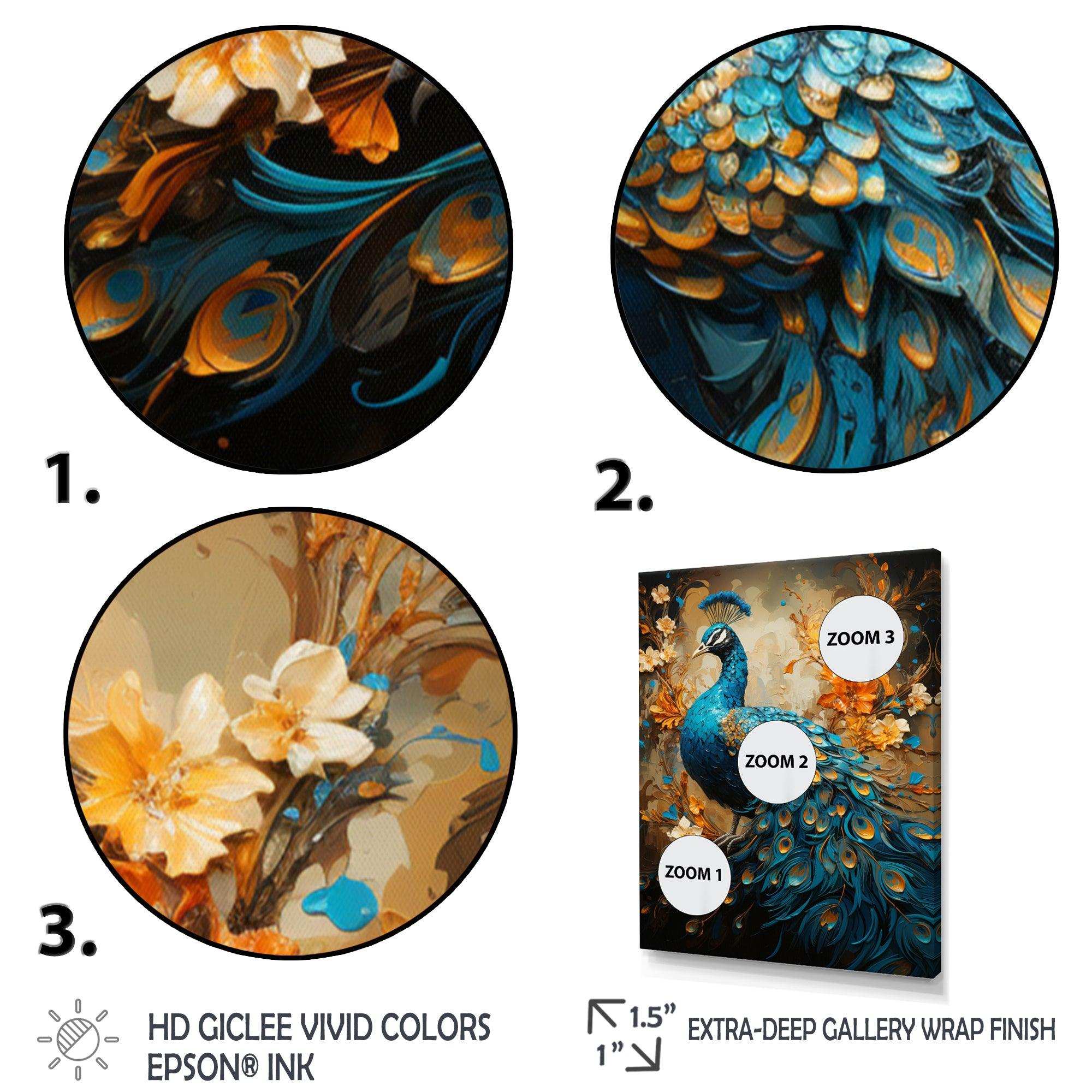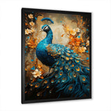 Teal Gold Emerald Peacock Drips - Animals Canvas Wall Art