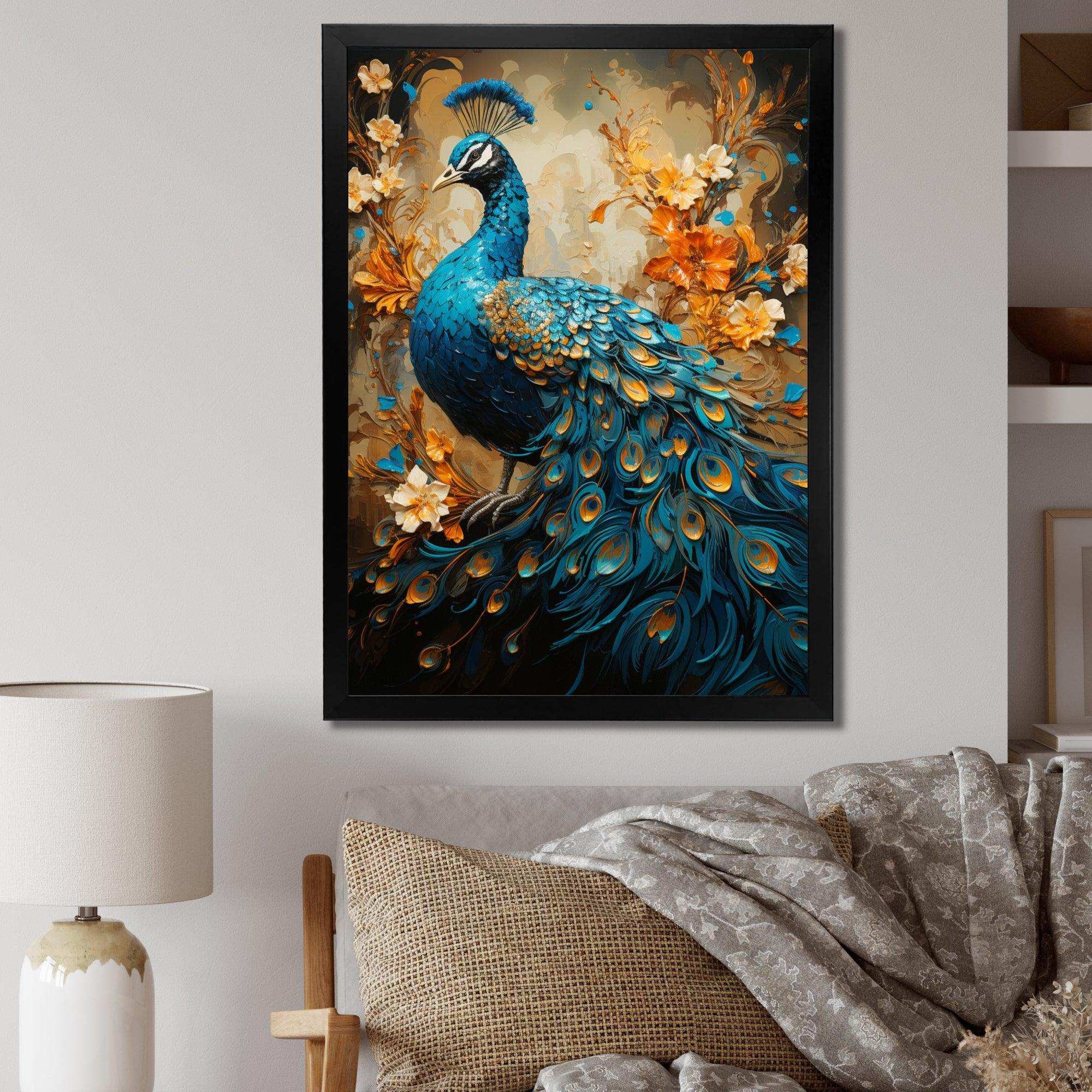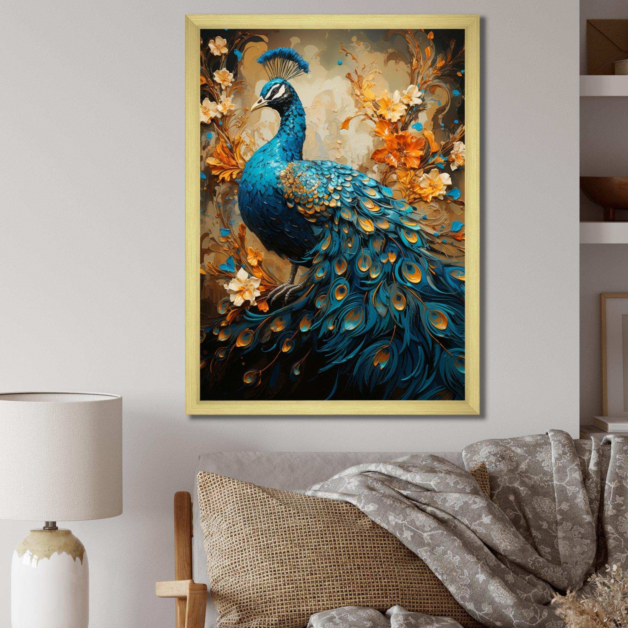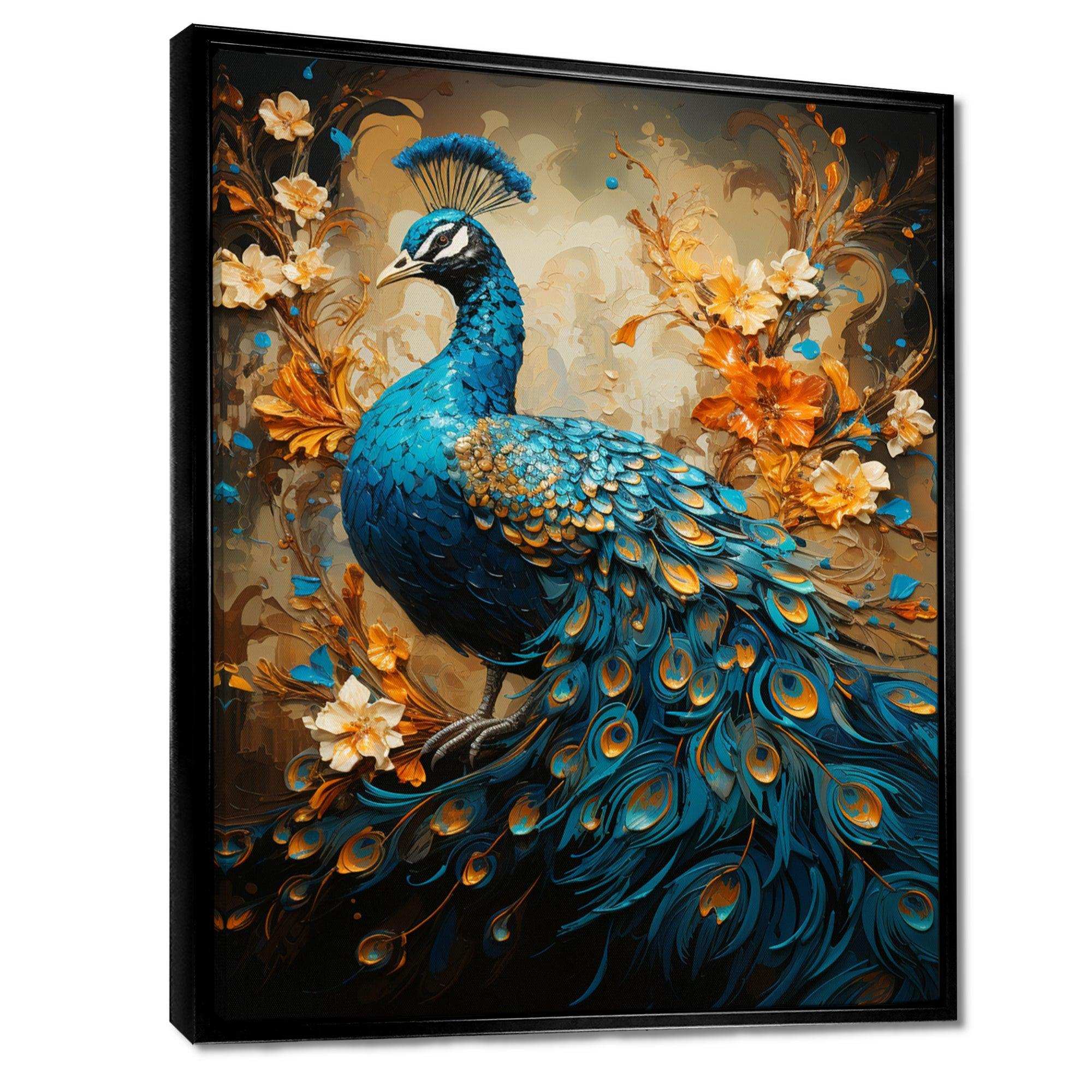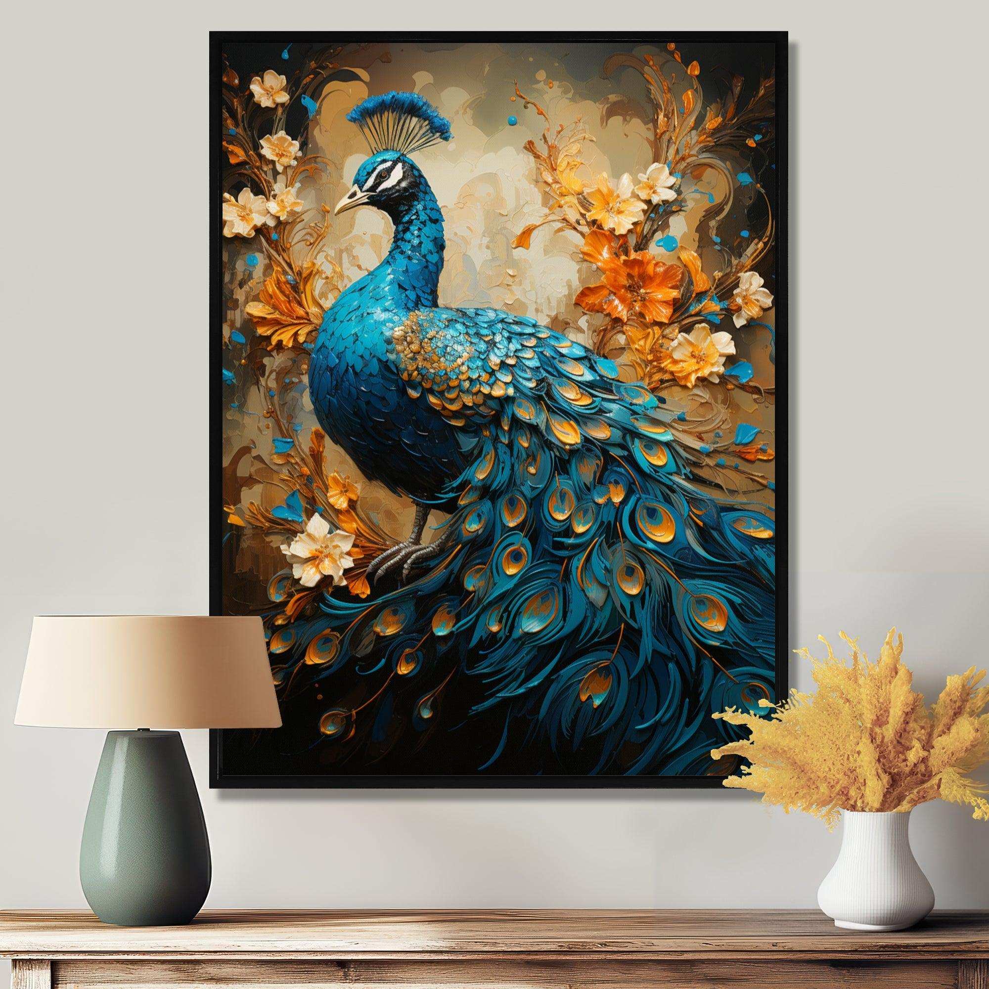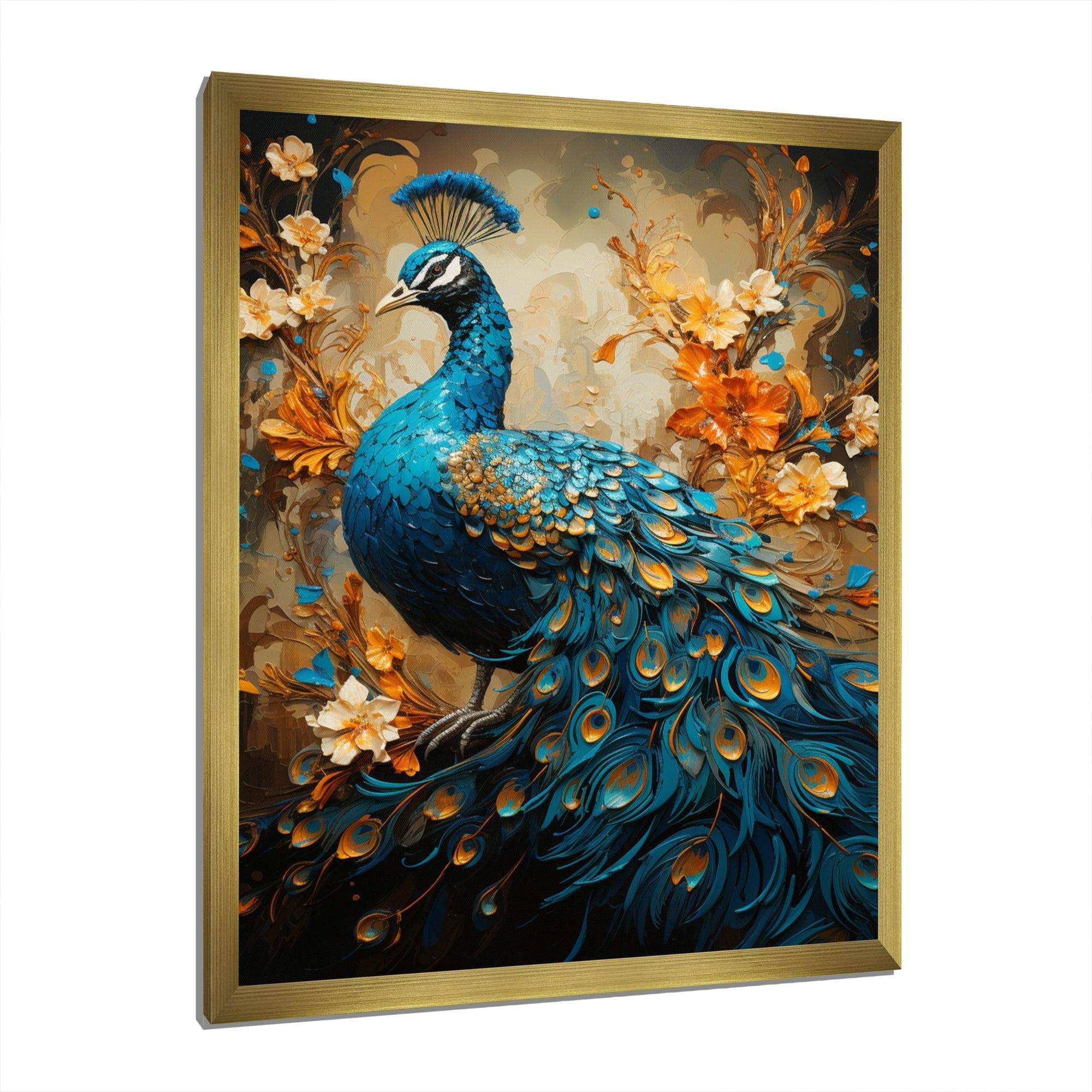 Teal Gold Emerald Peacock Drips - Animals Canvas Wall Art