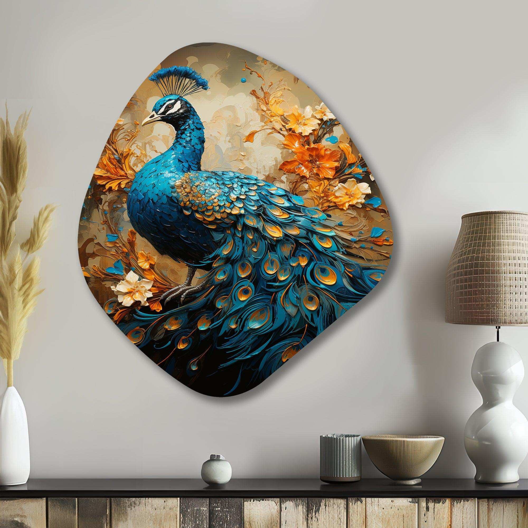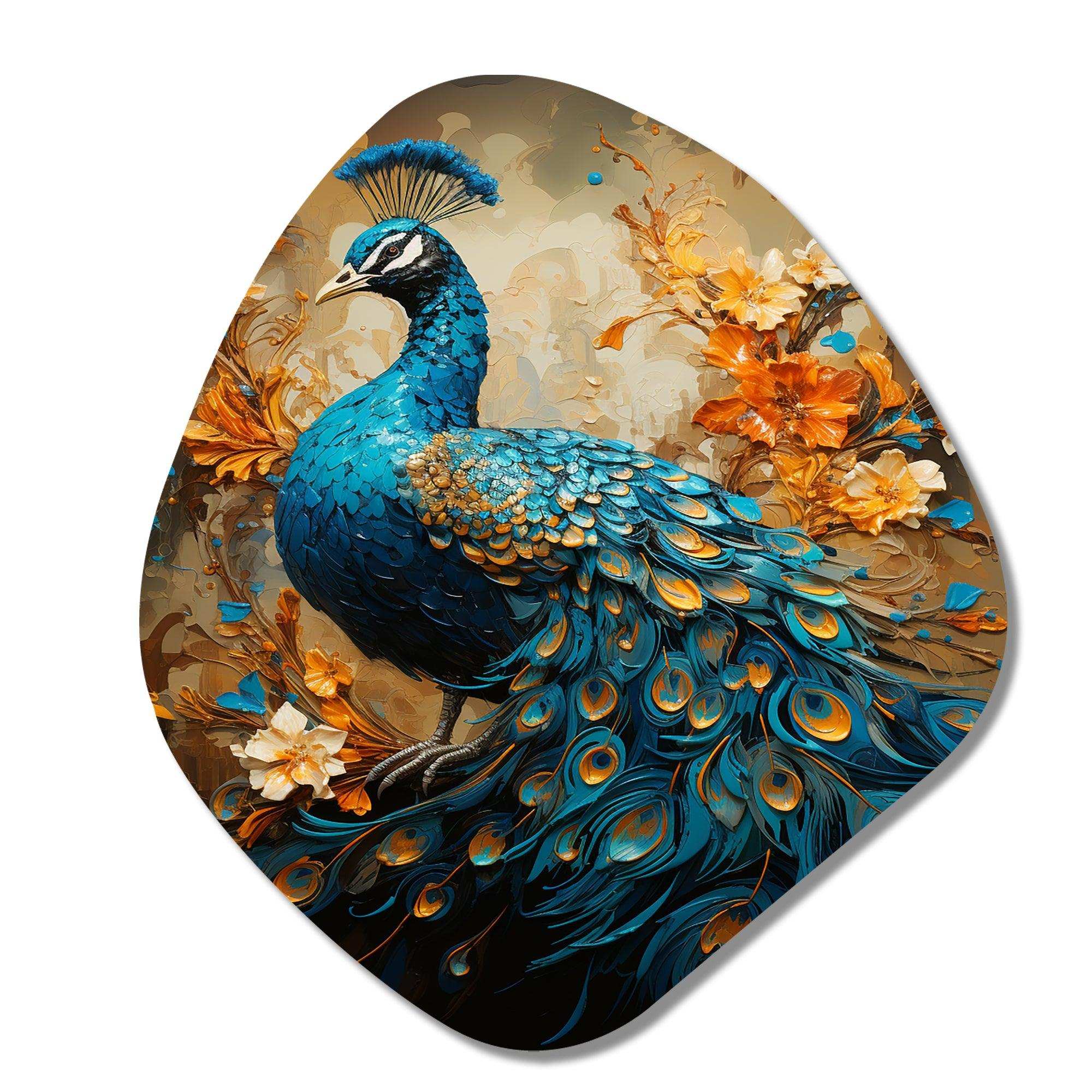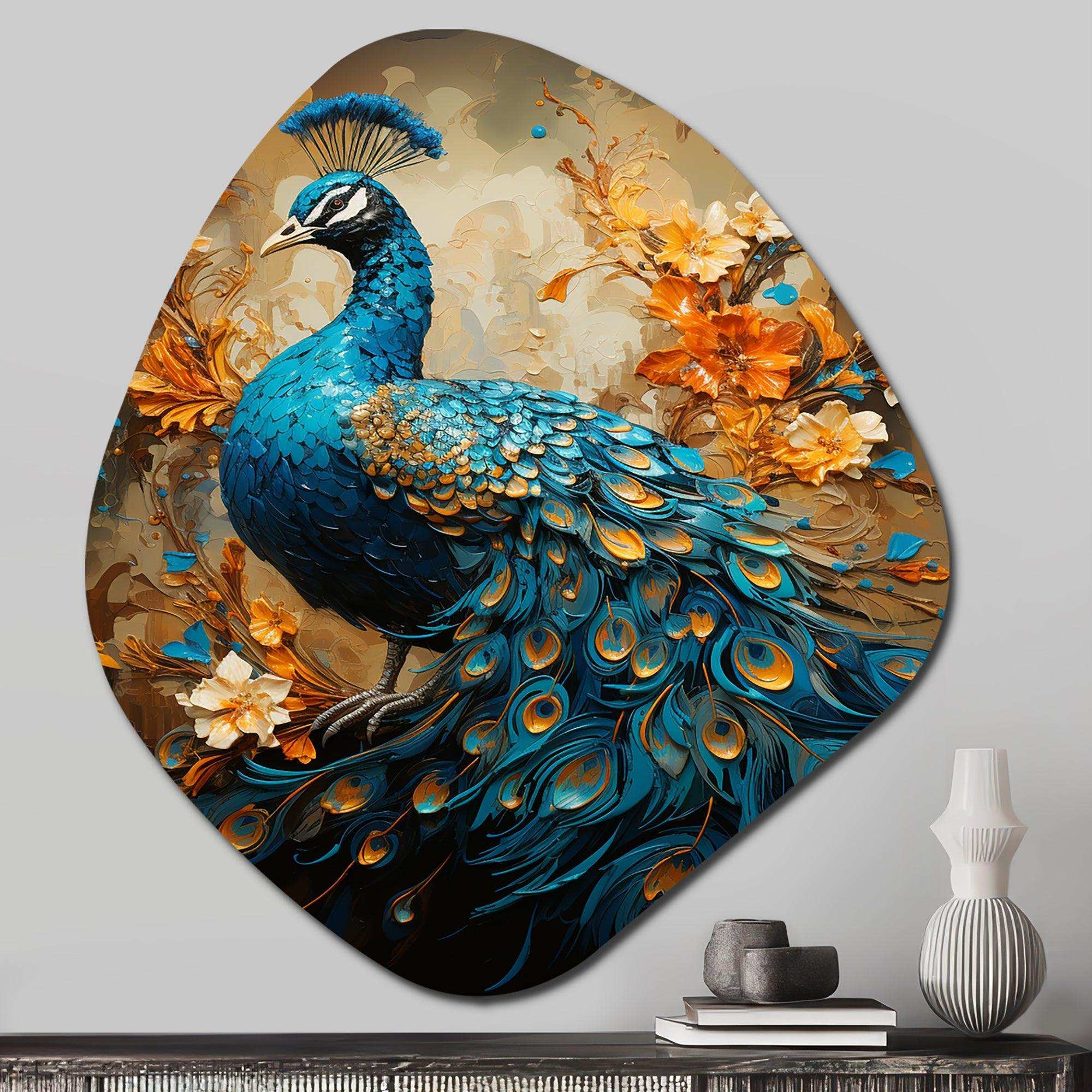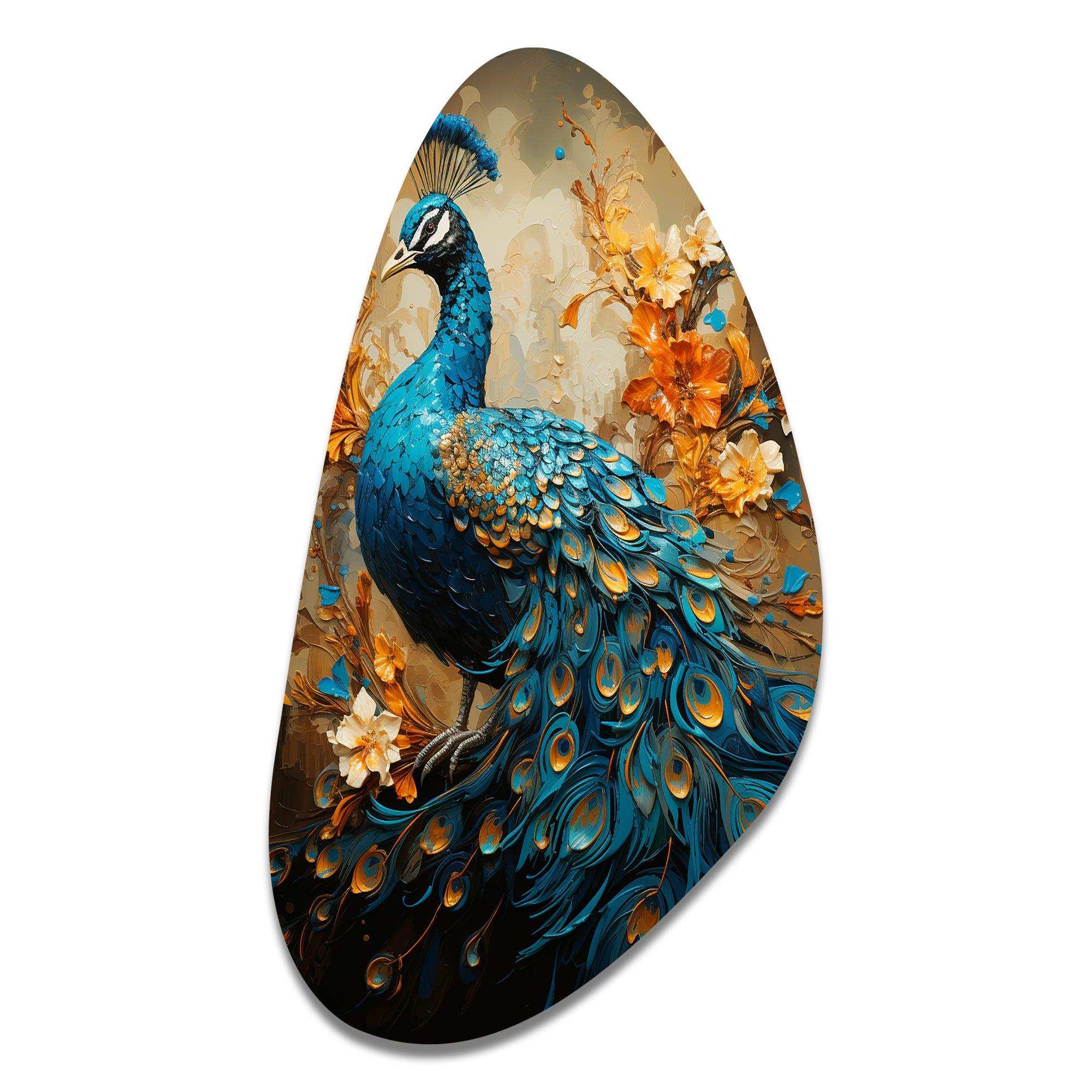 Teal Gold Emerald Peacock Drips - Asymmetric Metal Wall Art