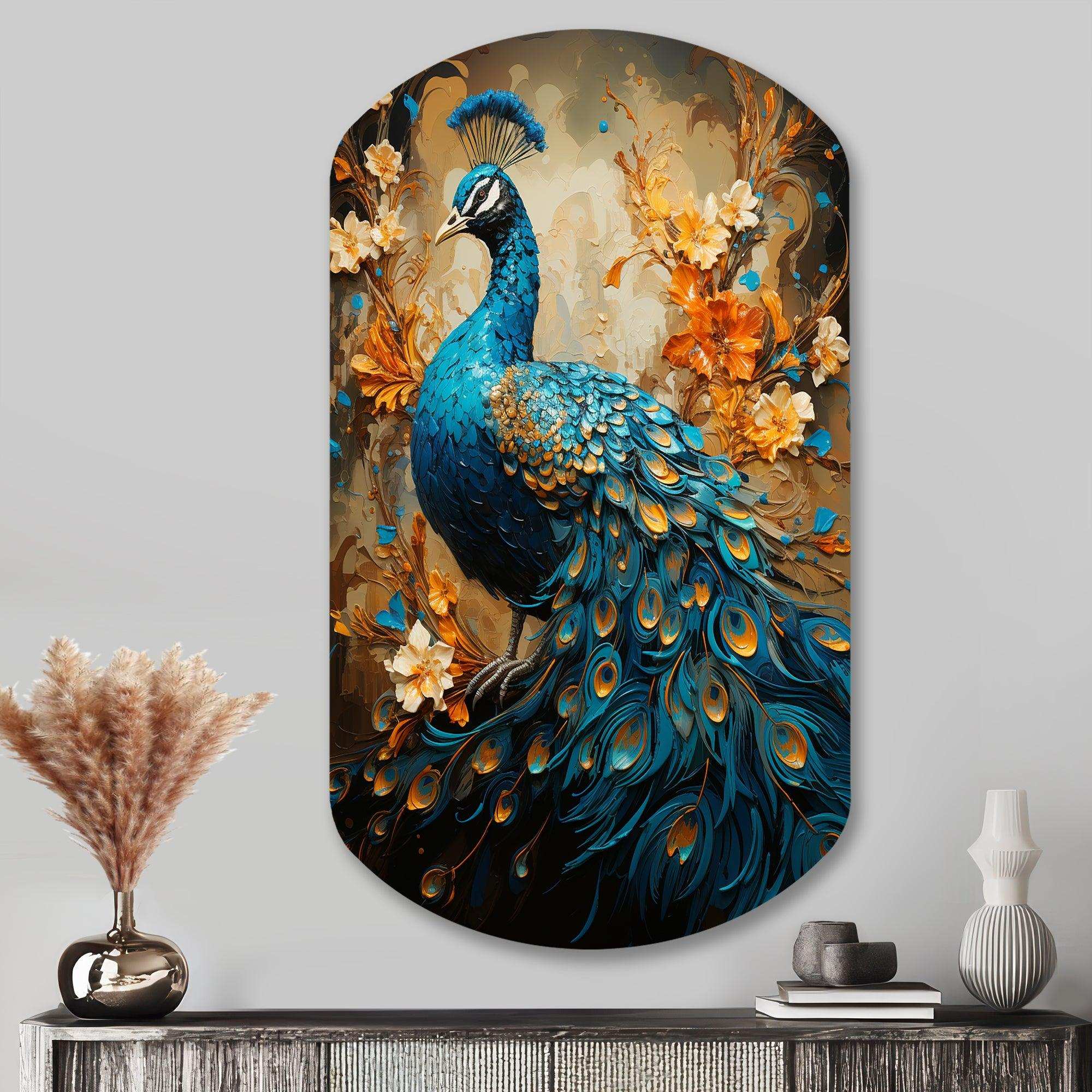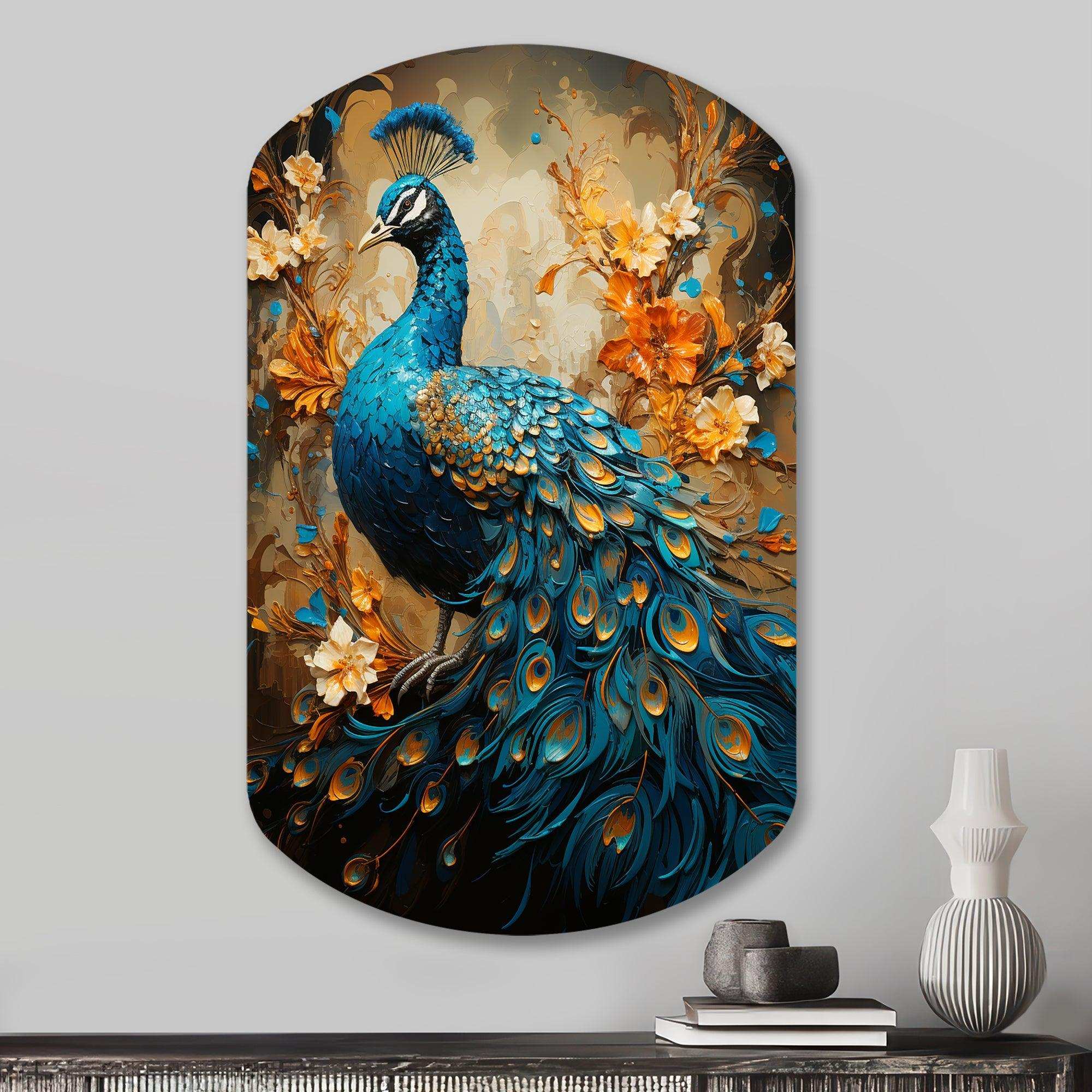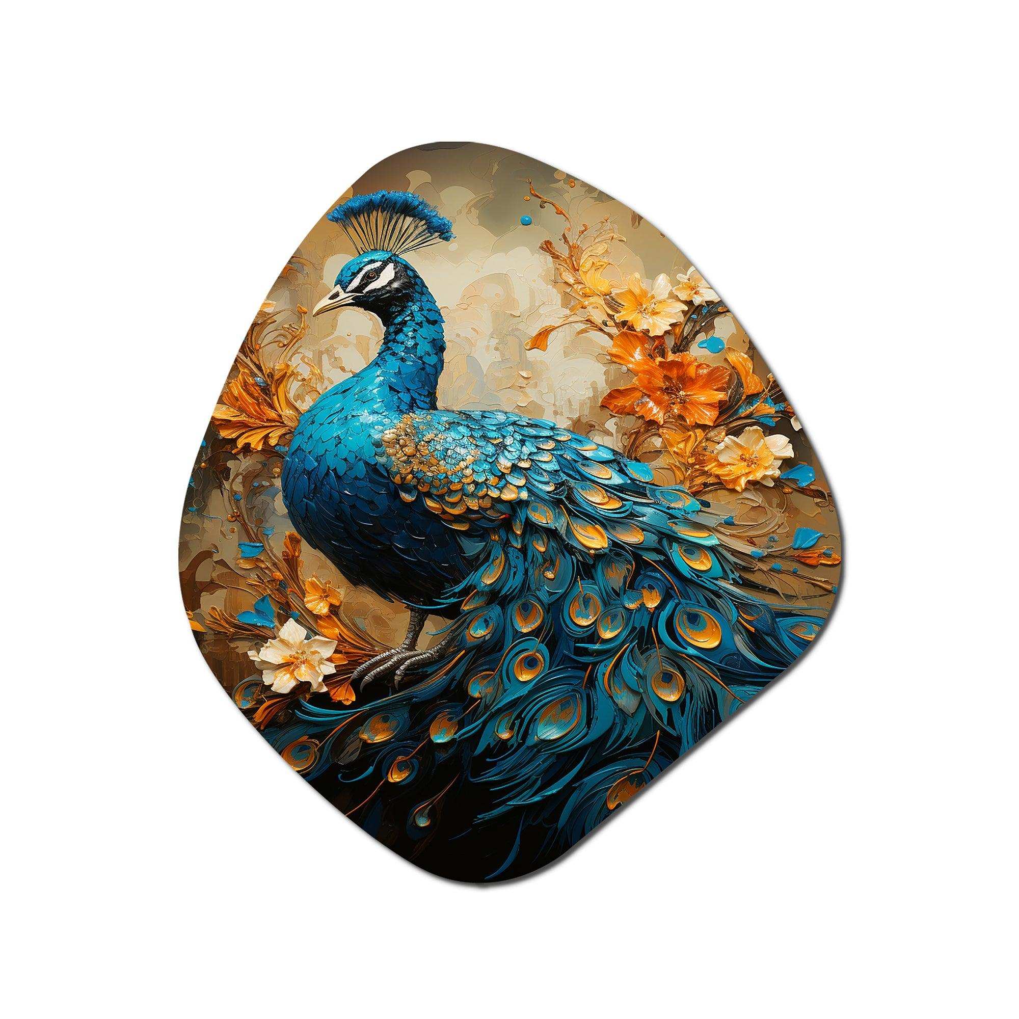 Teal Gold Emerald Peacock Drips - Asymmetric Metal Wall Art