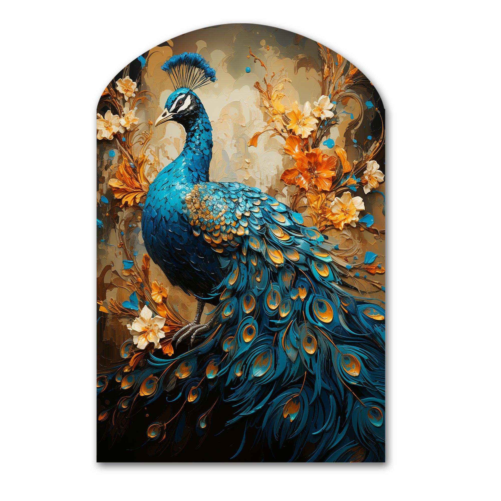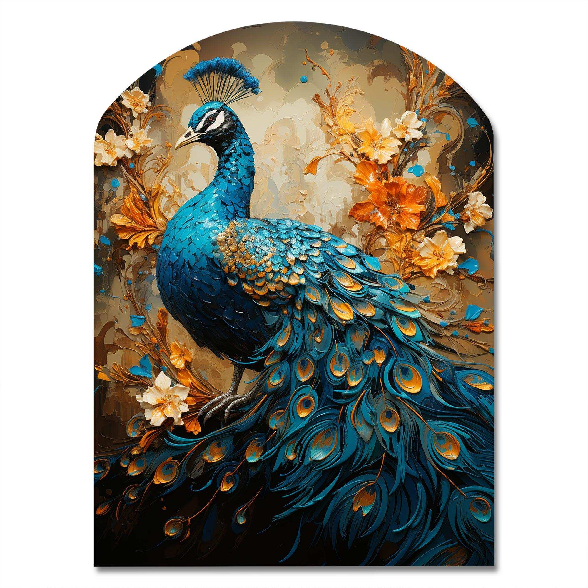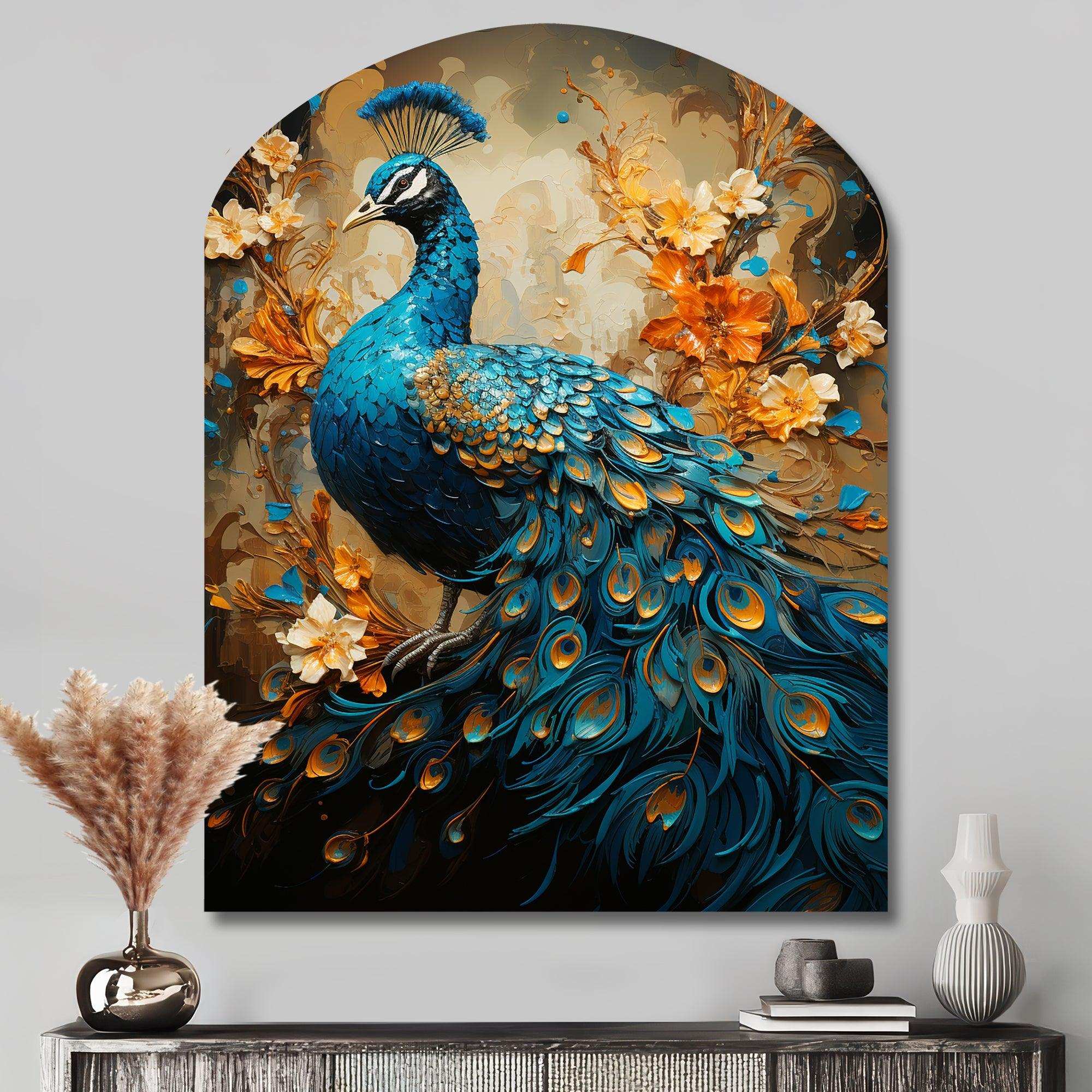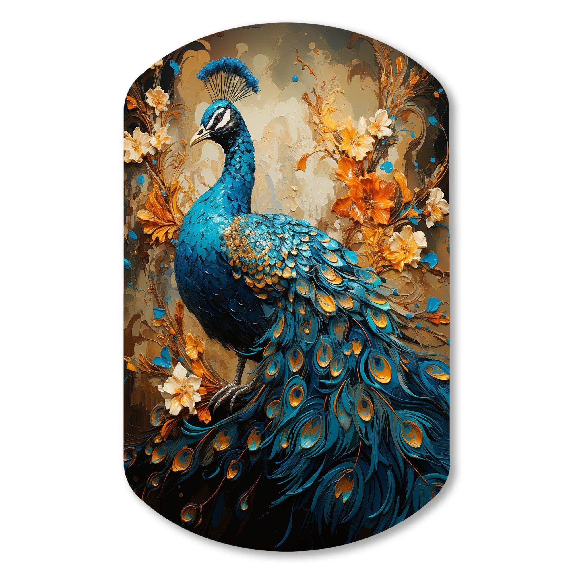 Teal Gold Emerald Peacock Drips - Asymmetric Metal Wall Art
