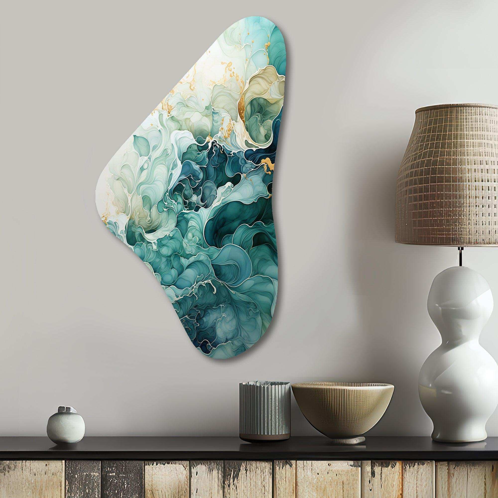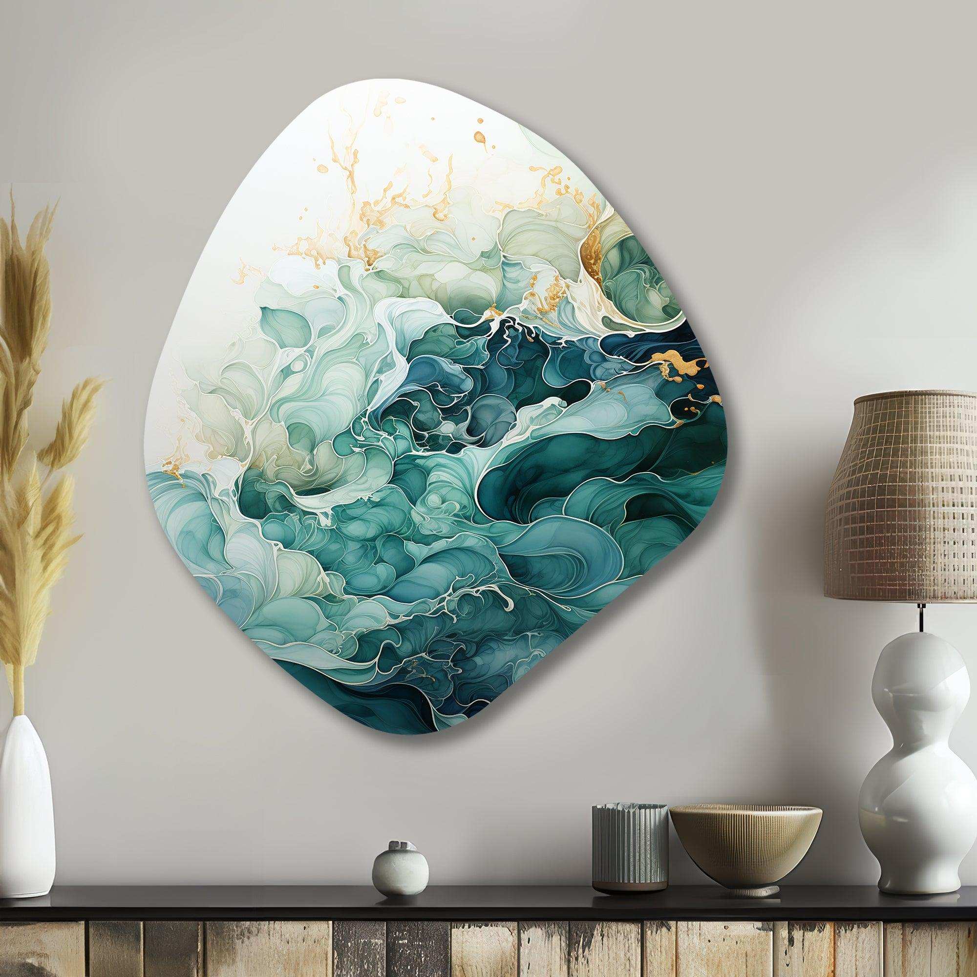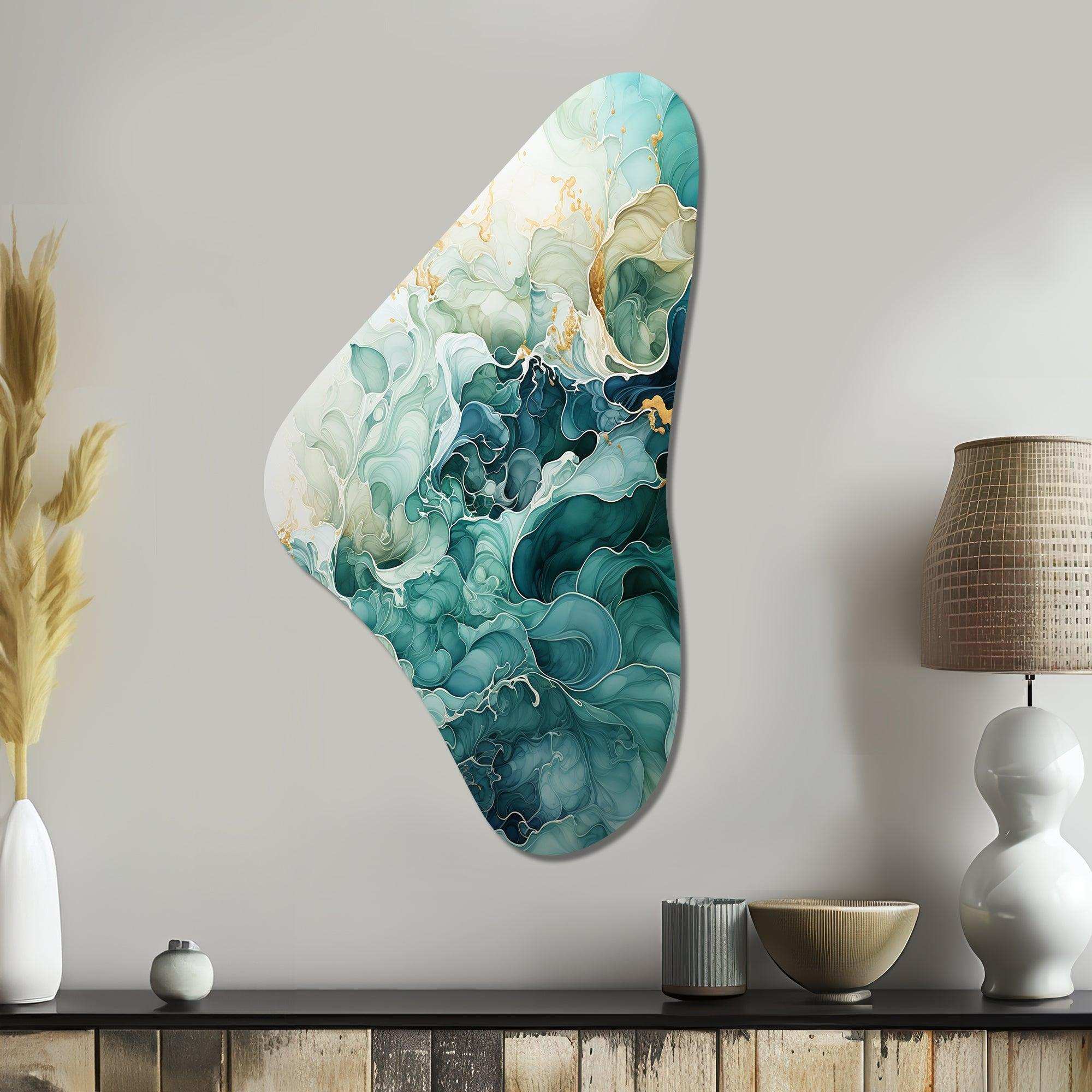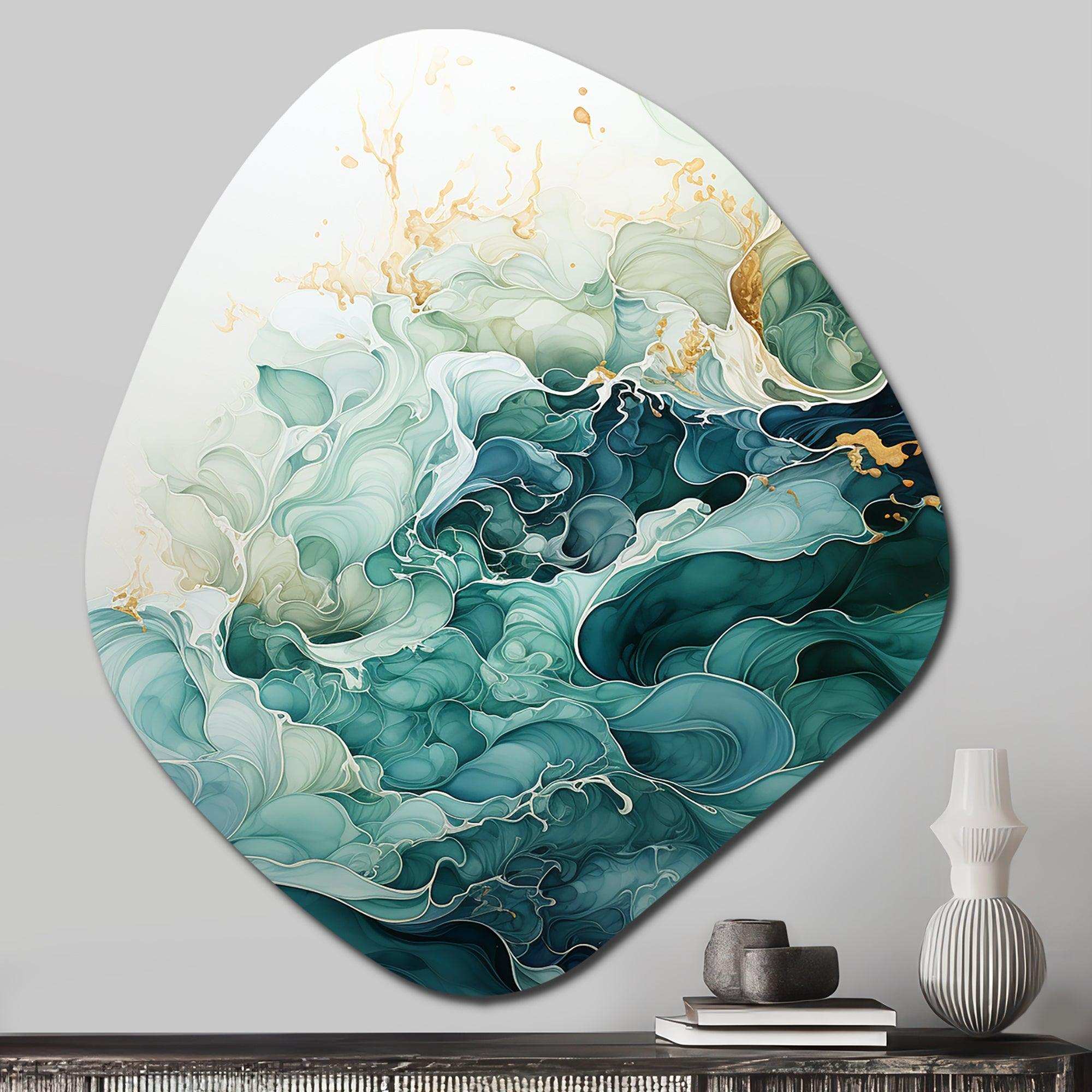 Teal Gold Minimalism Serenity In Motion - Asymmetric Metal Wall Art