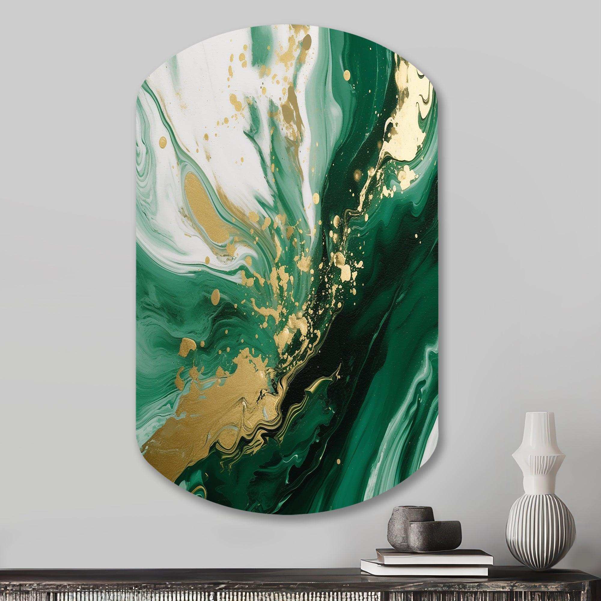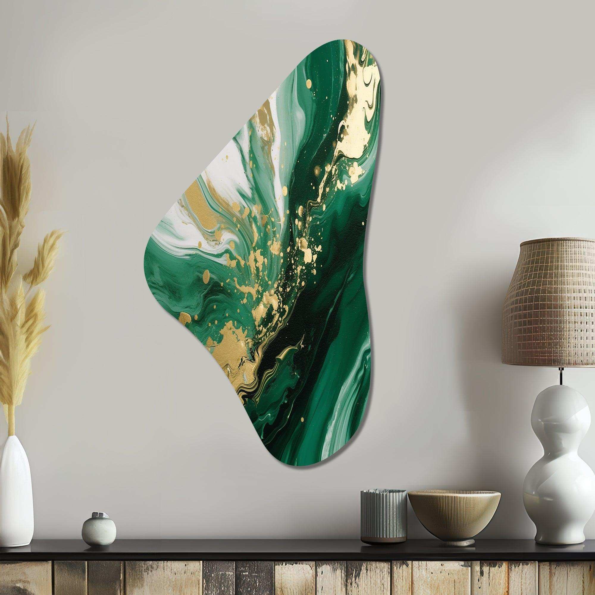 Green and Gold Serene Cascade III - Asymmetric Metal Wall Art
