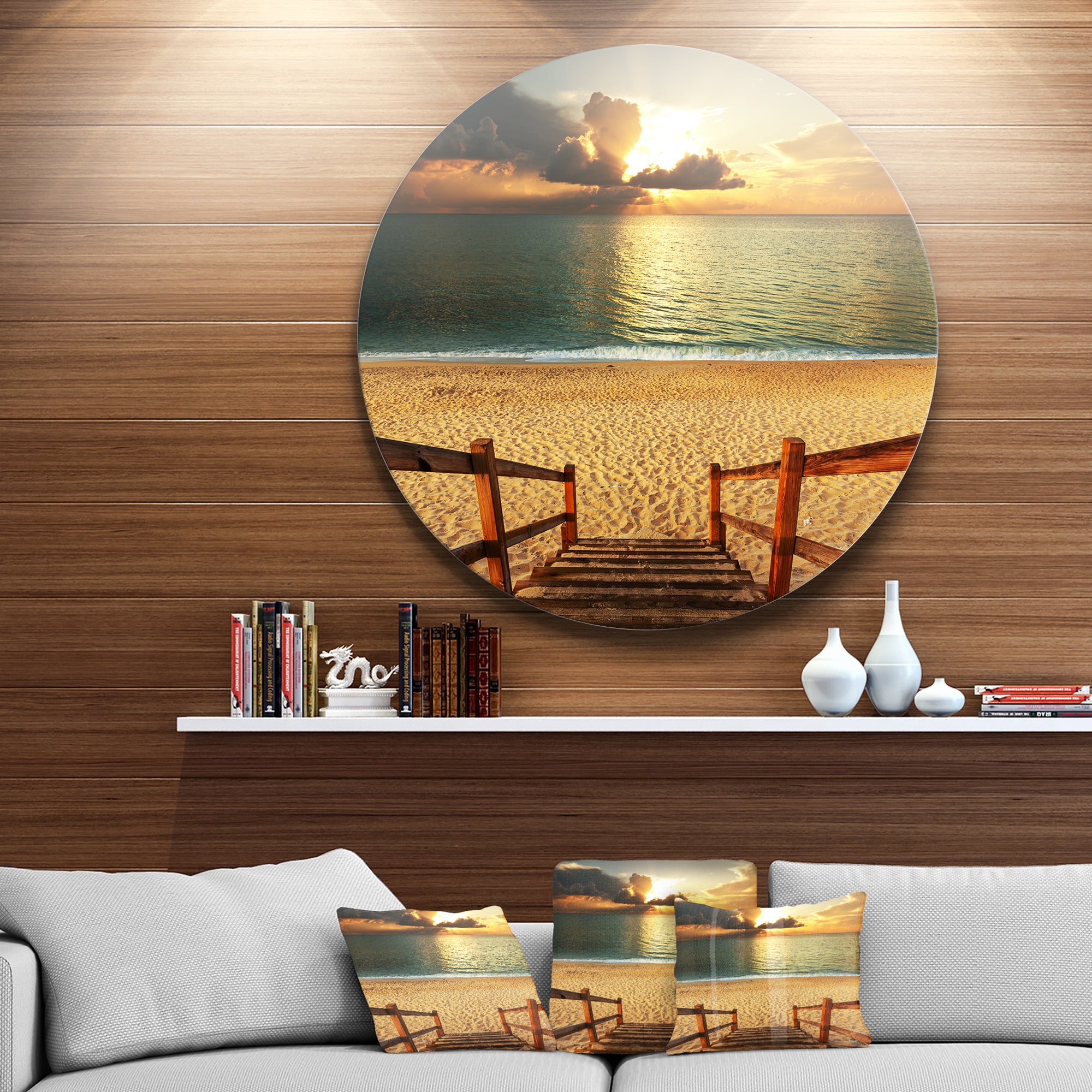 Boardwalk Stair into Sandy Beach' Bridge Metal Circle Wall Art