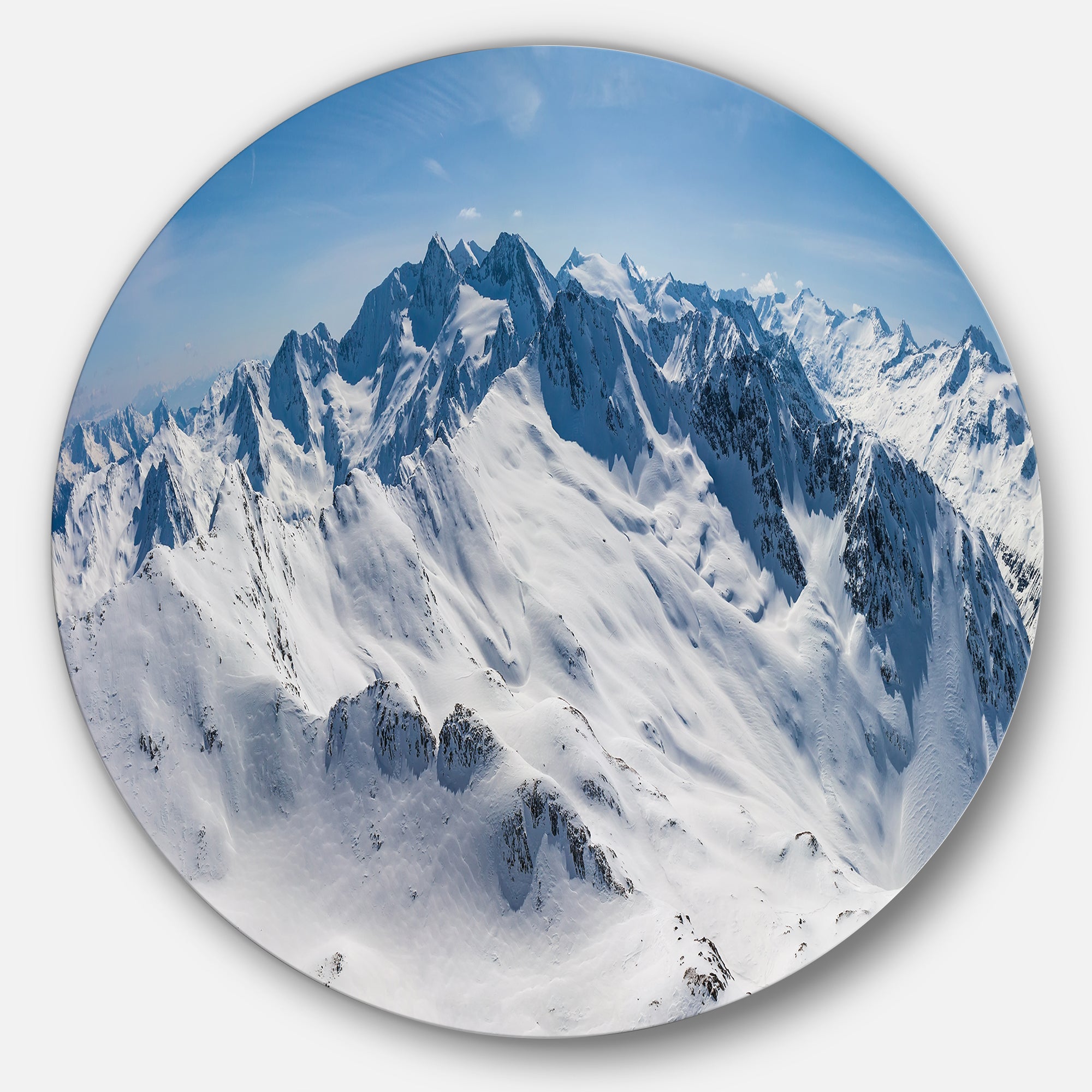 Snowy Mountains Panoramic View' Landscape Metal Circle Wall Art