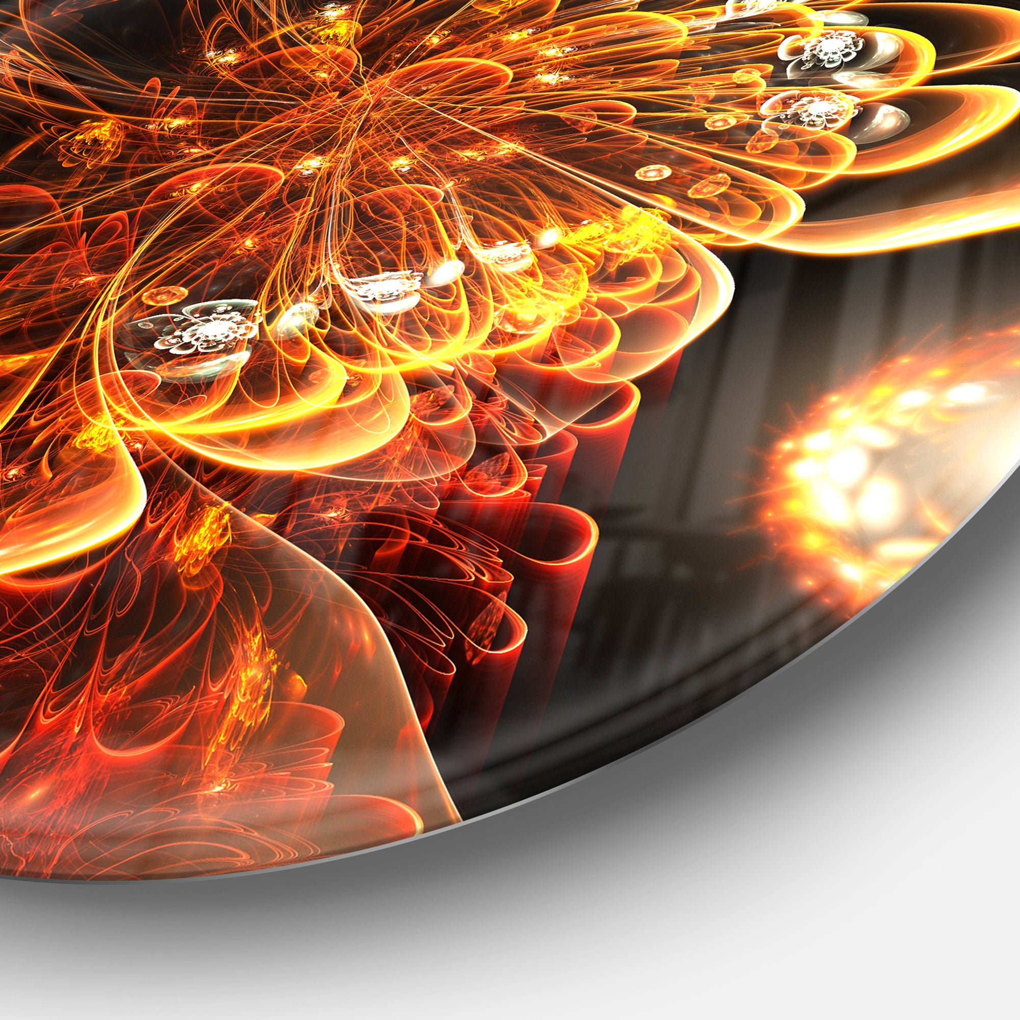 Dark Orange Fractal Flower Digital Art' Floral Metal Circle Wall Art