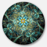 Glittering Dark Orange Fractal Flower' Floral Metal Circle Wall Art