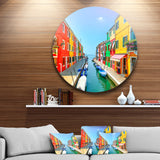 Colorful Burano Island Canal Venice' Extra Large Landscape Metal Circle Wall Art