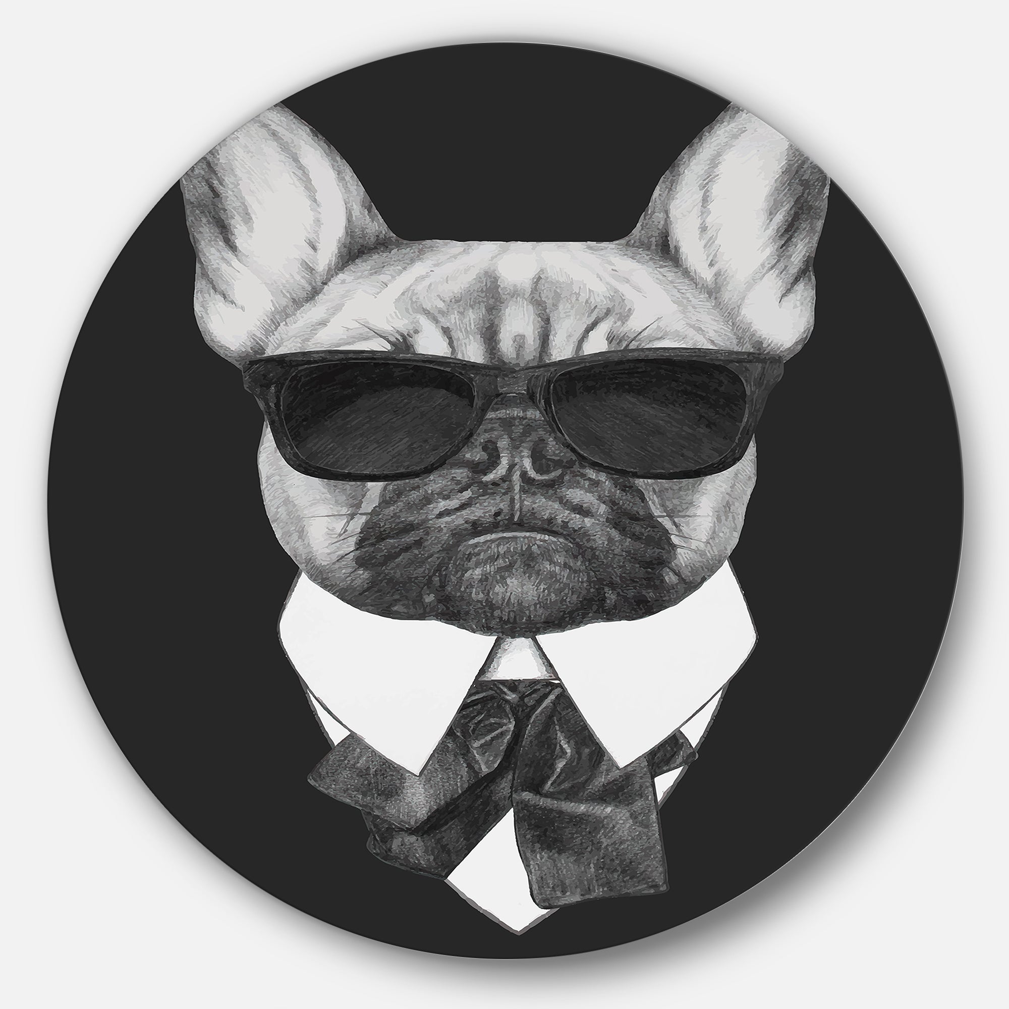 French Bulldog Fashion Portrait' Disc Animal Metal Circle Wall Art