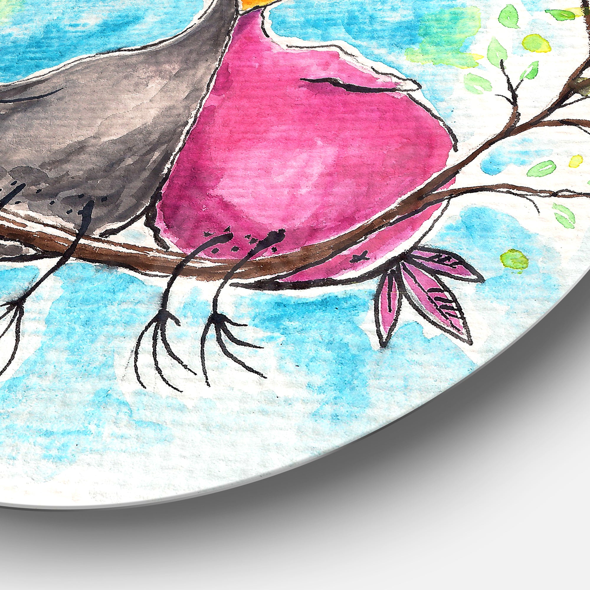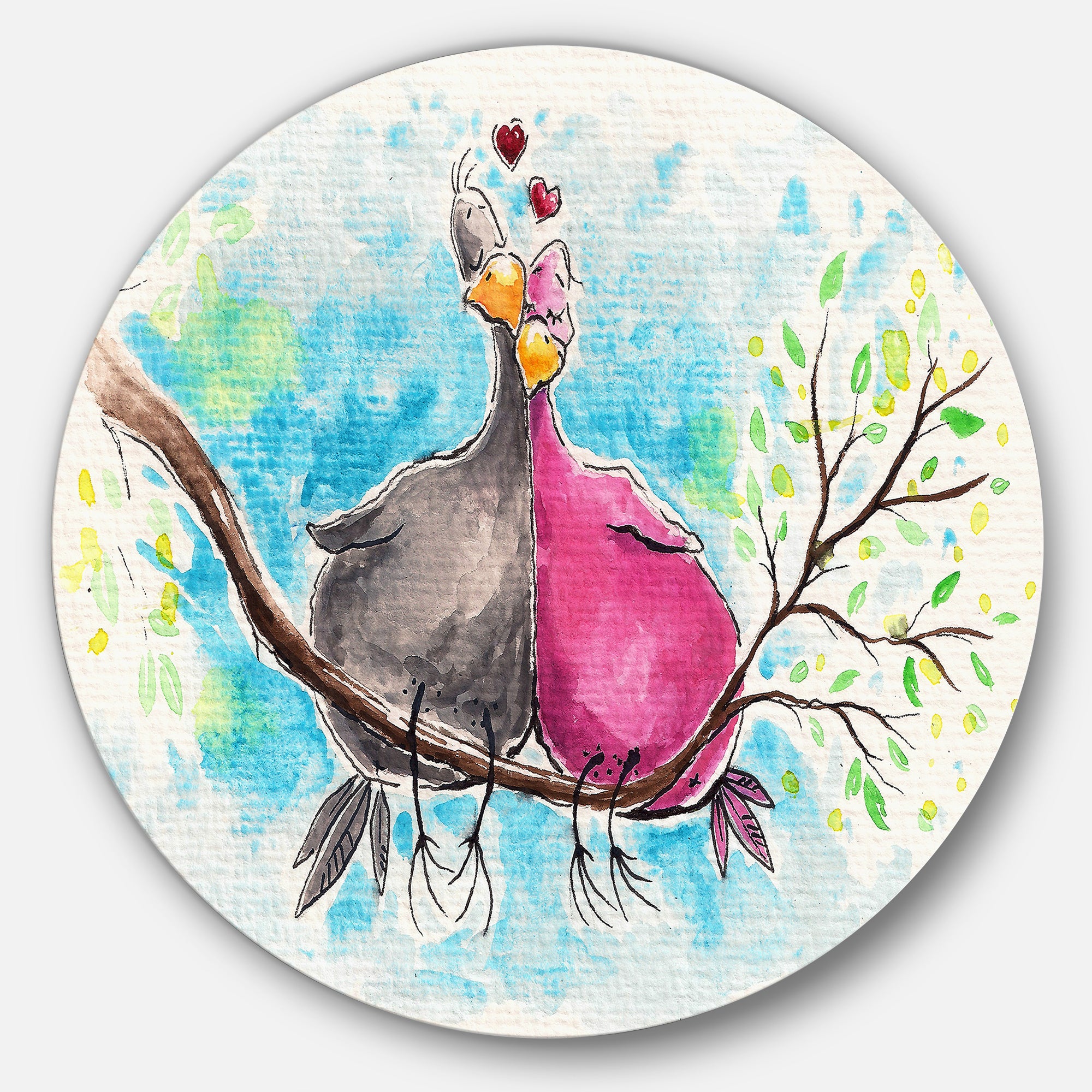 Two Birds in Love on Branch' Ultra Vibrant Abstract Metal Circle Wall Art