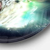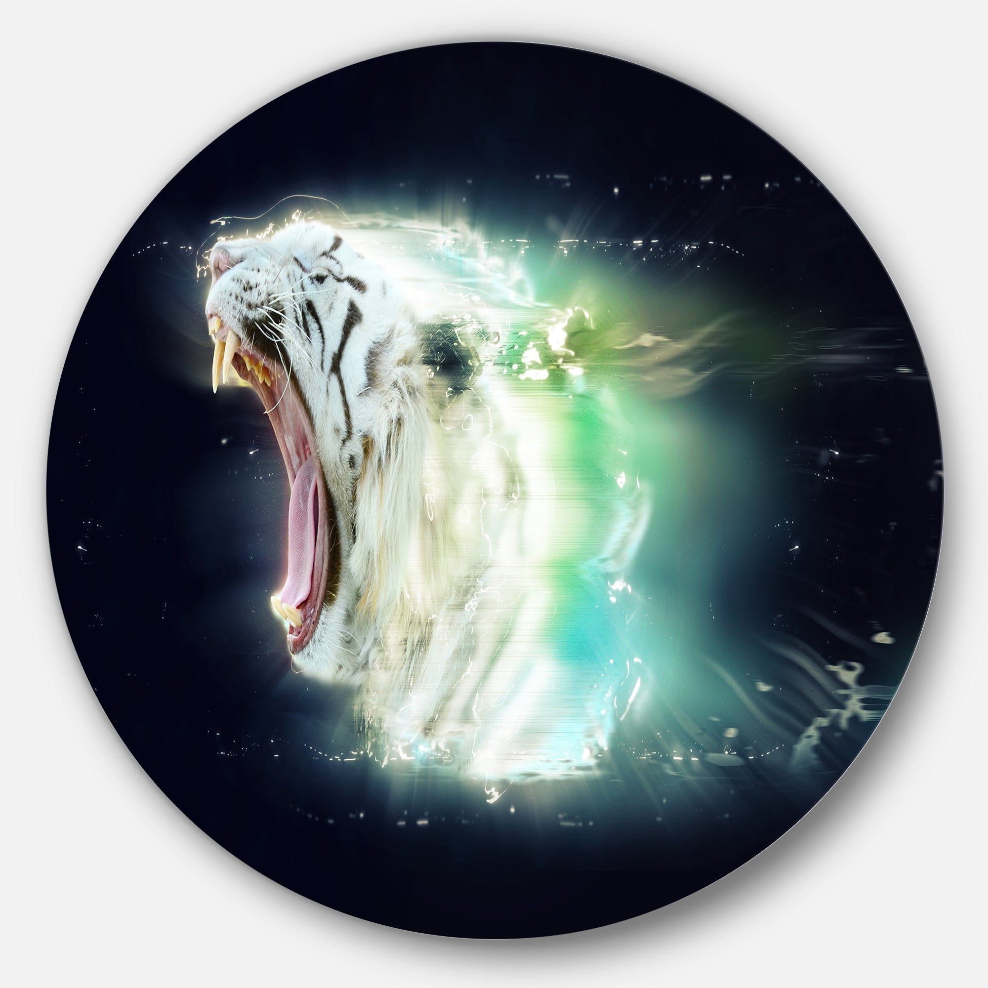 White Tiger with Open Jaws' Ultra Glossy Animal Oversized Metal Circle Wall Art