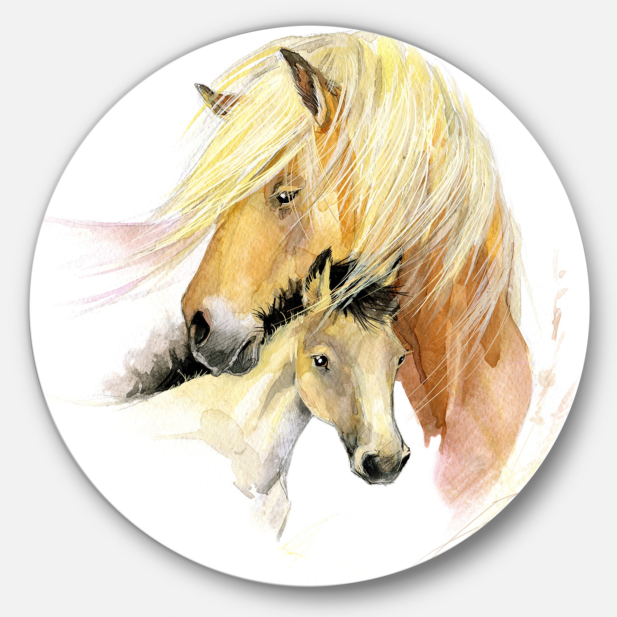 Horse Mom Baby Watercolor' Ultra Glossy Animal Oversized Metal Circle Wall Art