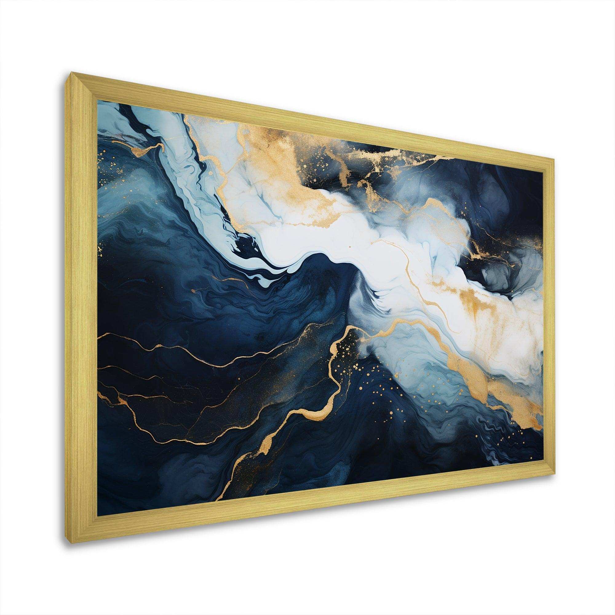 Gold and blue Abstract marble paint IV - Abstract Canvas Wall Art