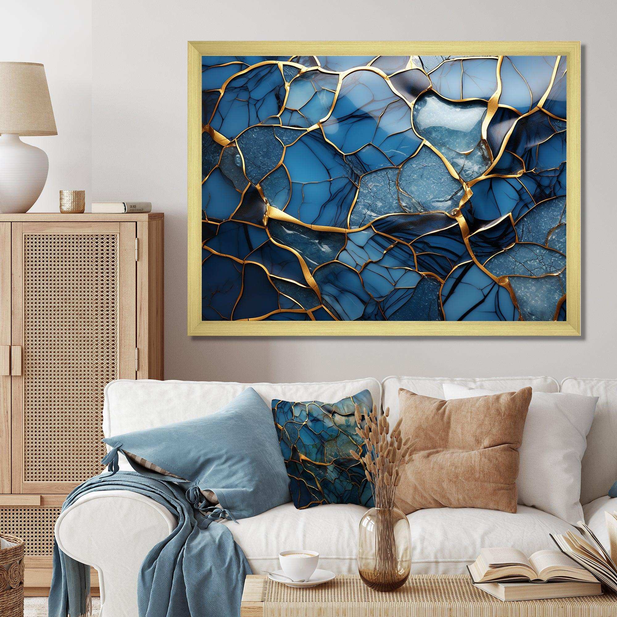 Gold and Blue Marble Mosaic Agate III - Abstract Canvas Wall Art