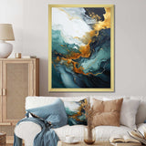 Gold and green white marble waterfall I - Abstract Canvas Wall Art