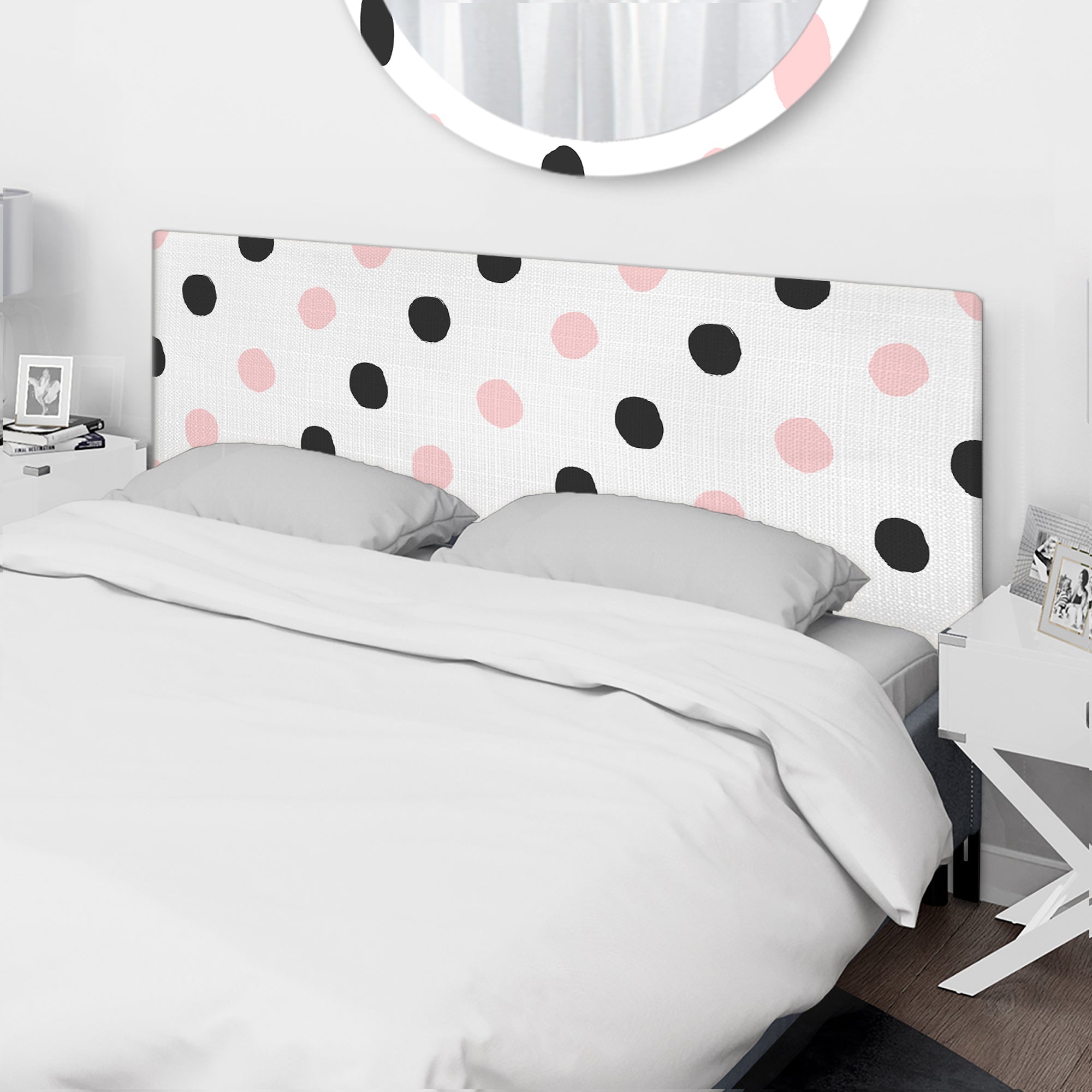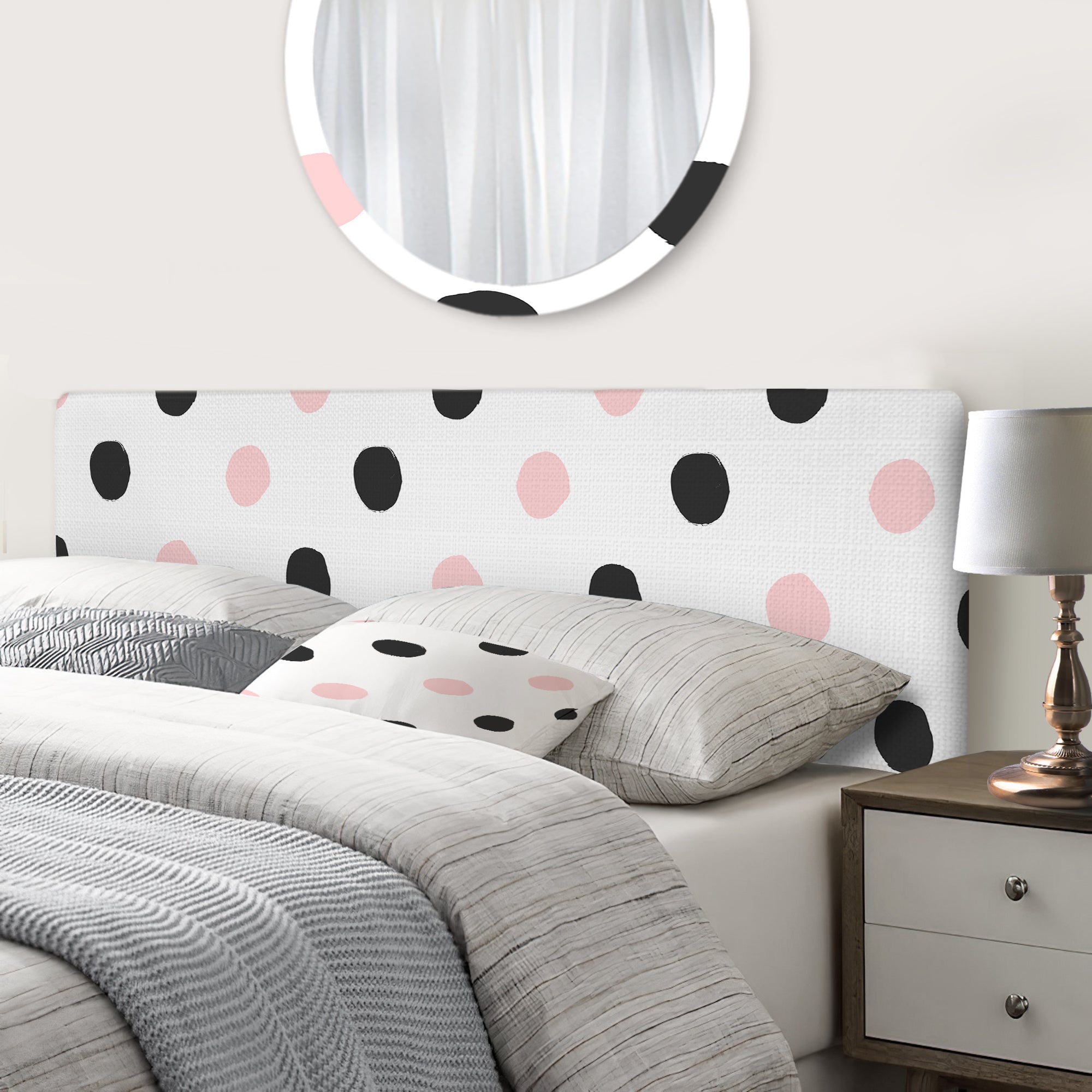 Pink And Black Polka Dots upholstered headboard